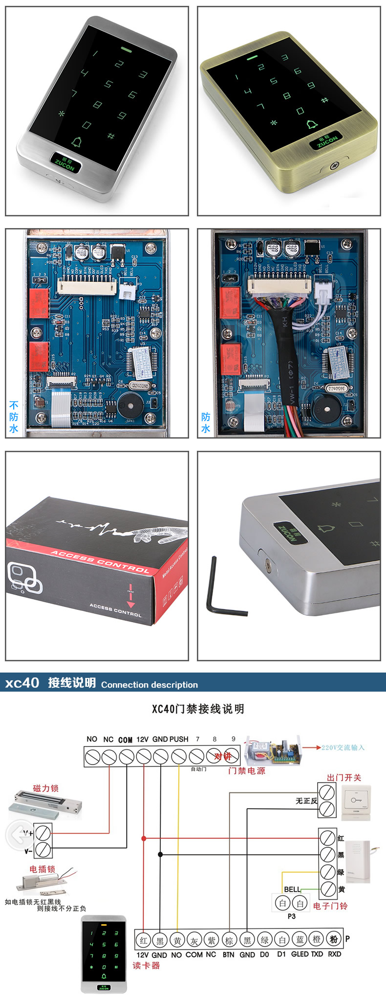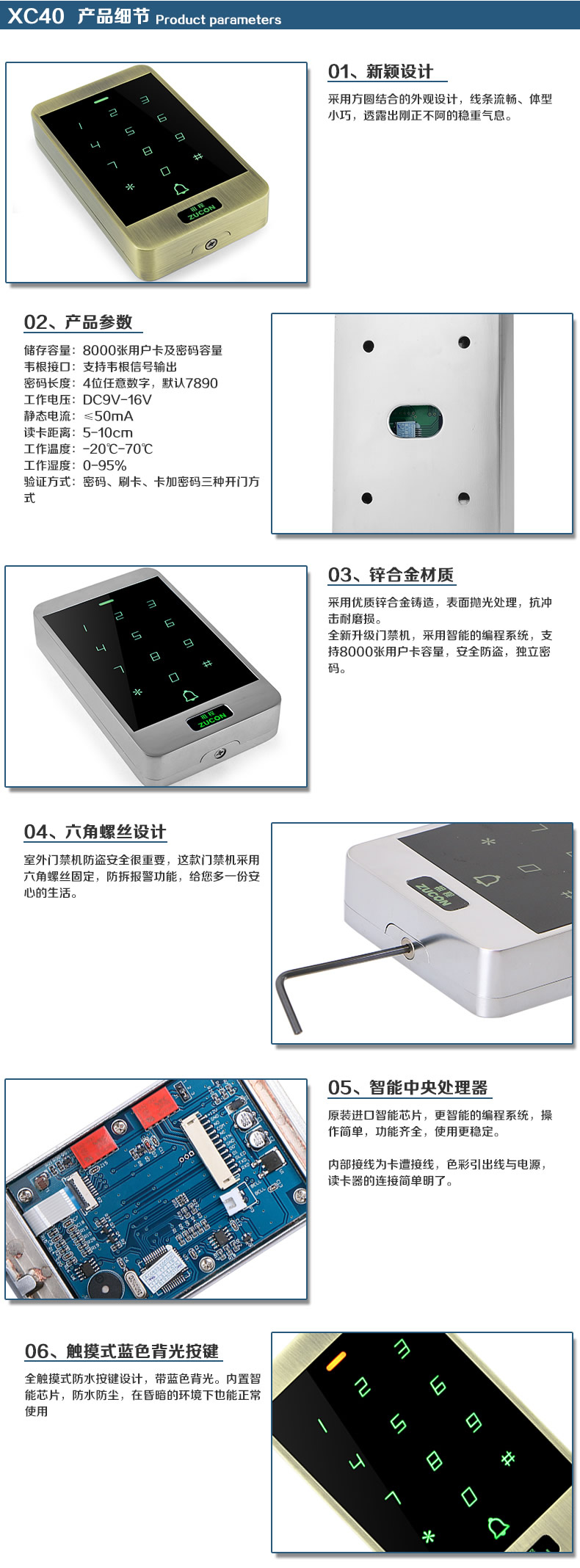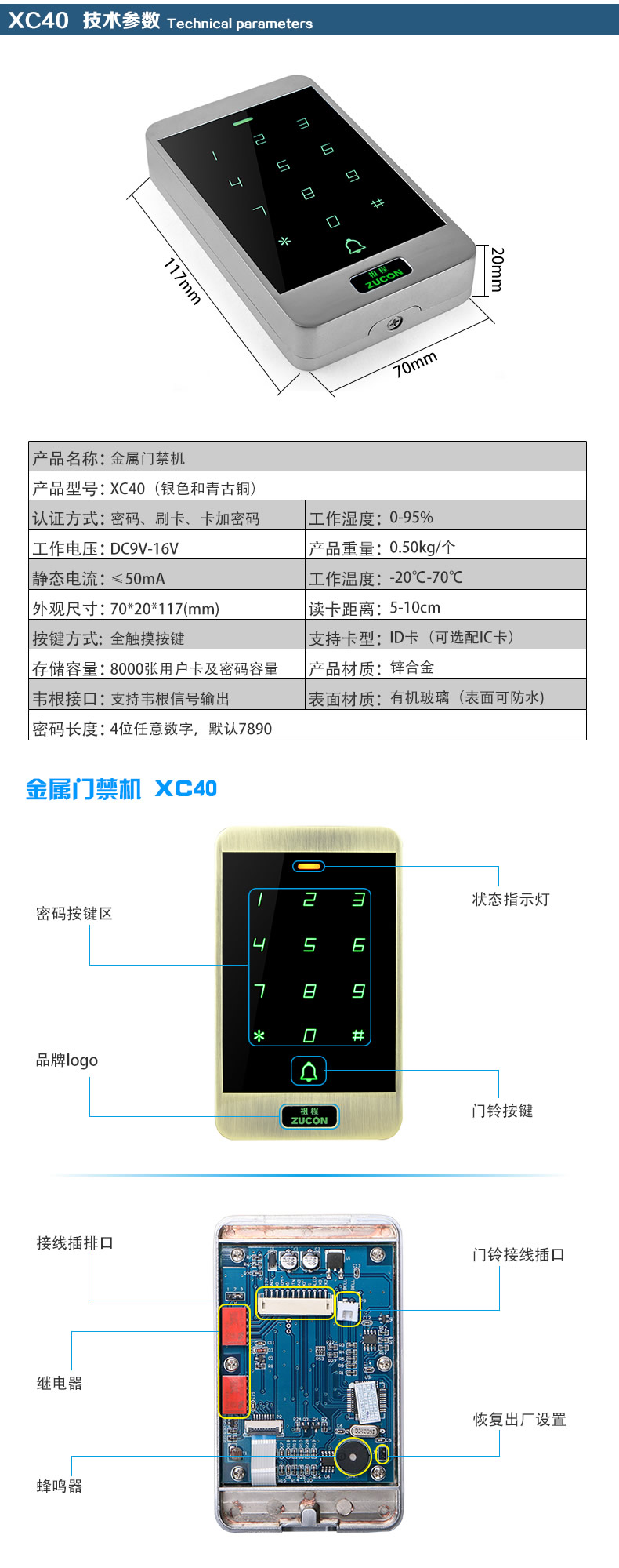ZUCON XC40升级全触摸金属门禁一体机防砸室外防水防雨刷卡器