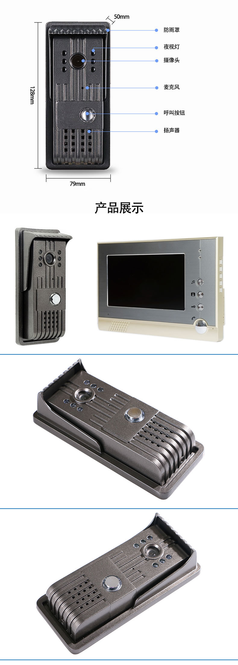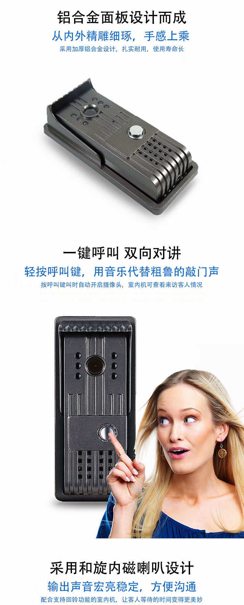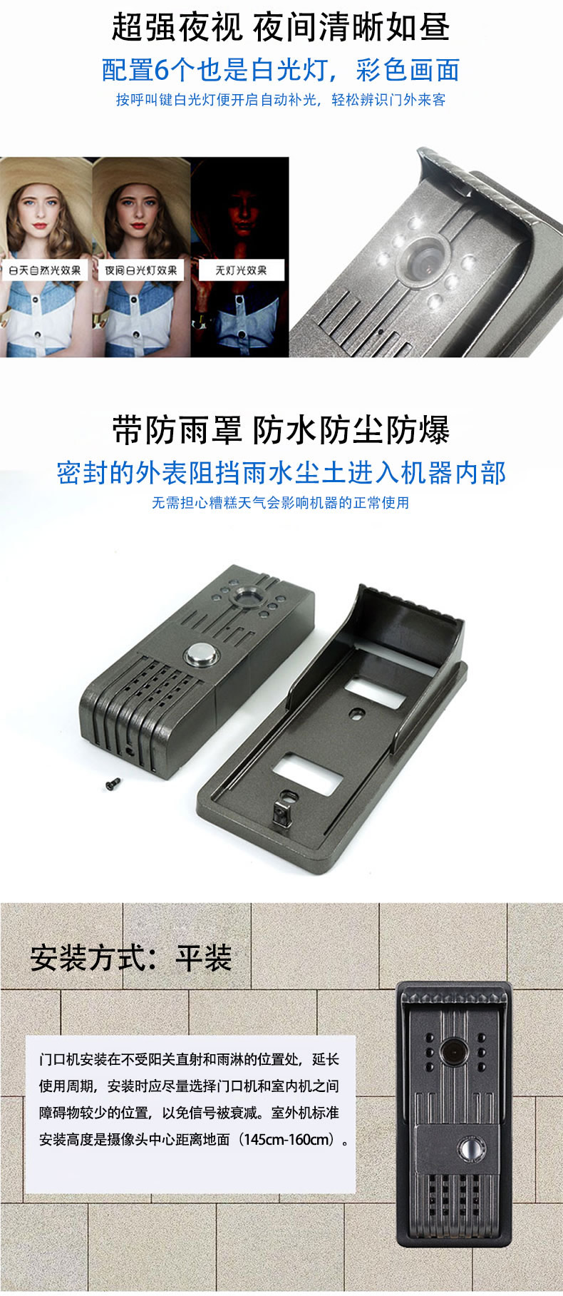 别墅有线可视对讲彩色高清夜视7寸可视对讲门铃防雨防砸防爆