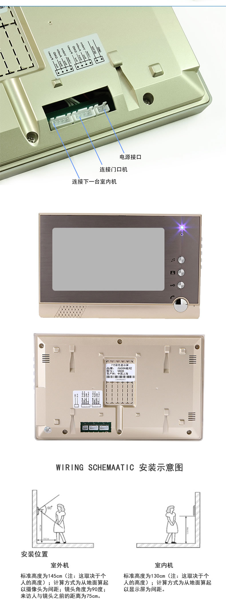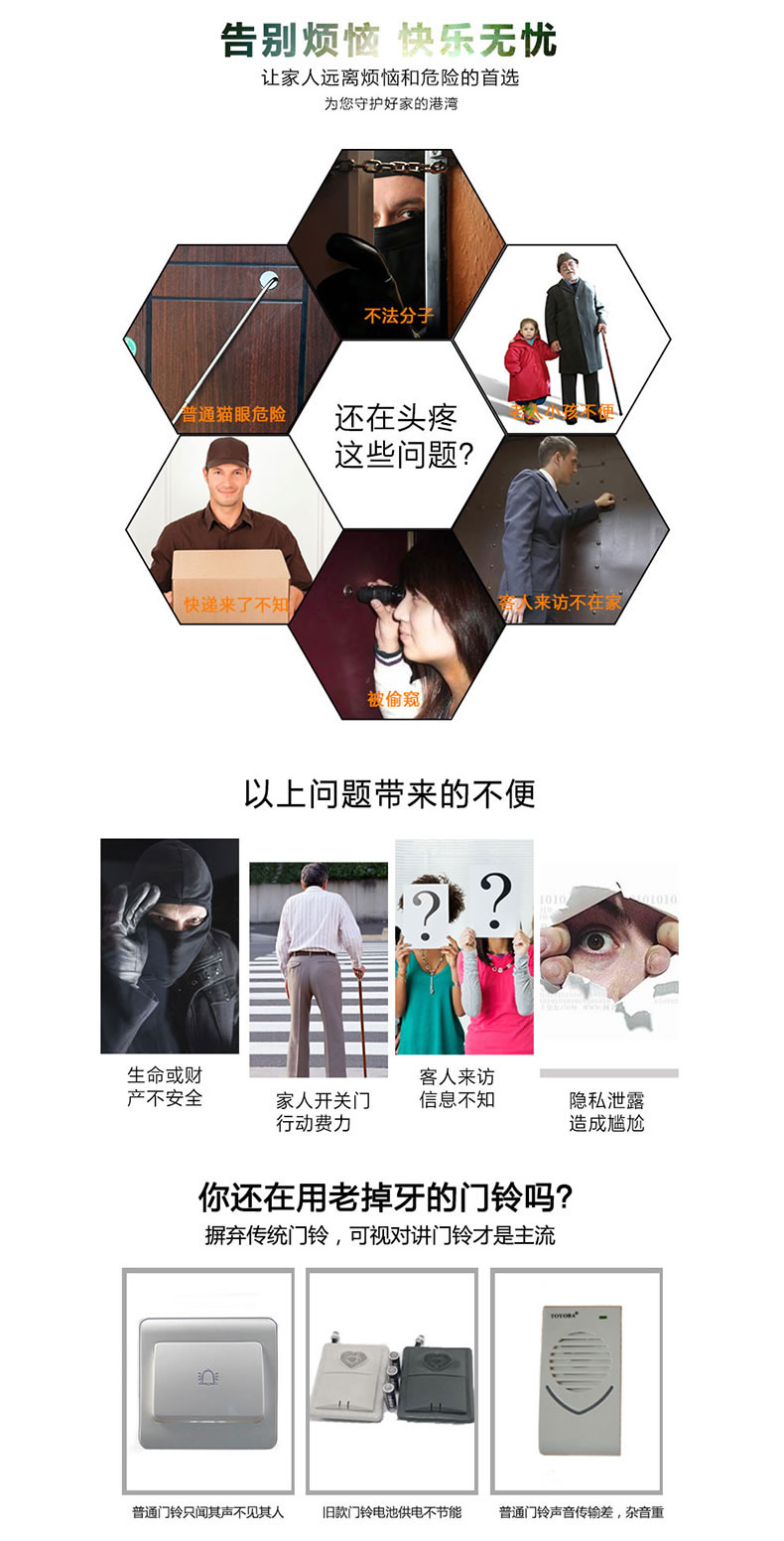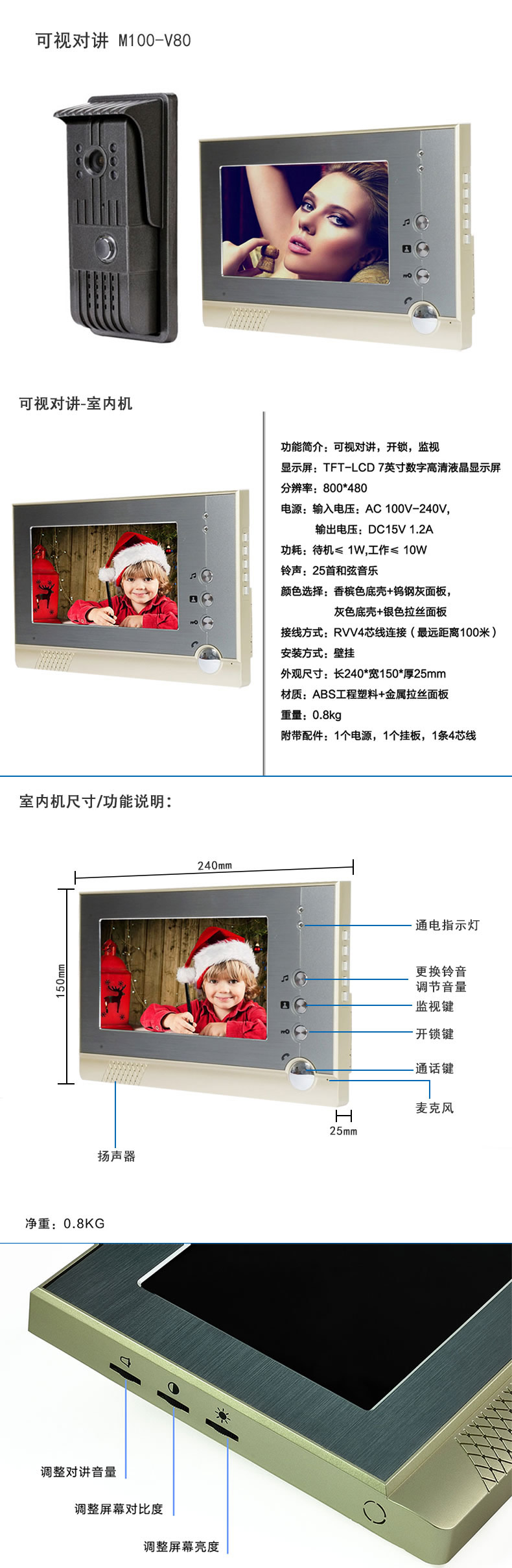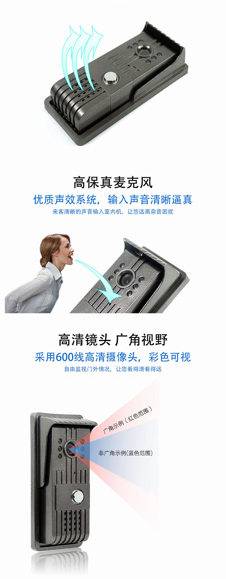 别墅有线可视对讲彩色高清夜视7寸可视对讲门铃防雨防砸防爆