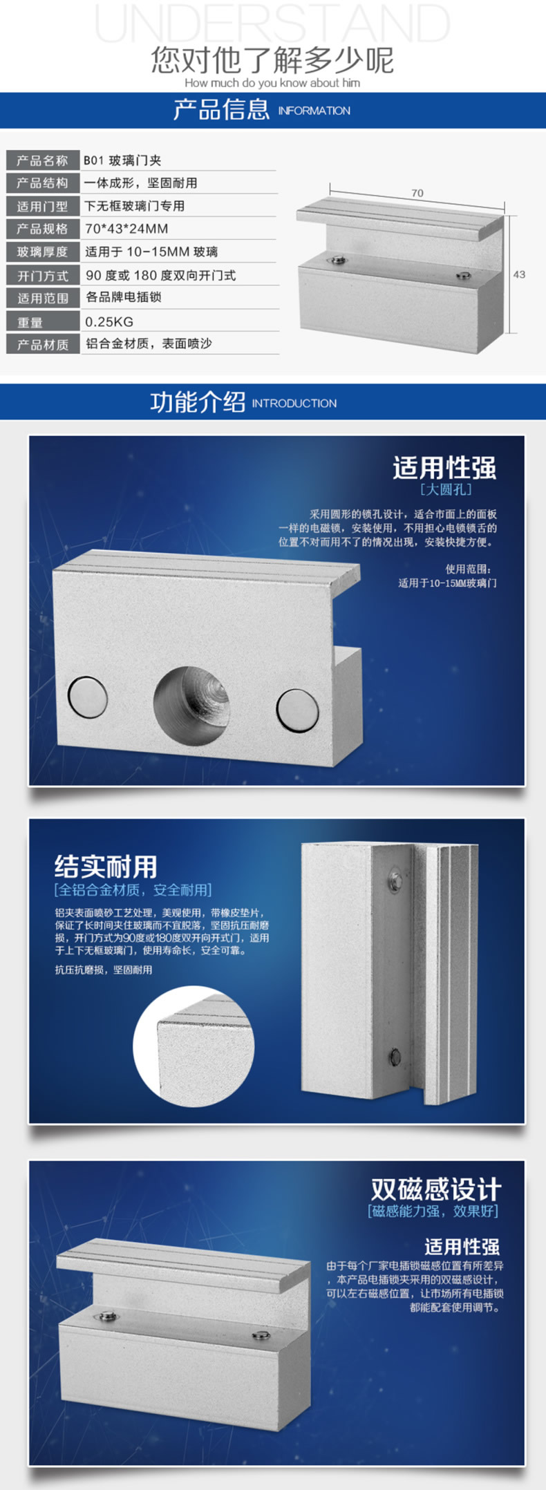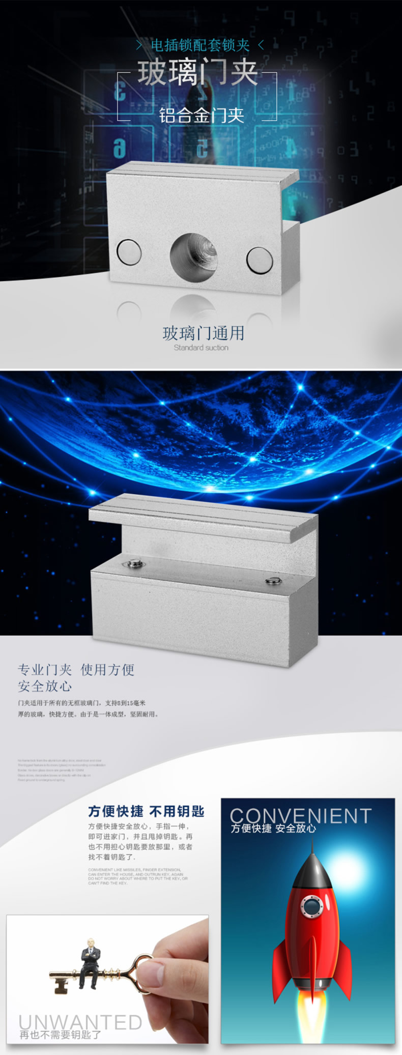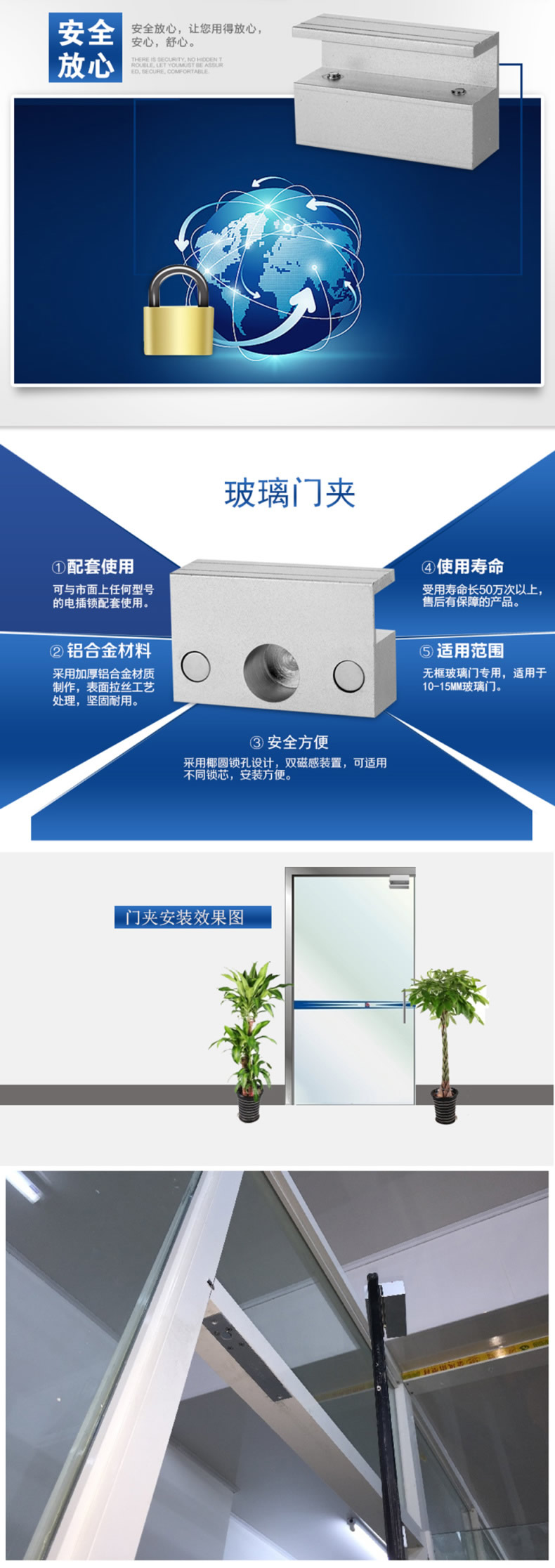 ZUCON B01小铝合金门夹 电锁配套锁夹 电插锁玻璃支架 电锁铝夹