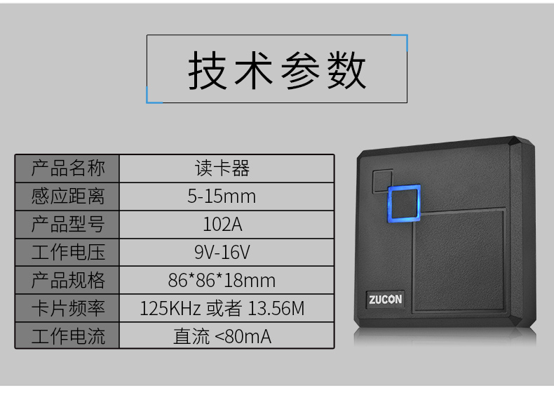 ZUCON 102A门禁考勤读卡器 ID卡IC卡门禁读头读卡器门禁刷卡器刷卡机