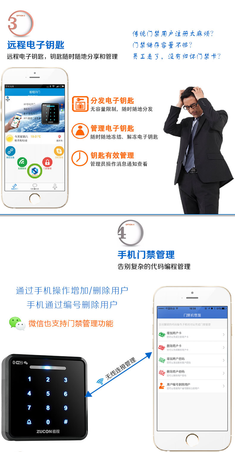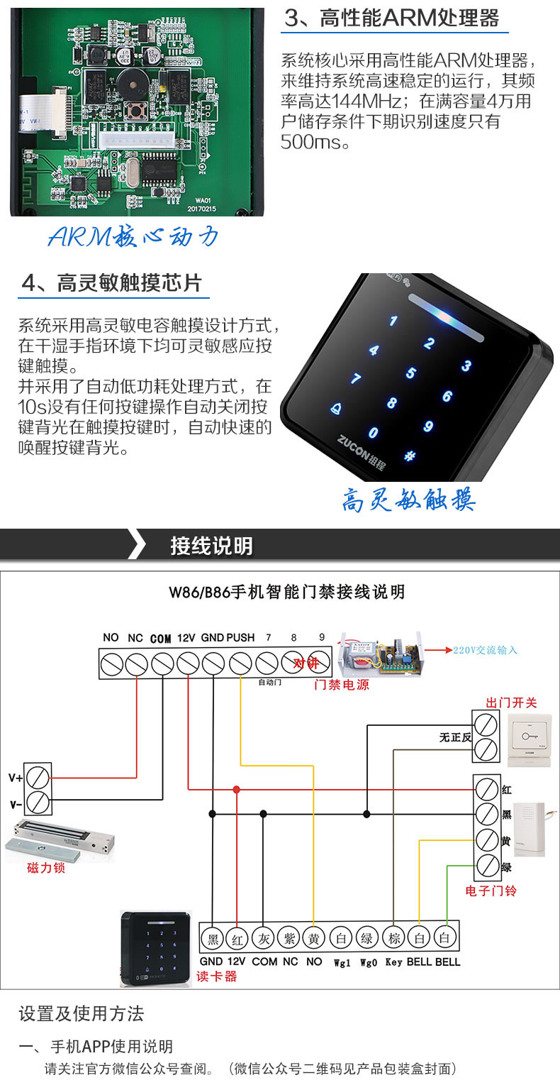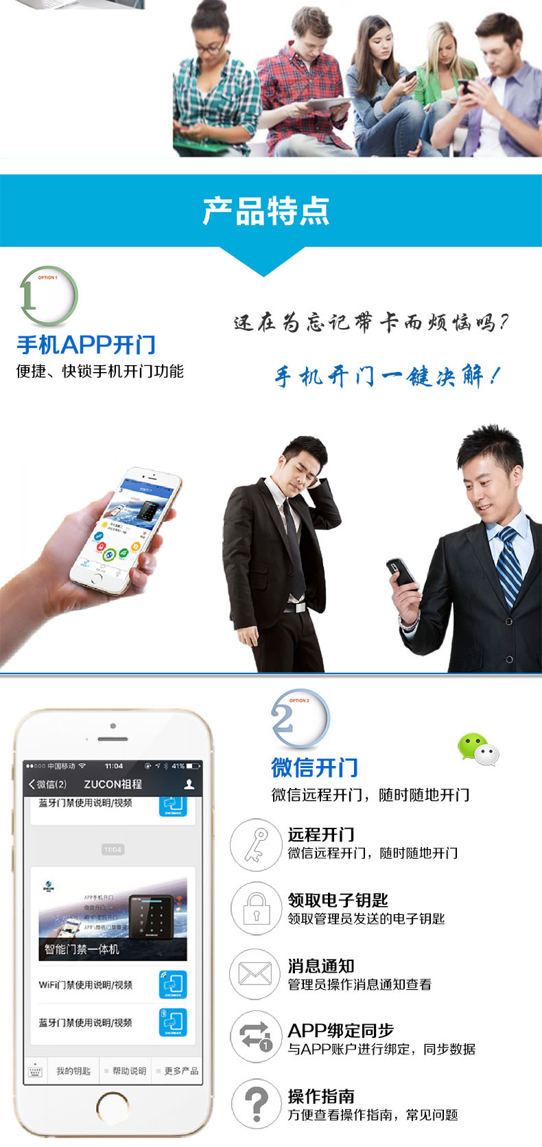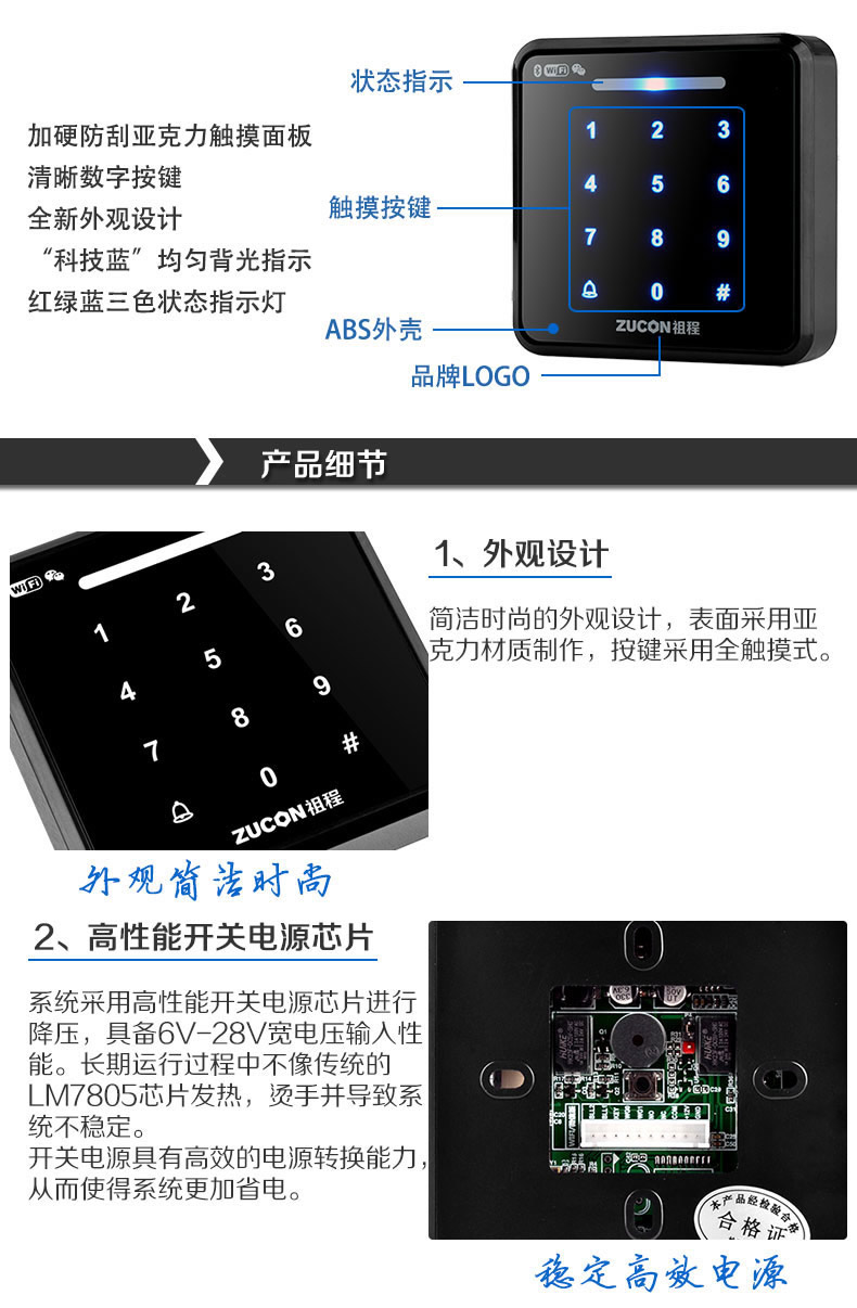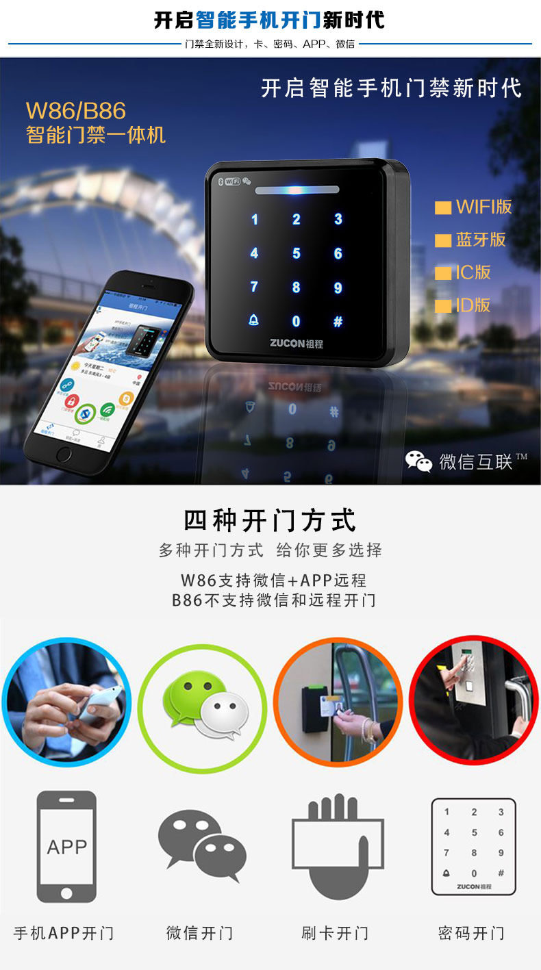 ZUCON W86/B86门禁一体机手机APP 微信 刷卡 密码开门门禁机