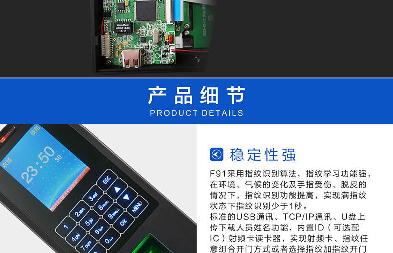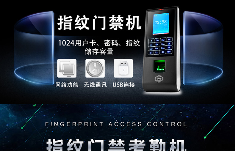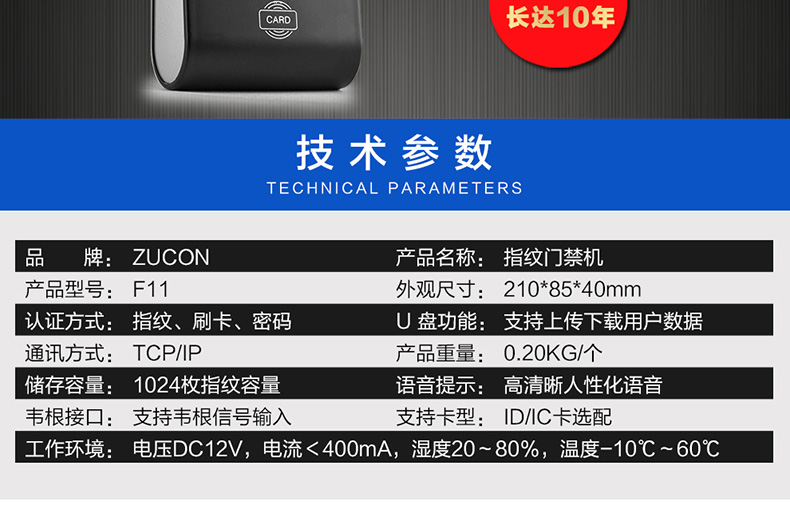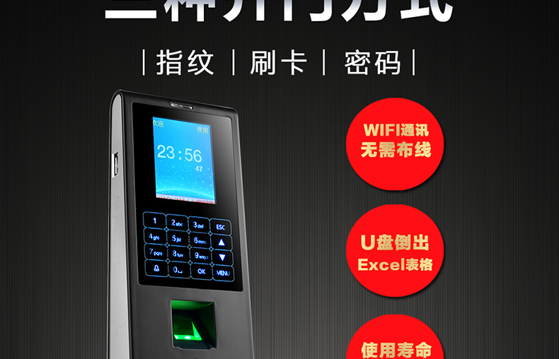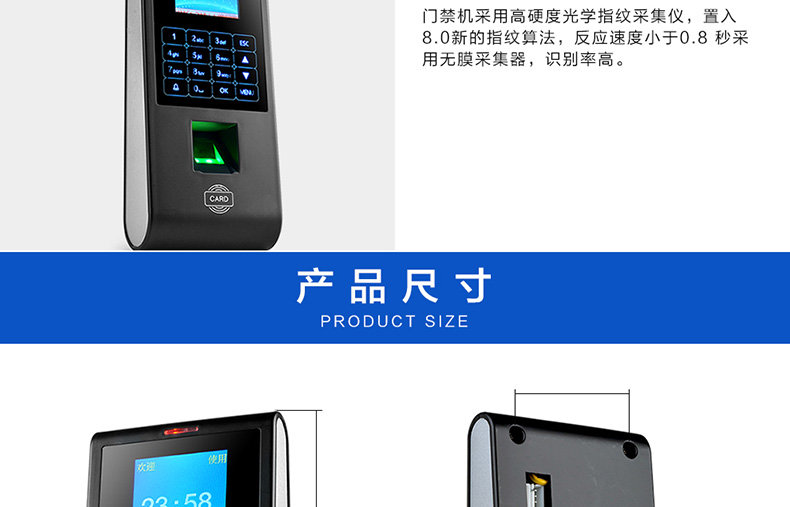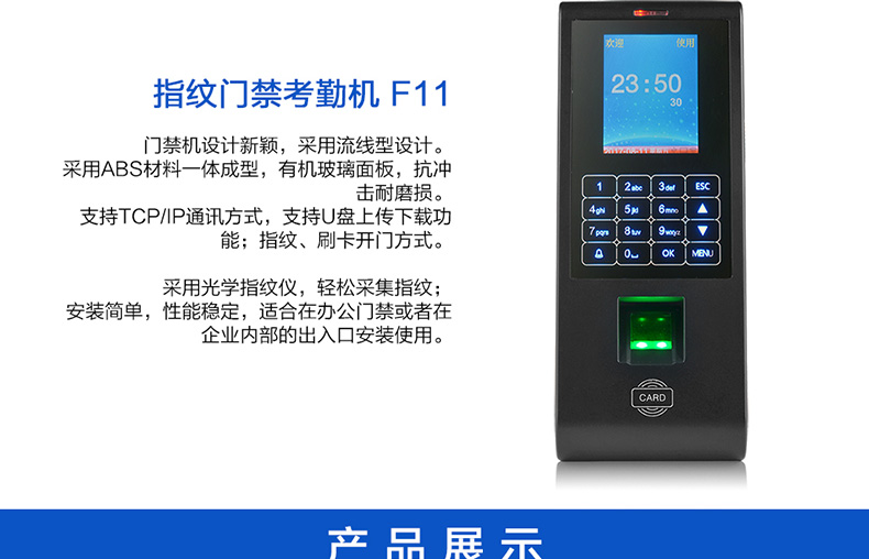 ZUCON H11祖程指纹刷卡密码门禁考勤主机网络U盘下载数据