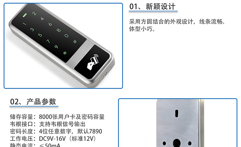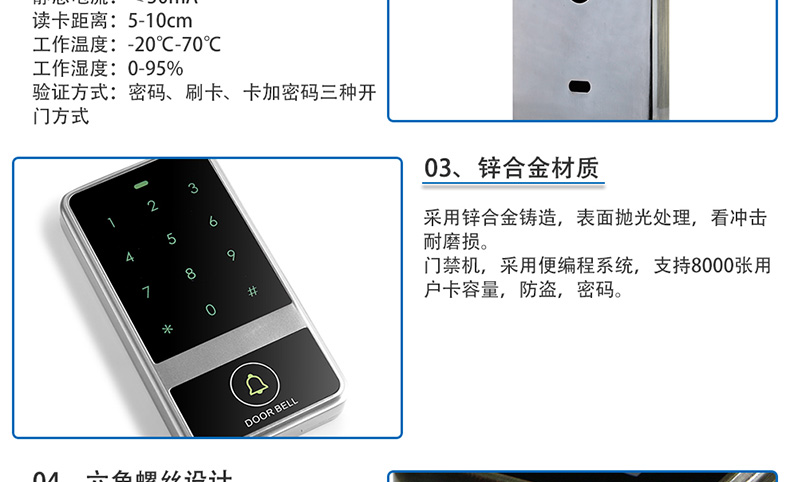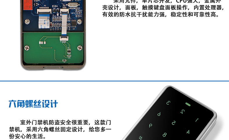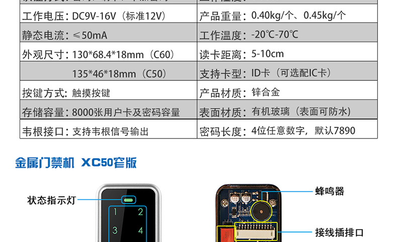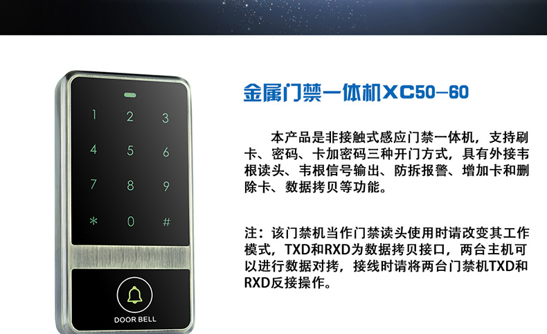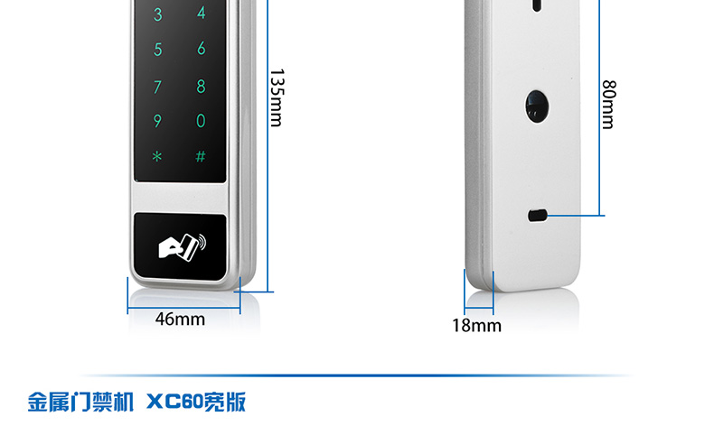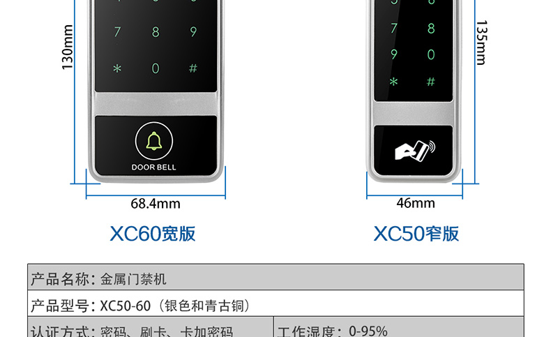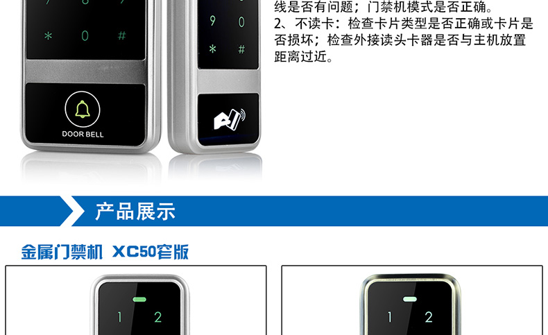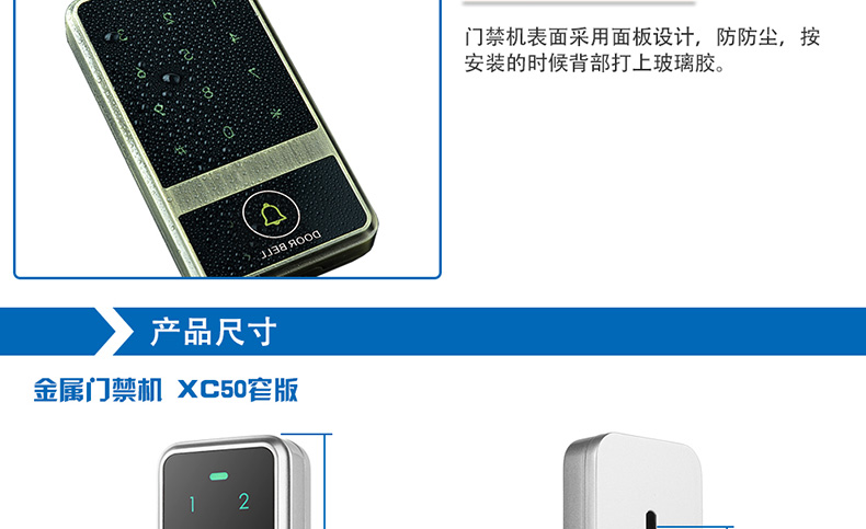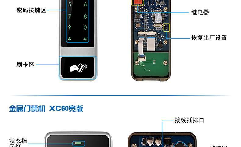 ZUCON XC50 XC60 触摸金属门禁一体机 防砸室外防水防雨刷卡器