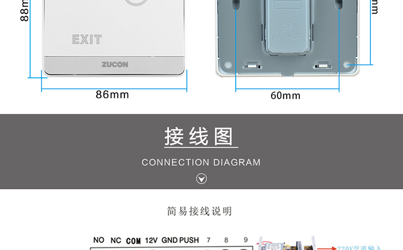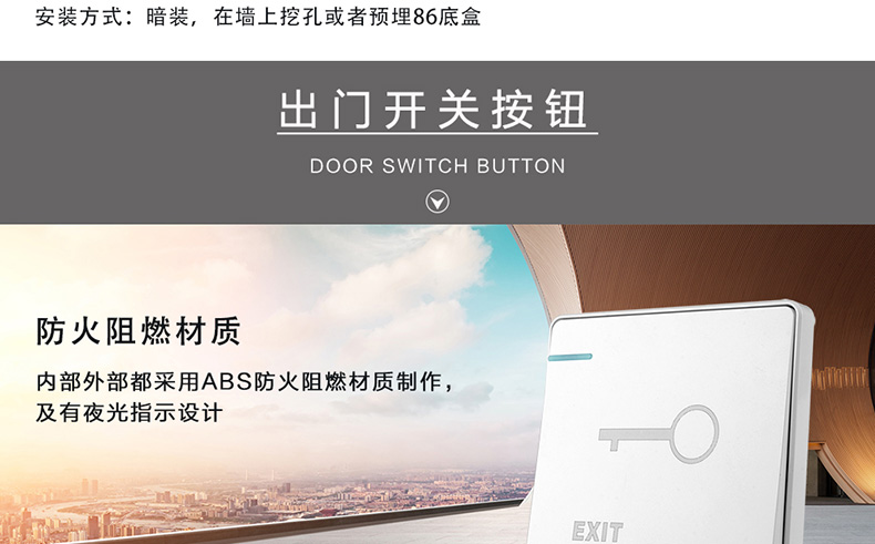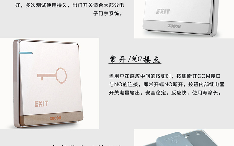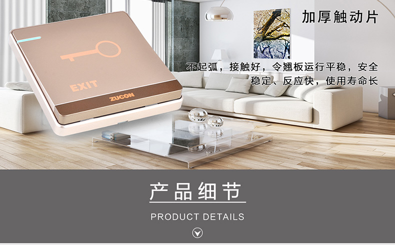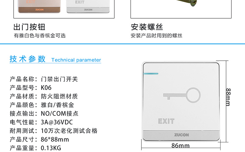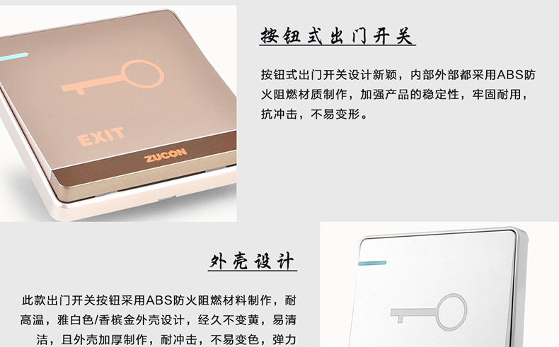 ZUCON K06电子门禁开关 门锁开关出门按钮 雅白/香槟金两色可选