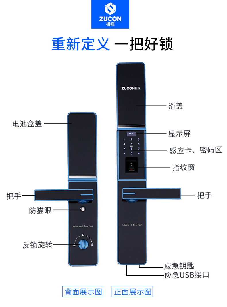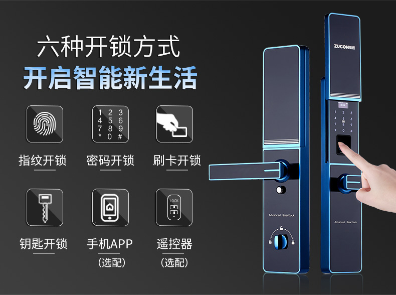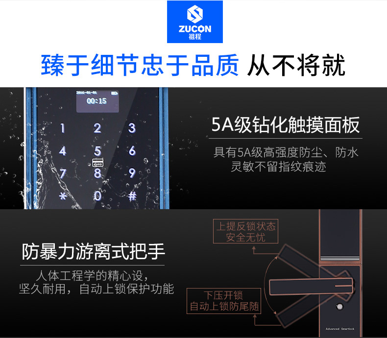 ZUCON F890祖程家用防盗门锁智能指纹锁密码锁感应锁智能刷卡电子锁
