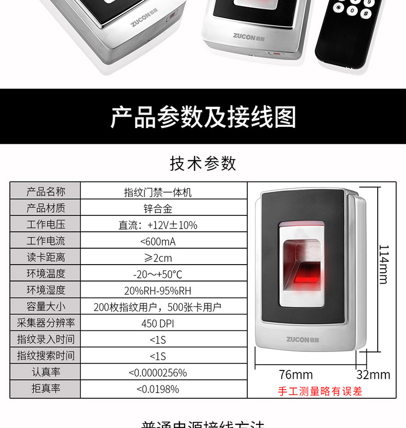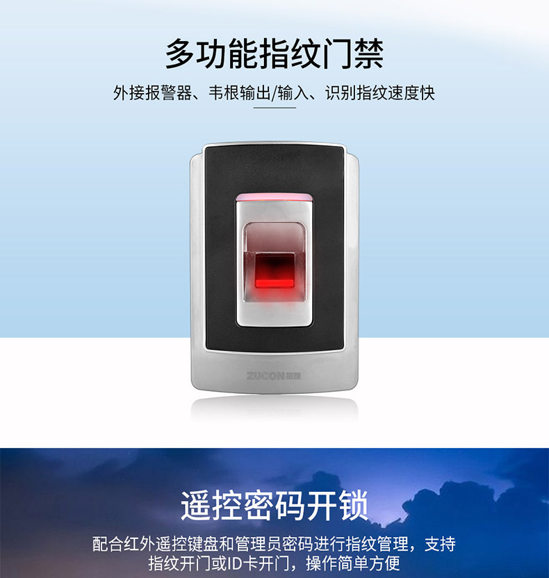ZUCON F13祖程门禁系统防水指纹一体机ID刷卡机室外防水指纹机
