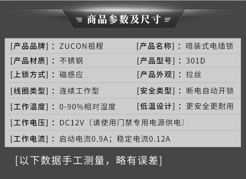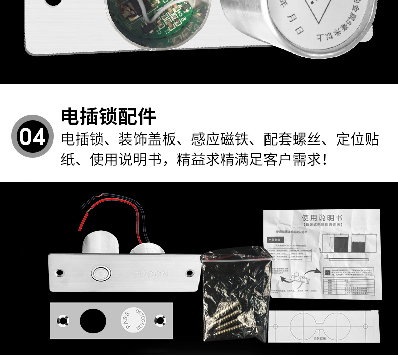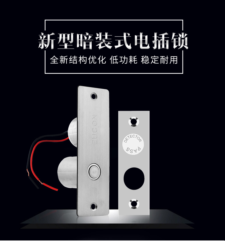 ZUCON 301D祖程暗装式电插锁微型小锁不锈钢迷你电插锁门禁锁电子锁
