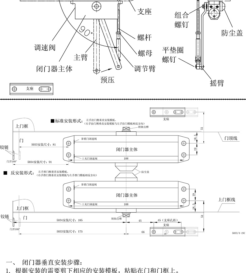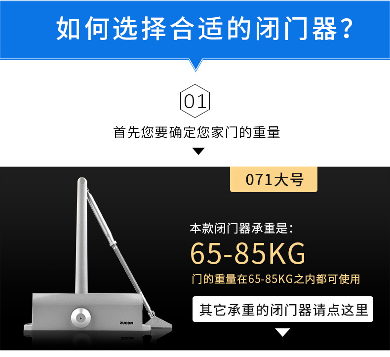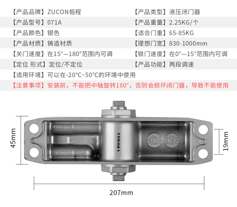 ZUCON 071A不定位/定位液压缓冲闭门器自动关门器家用门防火门65-85KG
