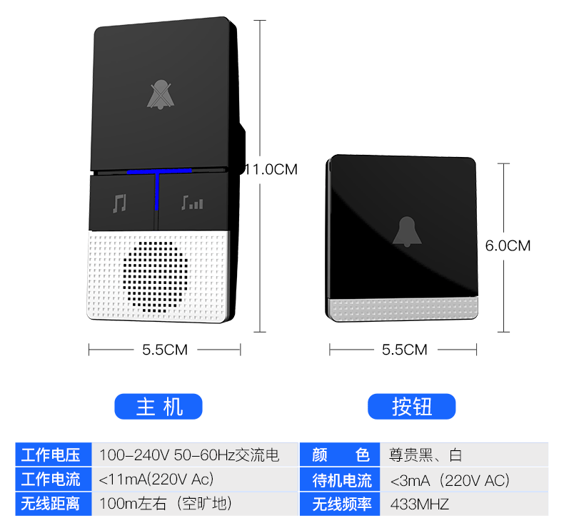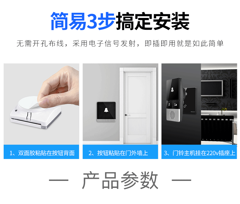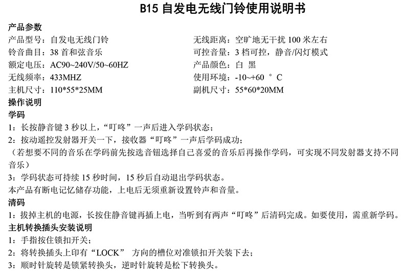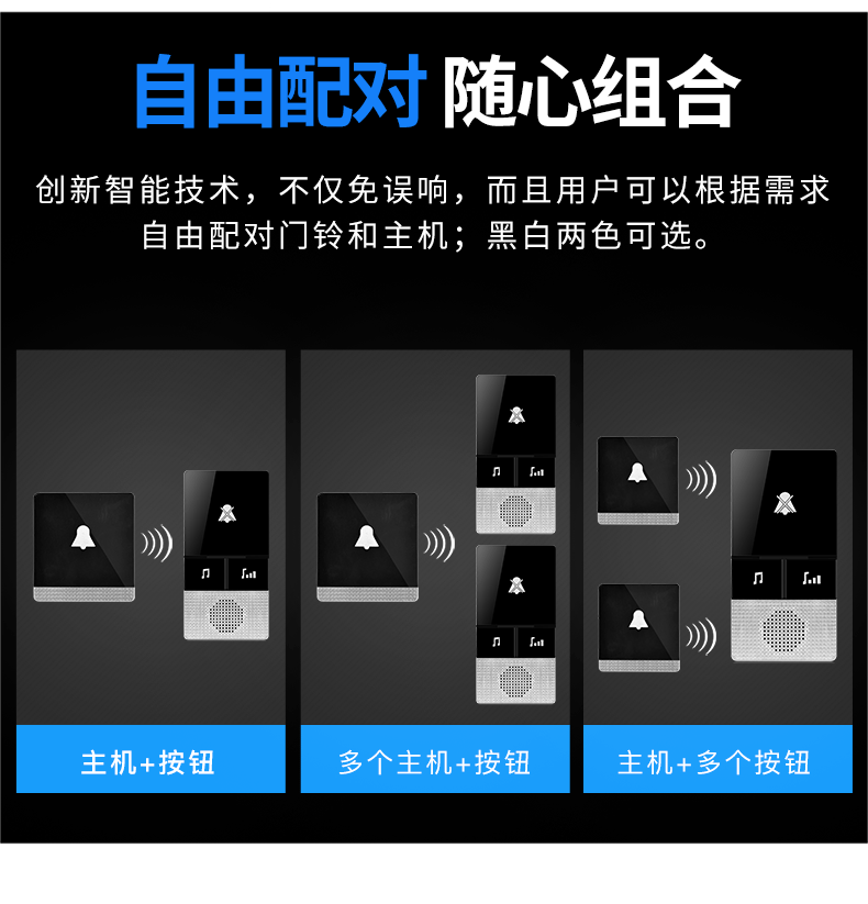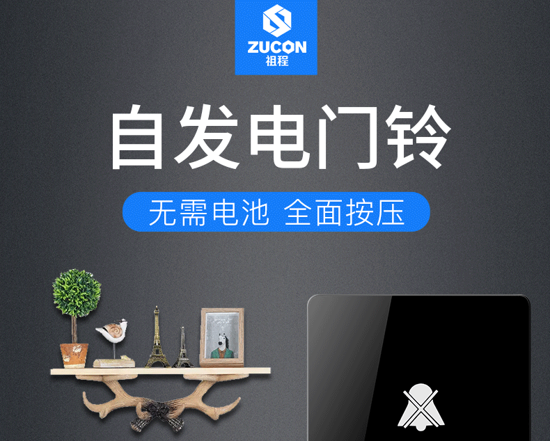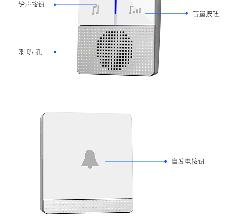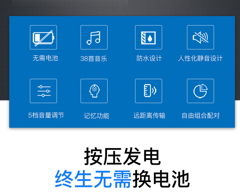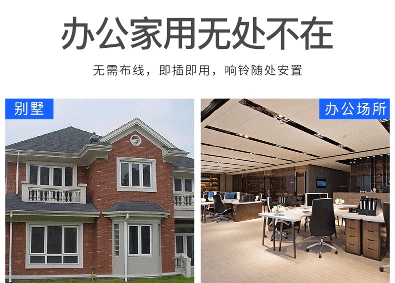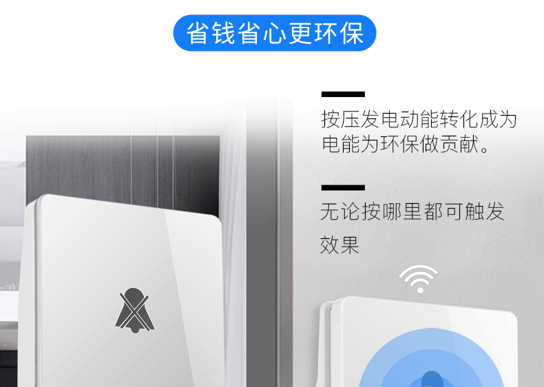 ZUCON B15无线门铃家用远距离自发电门铃不用电池一拖二拖一电子门玲