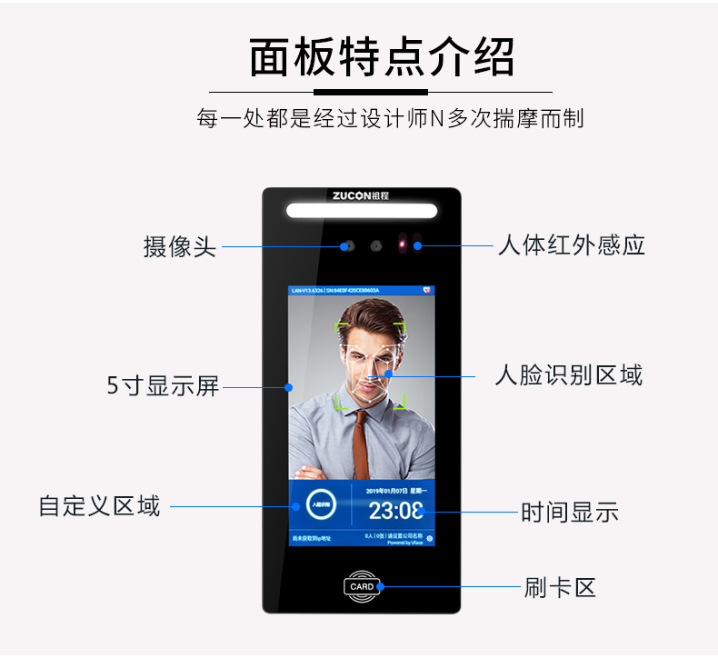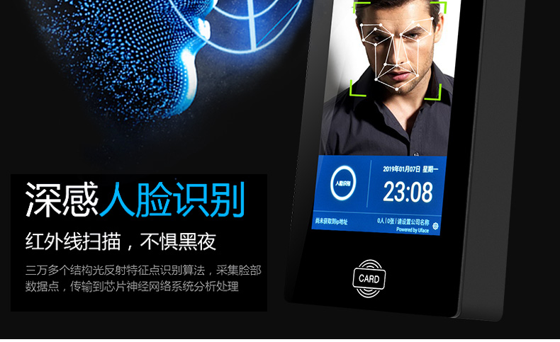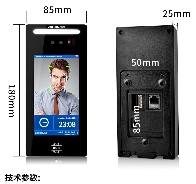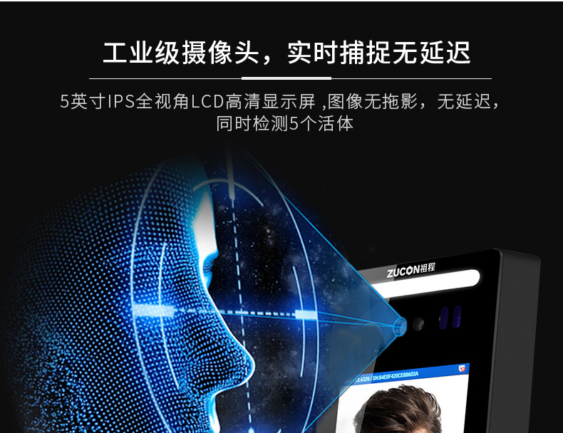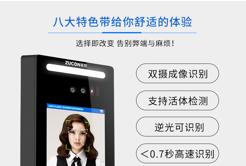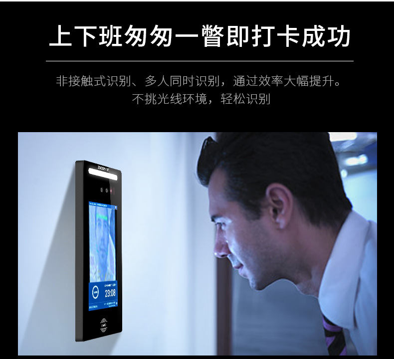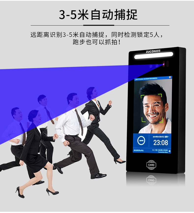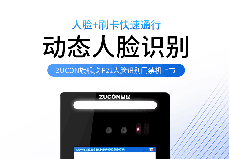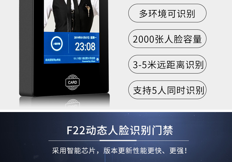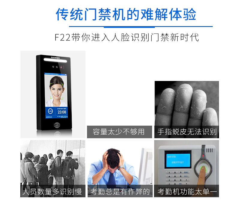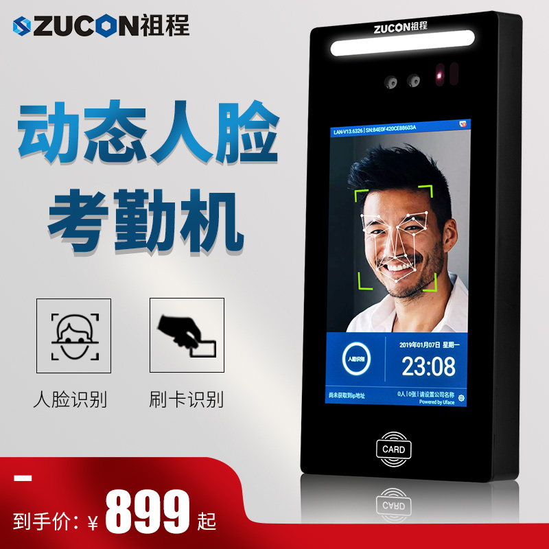ZUCON F22动态人脸识别门禁考勤一体机指纹刷卡面部识别门禁系统套装