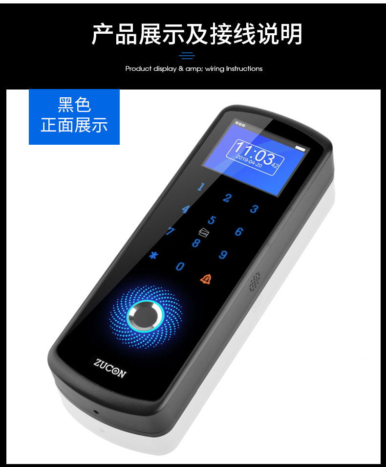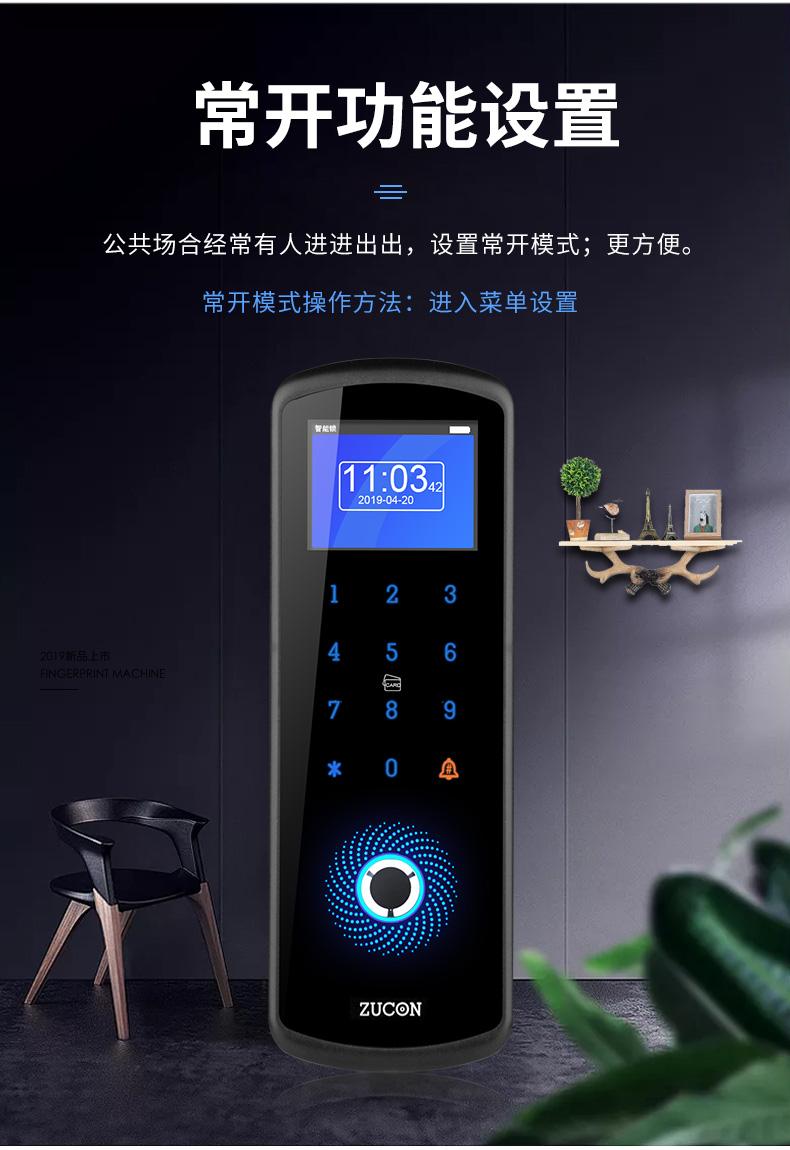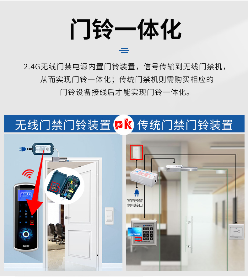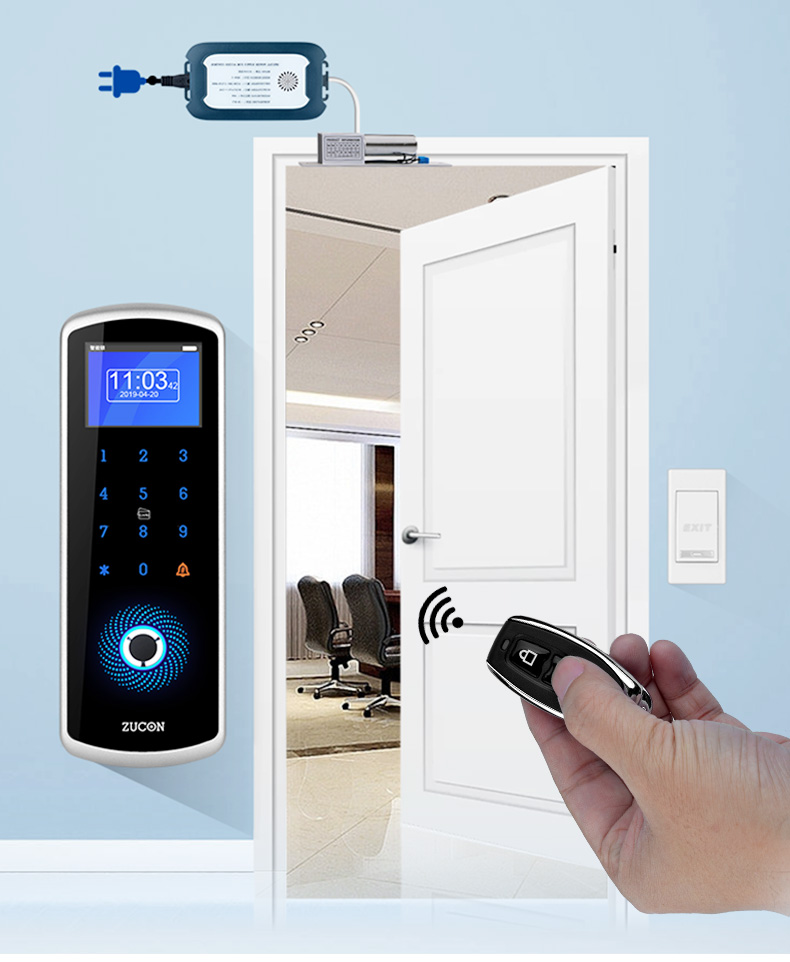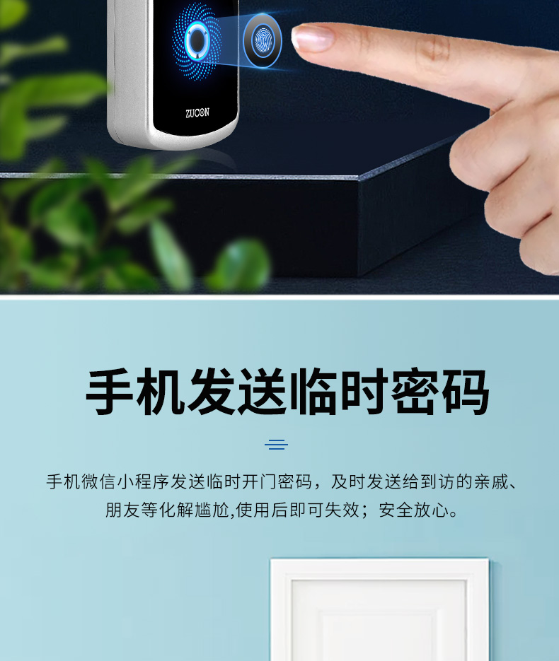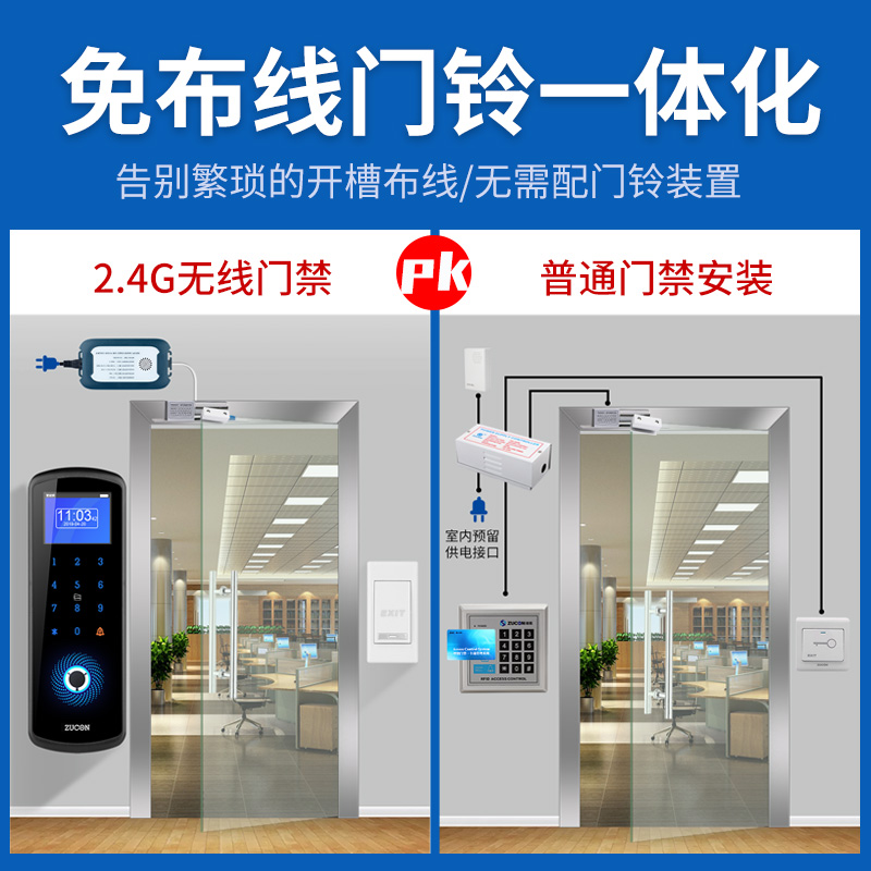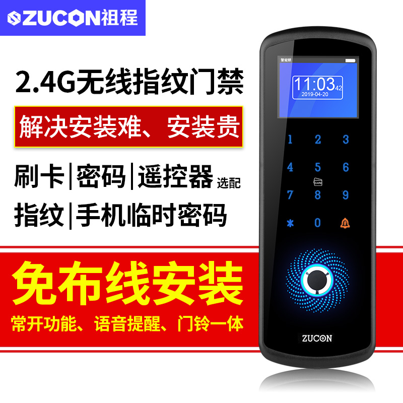 ZUCON F23 2.4G免布线指纹门禁 无线指纹刷卡密码门铃电插锁磁力锁