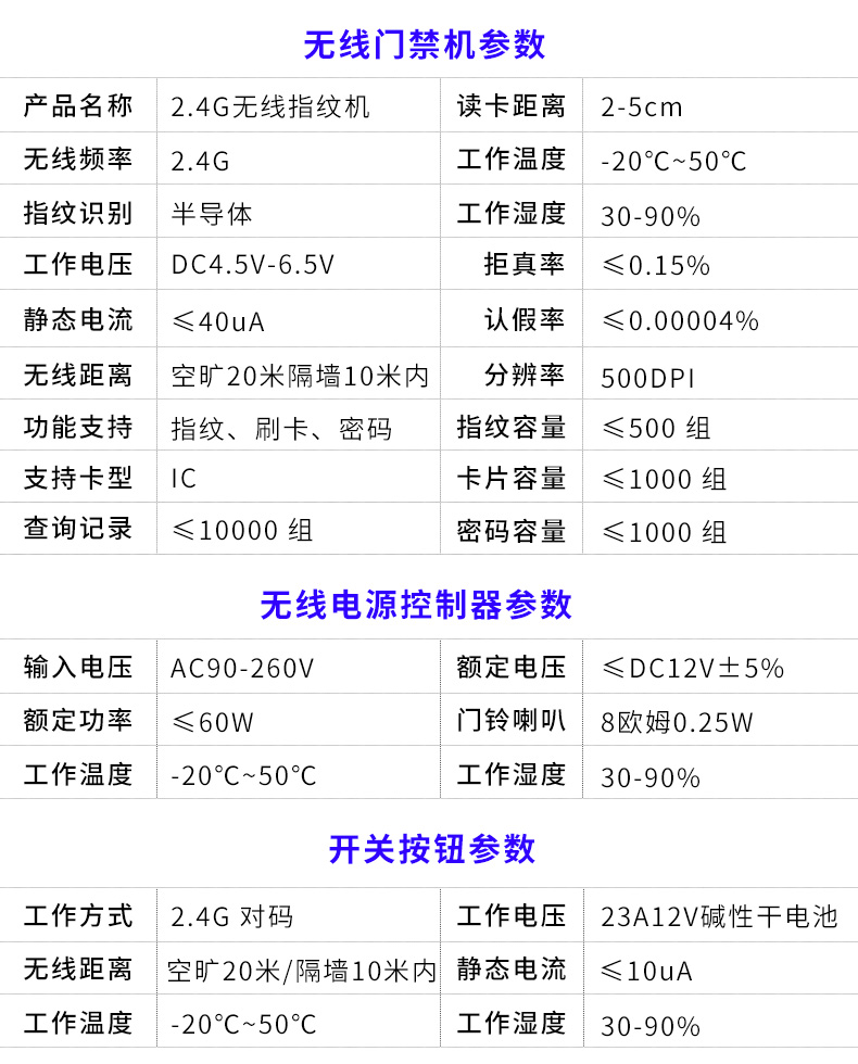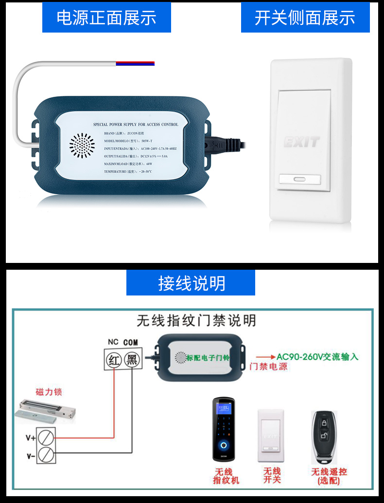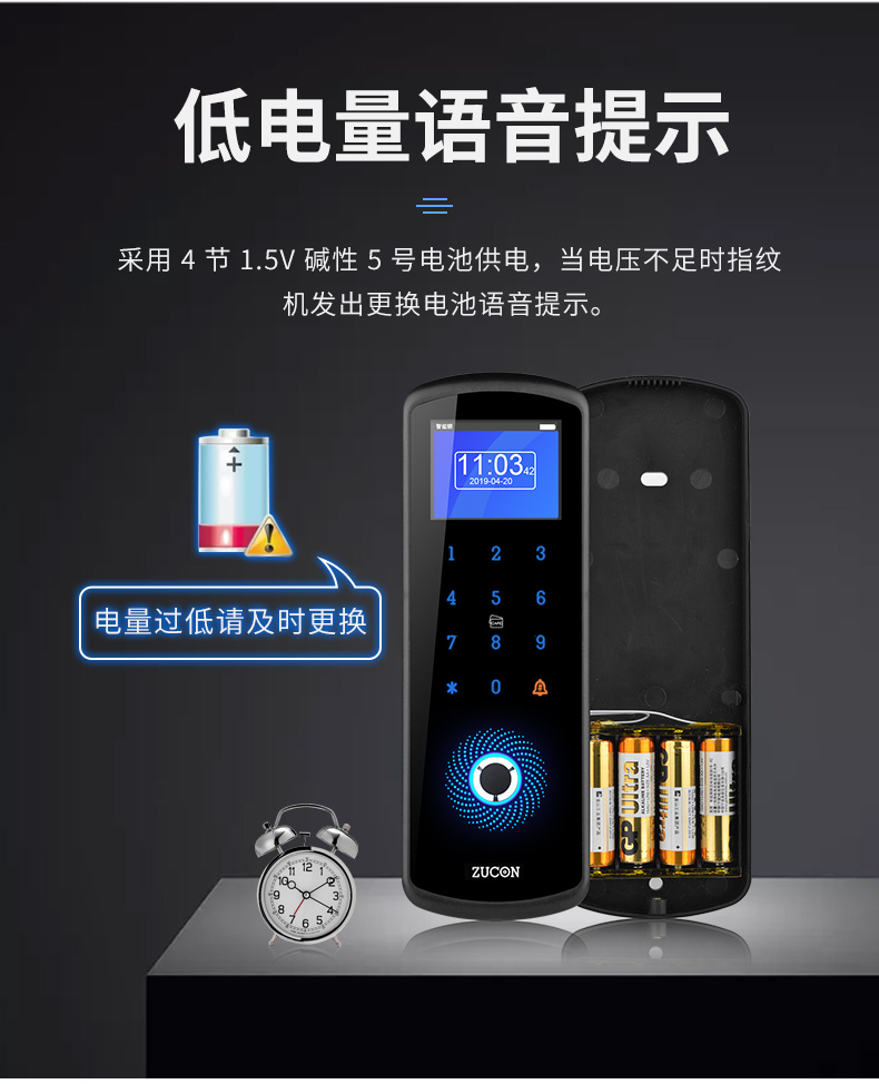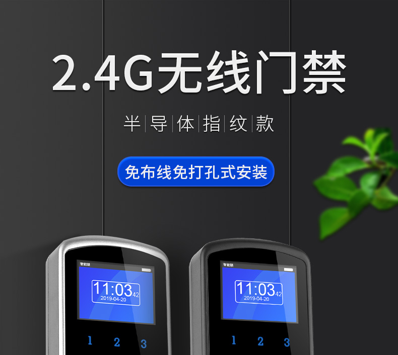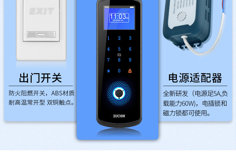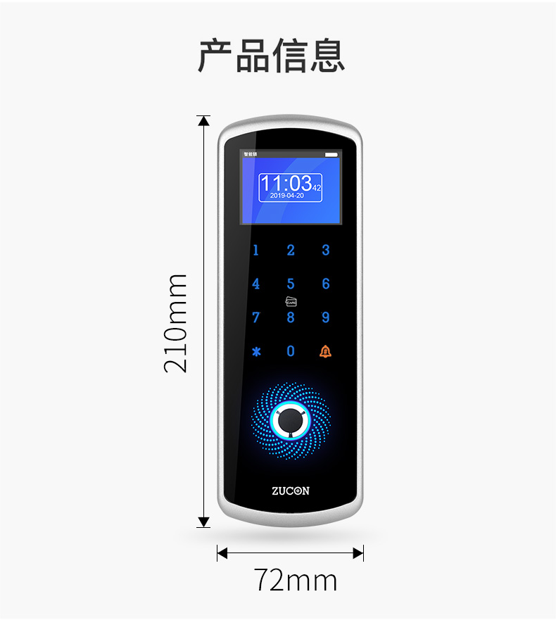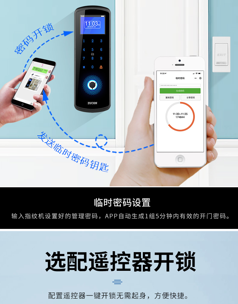 ZUCON F23 2.4G免布线指纹门禁 无线指纹刷卡密码门铃电插锁磁力锁