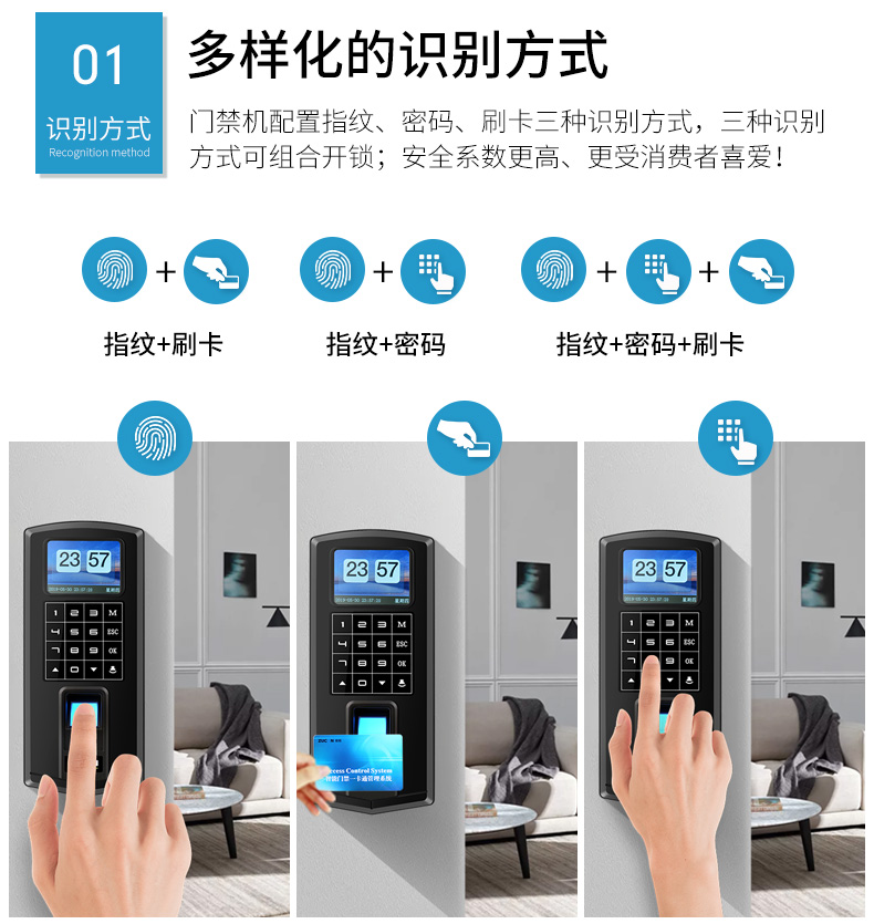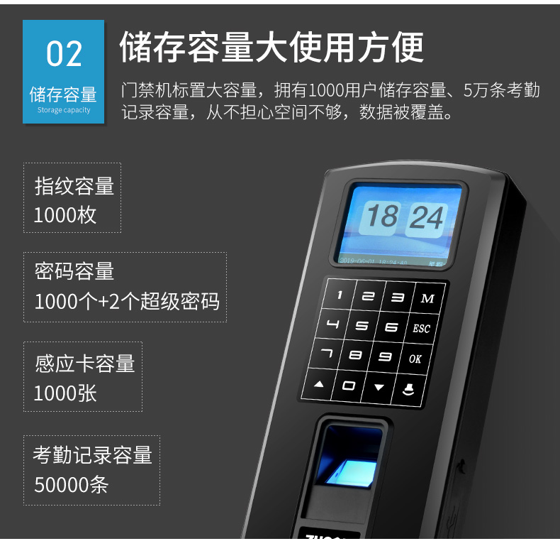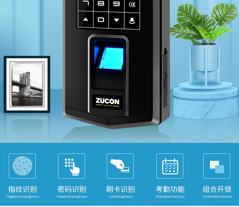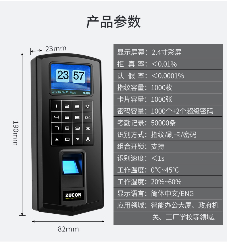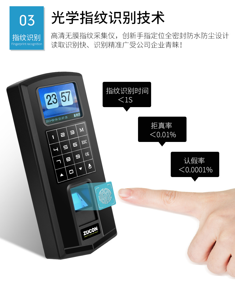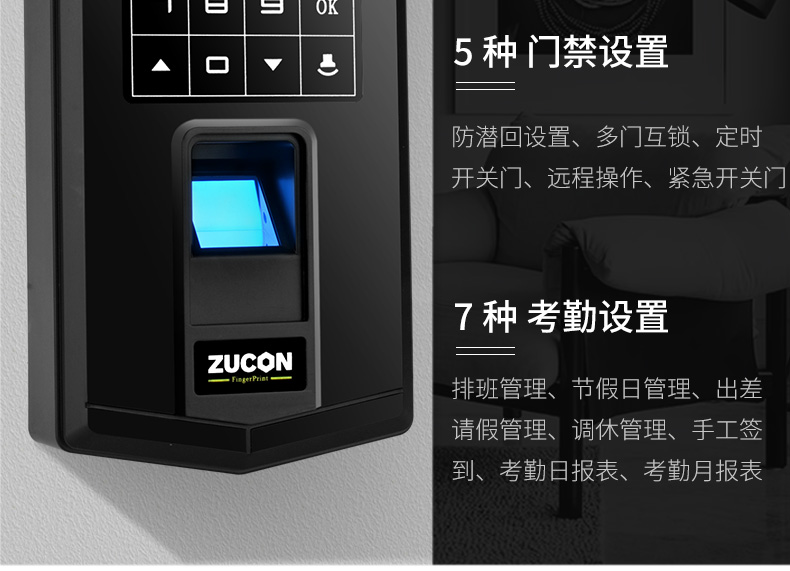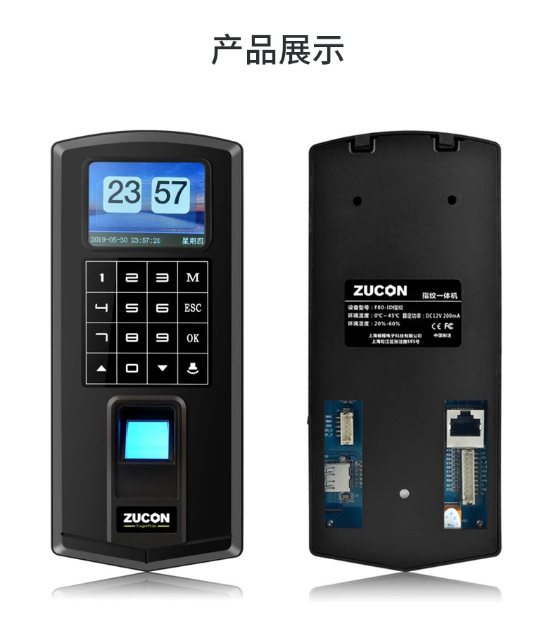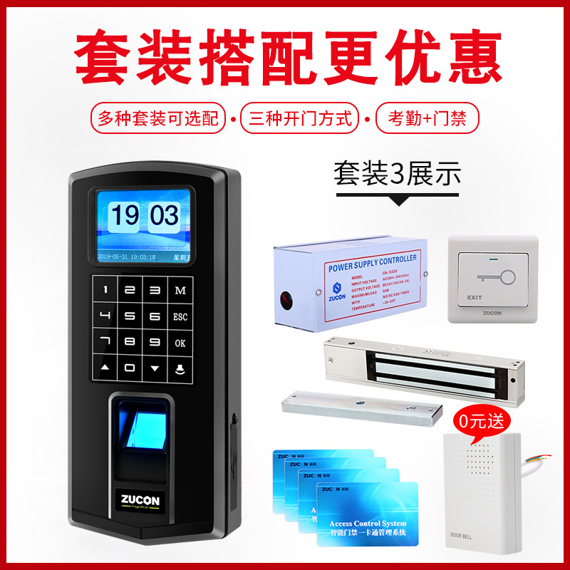 ZUCON F80指纹考勤门禁系统 考勤机指纹机密码机刷卡一体机磁力锁