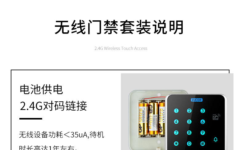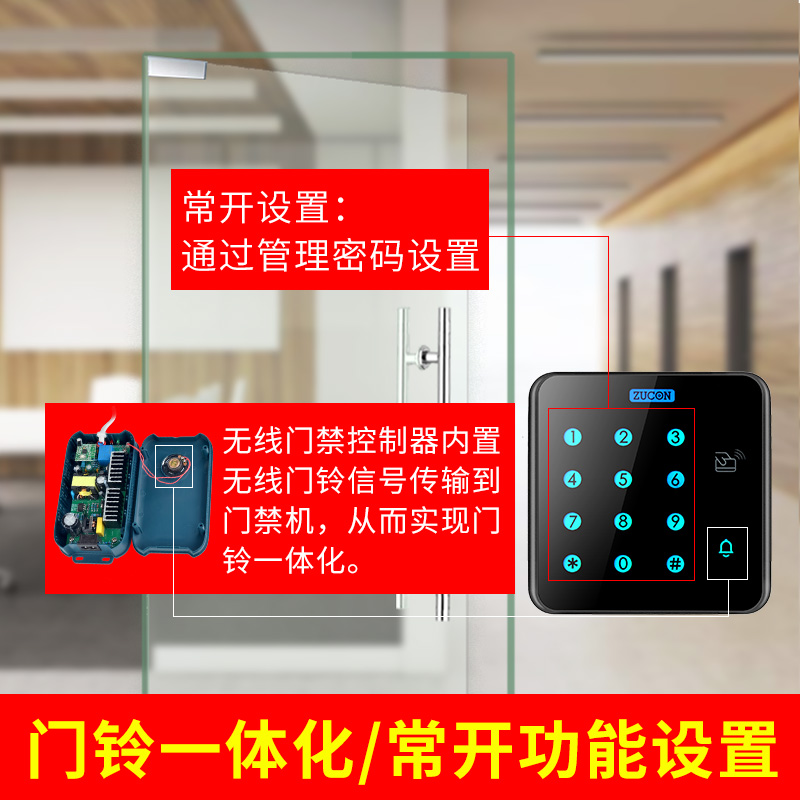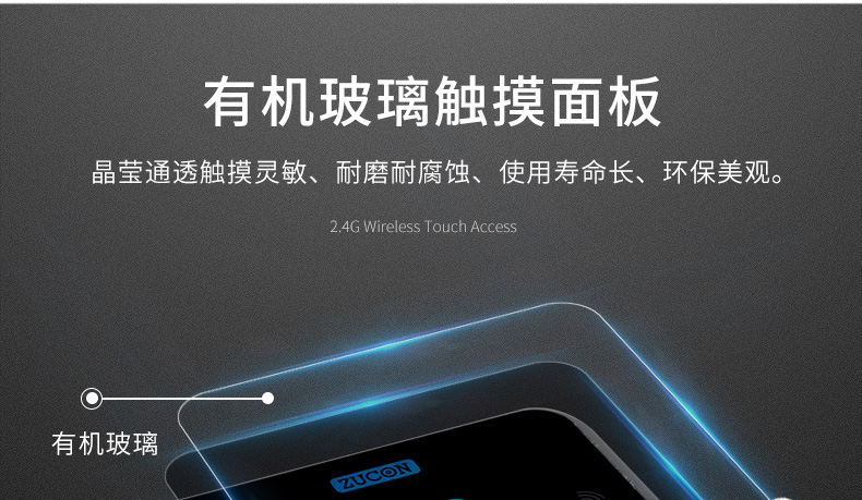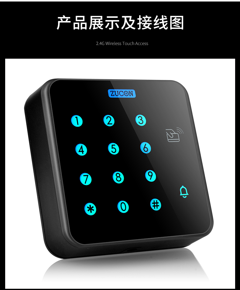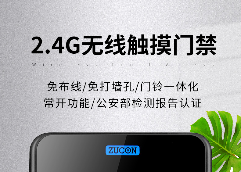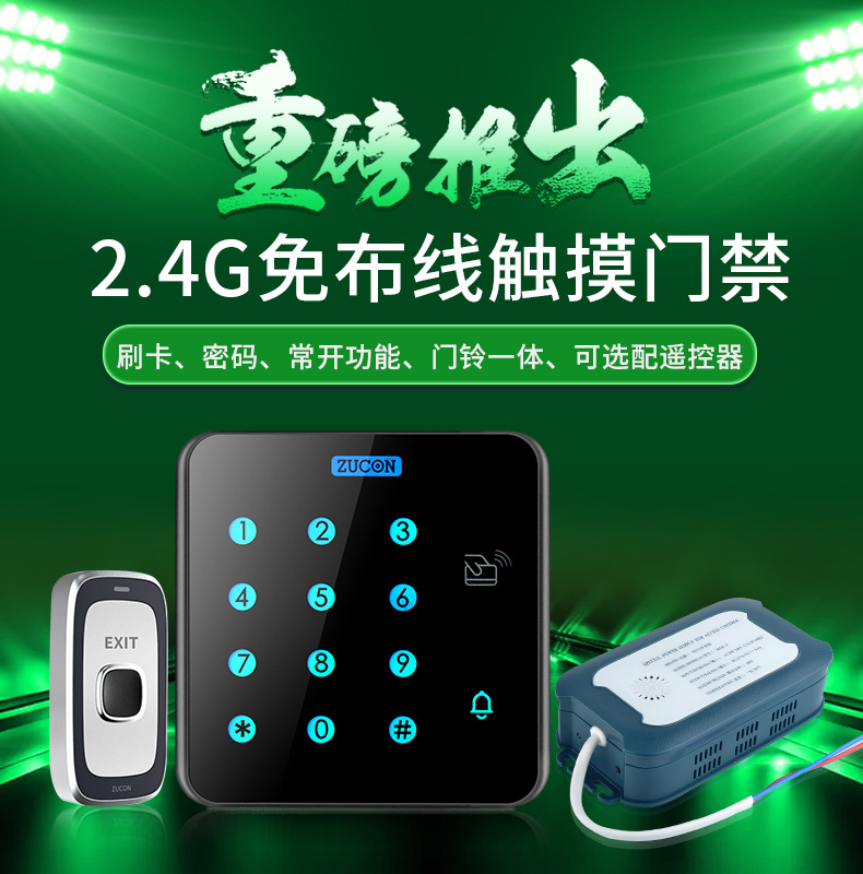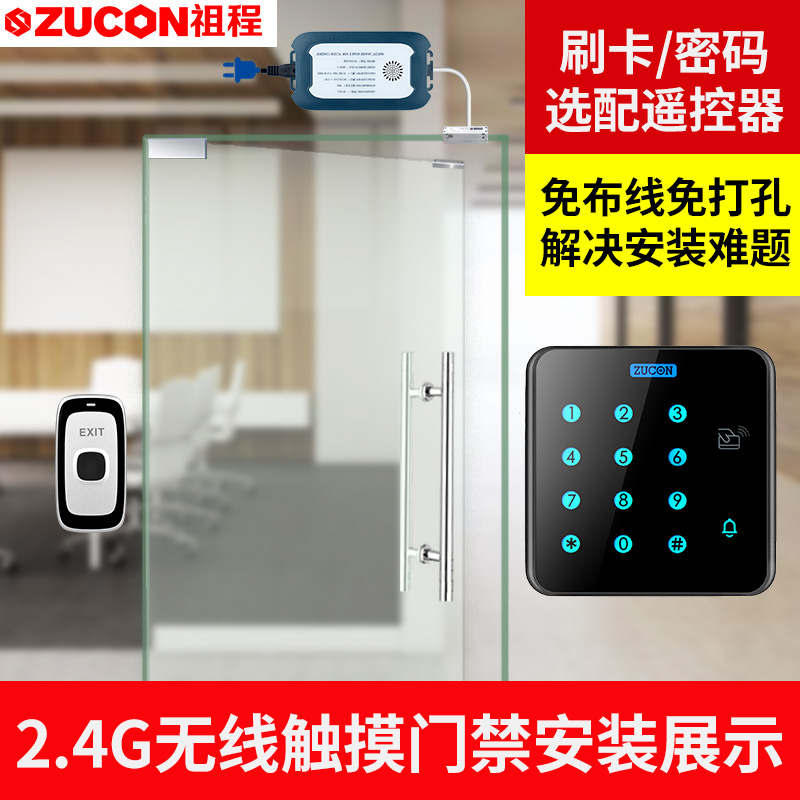 ZUCON 2.4G无线触摸门禁系统 免打孔刷卡密码一体电插锁磁力锁