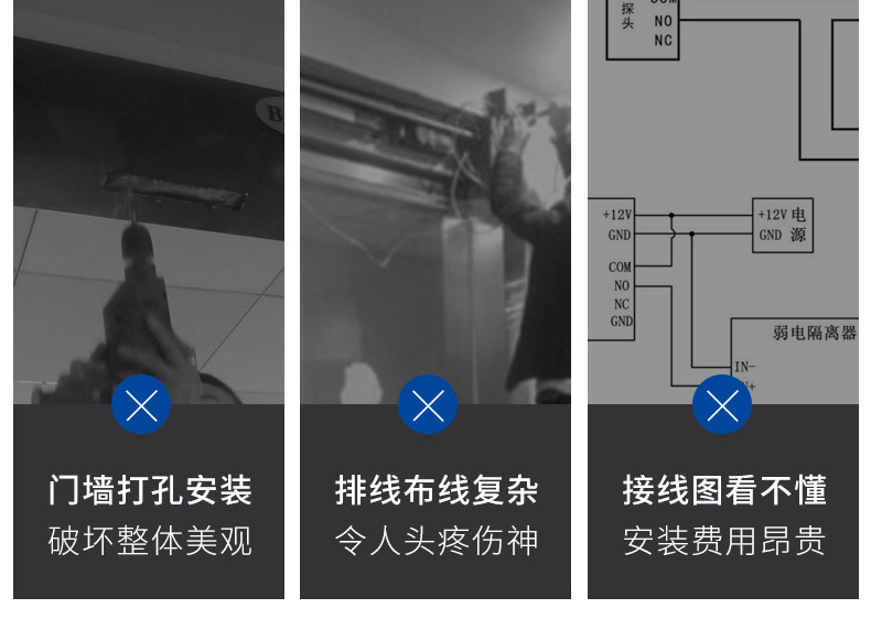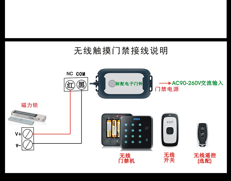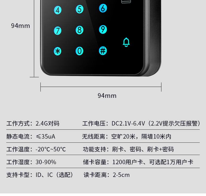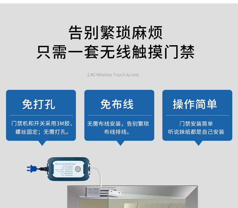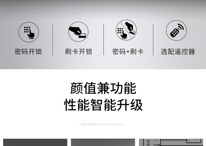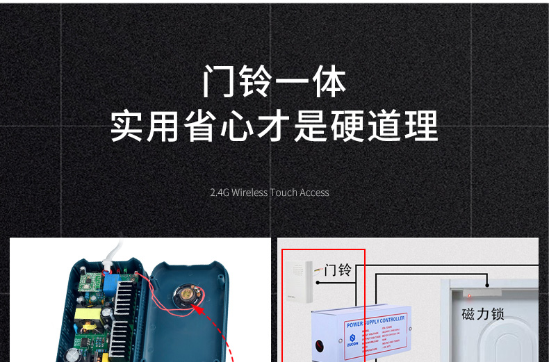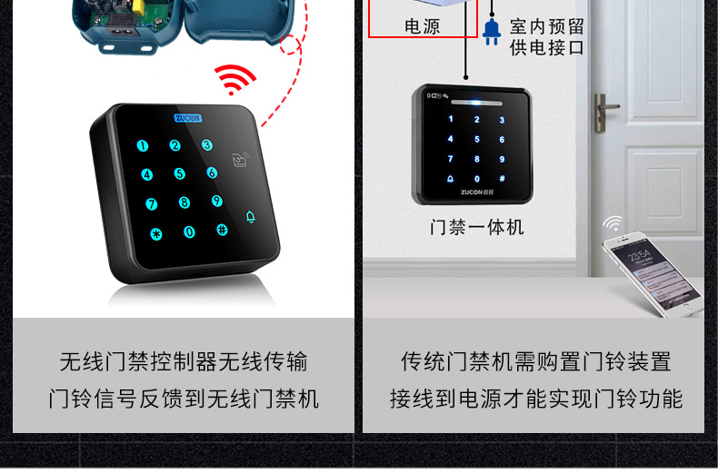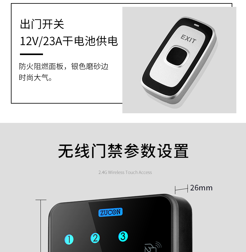 ZUCON 2.4G无线触摸门禁系统 免打孔刷卡密码一体电插锁磁力锁