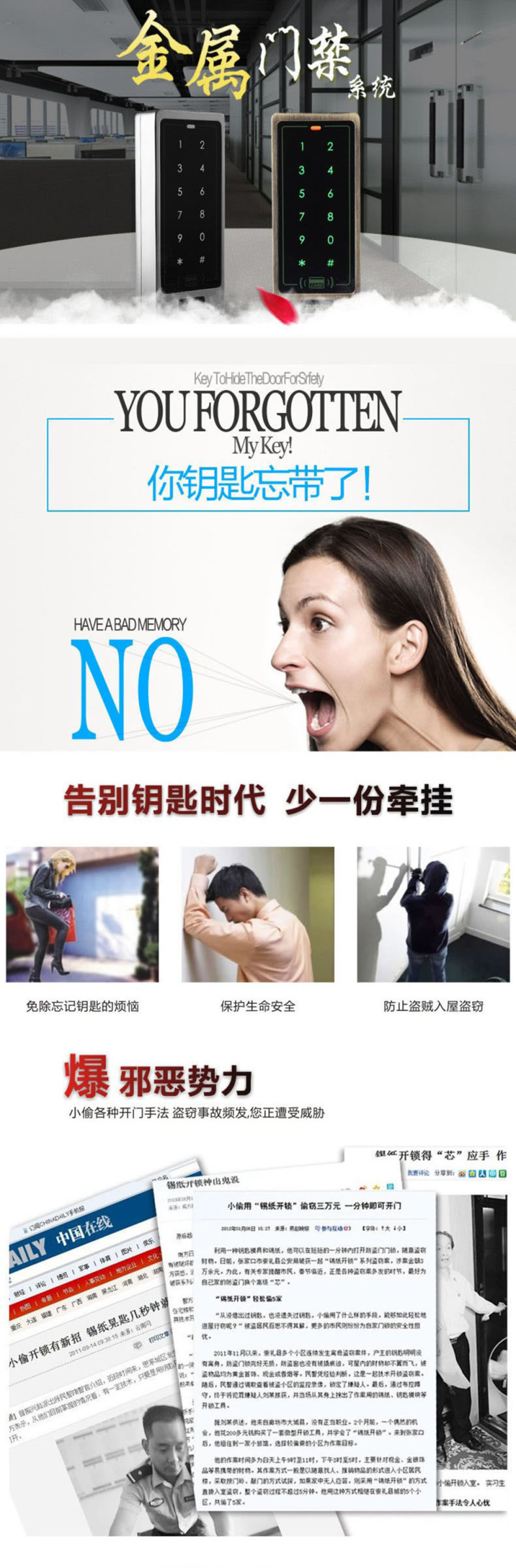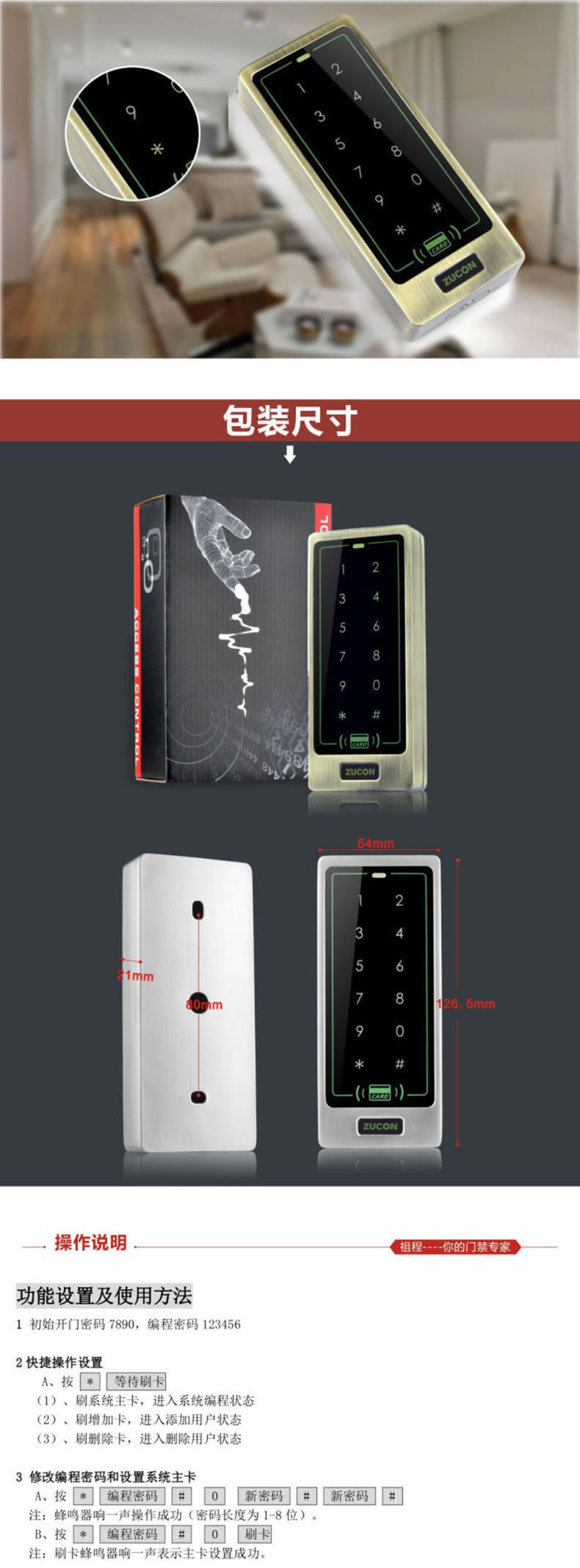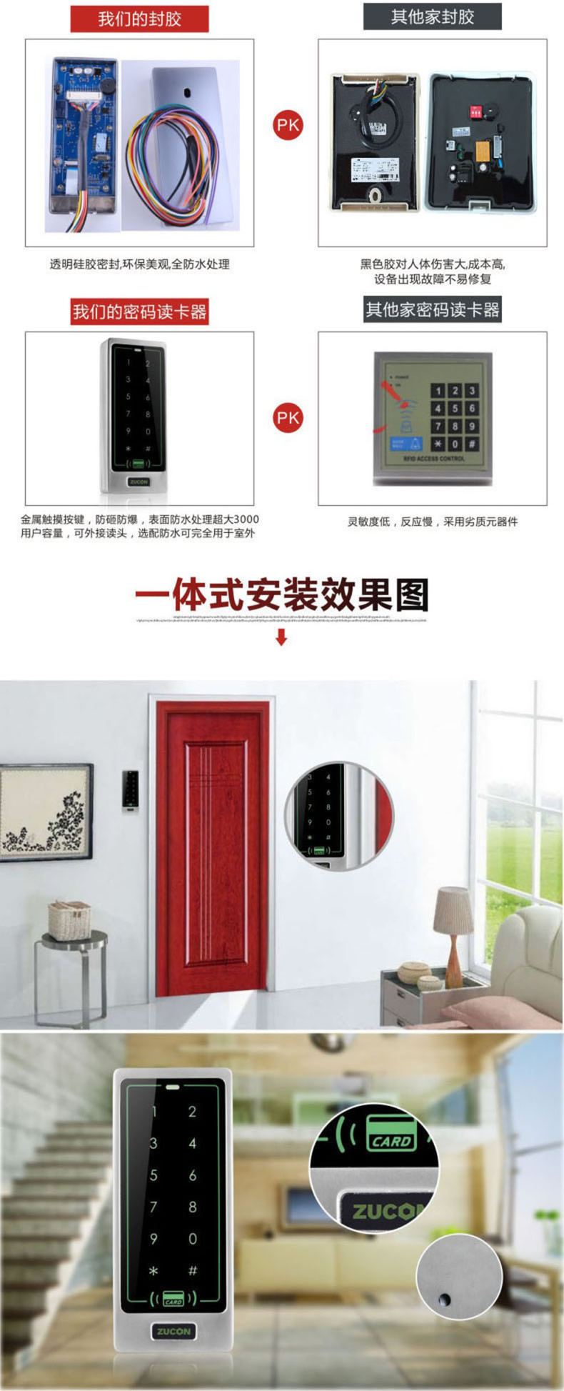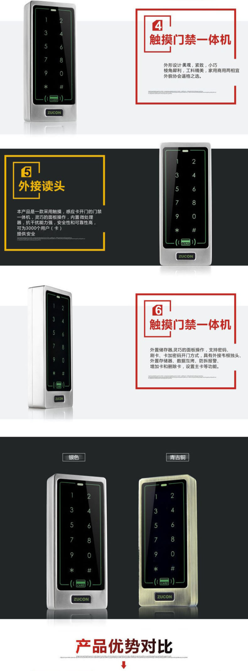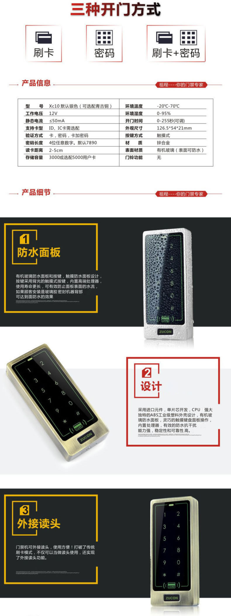 ZUCON XC10金属门禁一体机 防砸防爆室外防水防雨刷卡读卡器