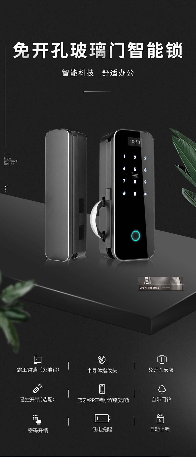 ZUCON F491办公室玻璃门指纹锁免开孔门禁密码锁电子锁霸王金属锁无线