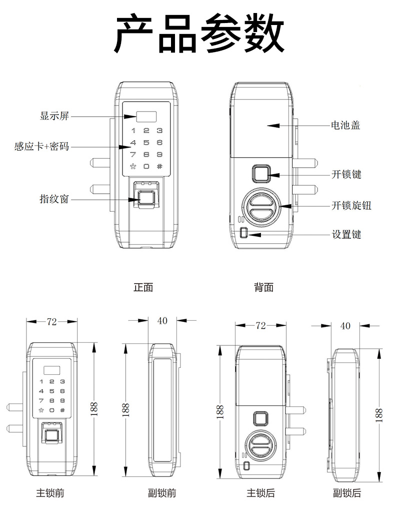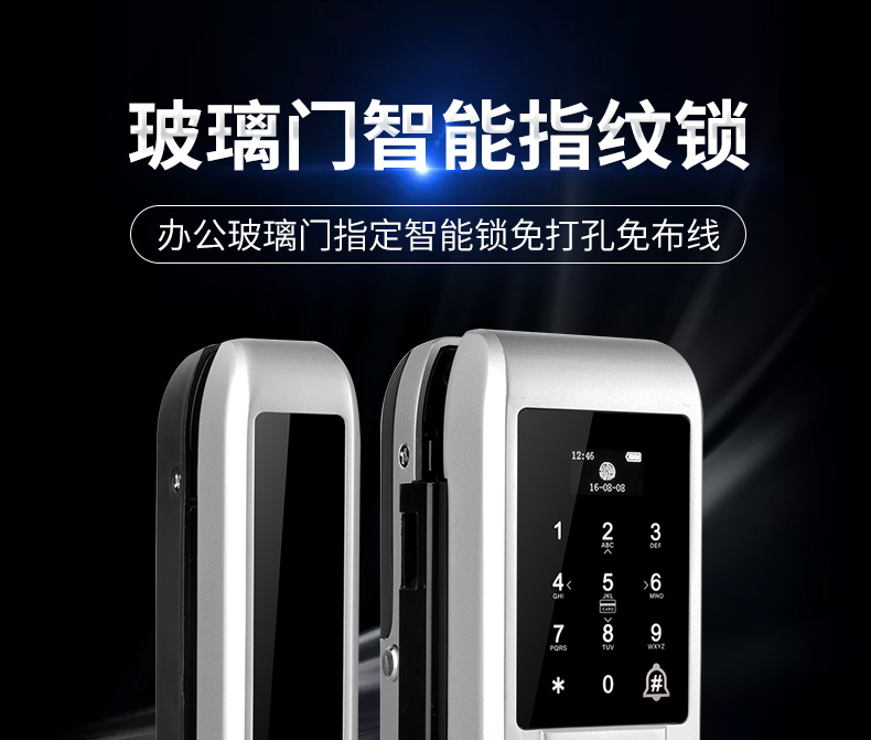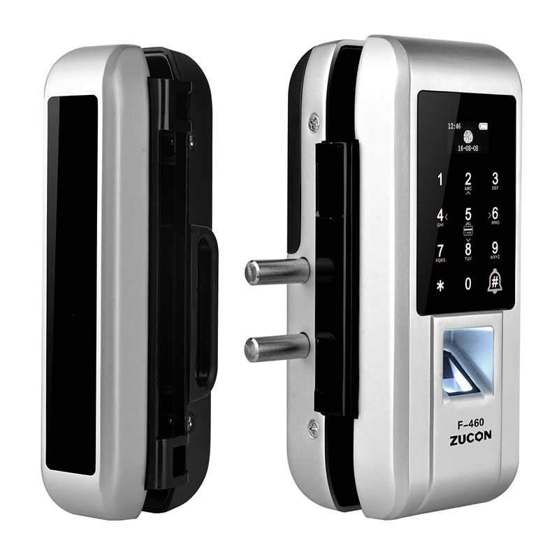 ZUCON F460办公室玻璃门指纹锁免开孔免布线密码锁锌合金属门禁锁IC卡