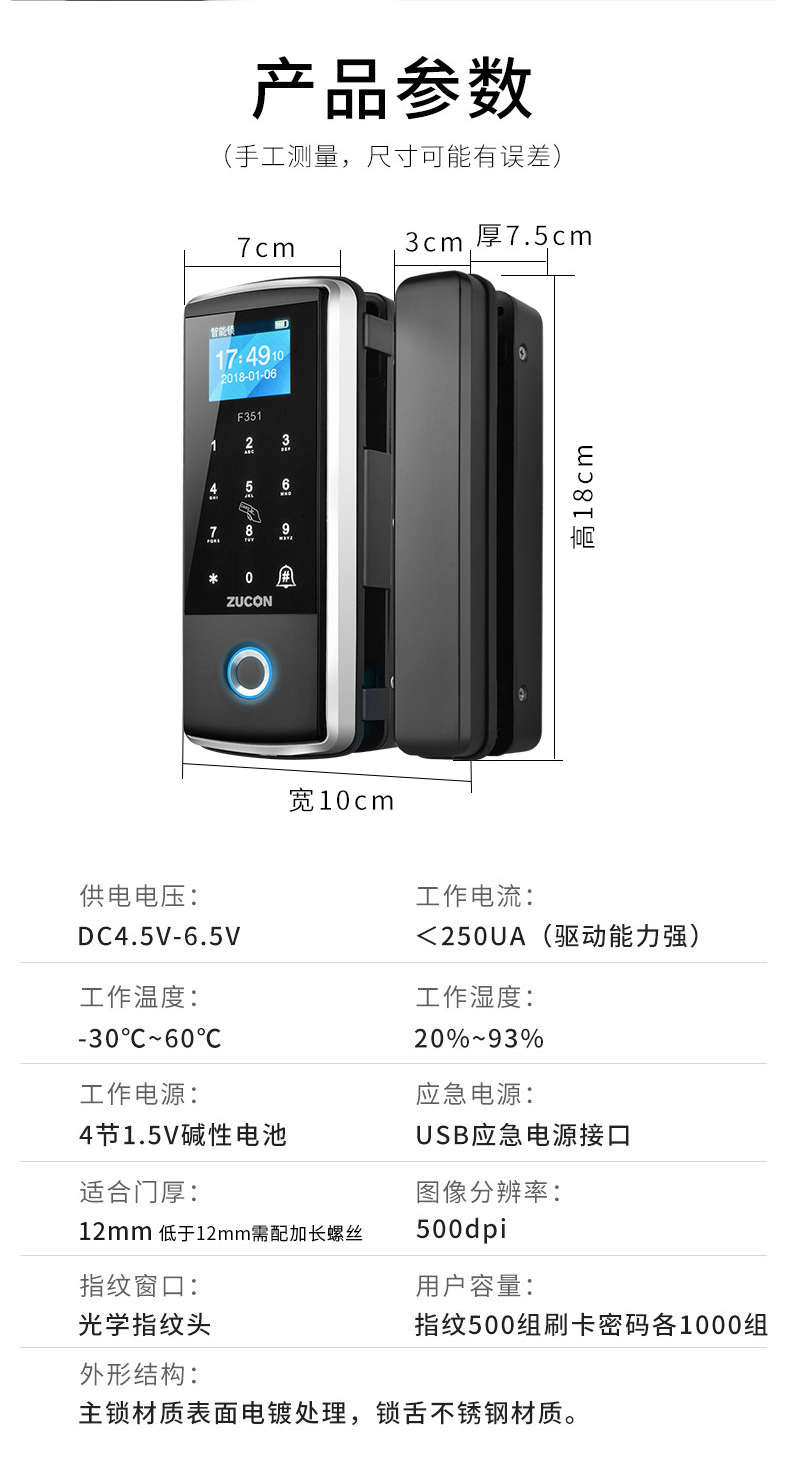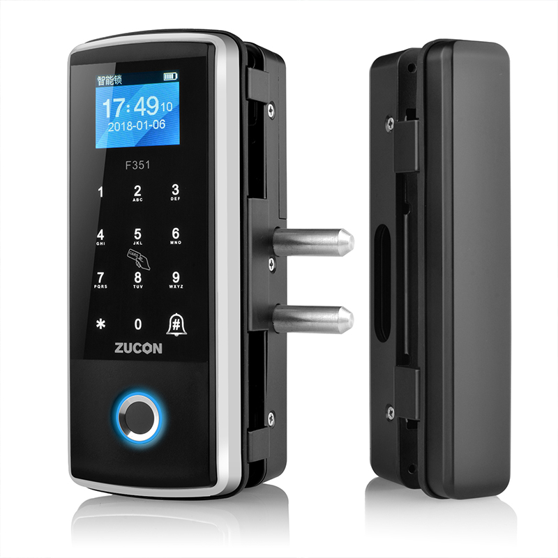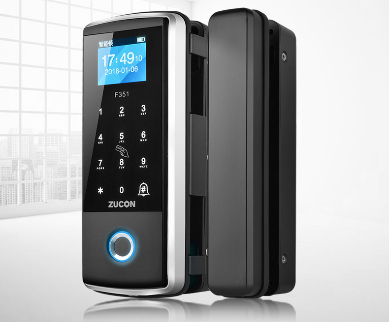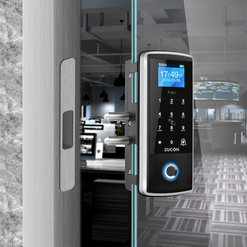 ZUCON F351办公室玻璃门指纹锁单开半导体免开孔智能电子密码锁双门禁