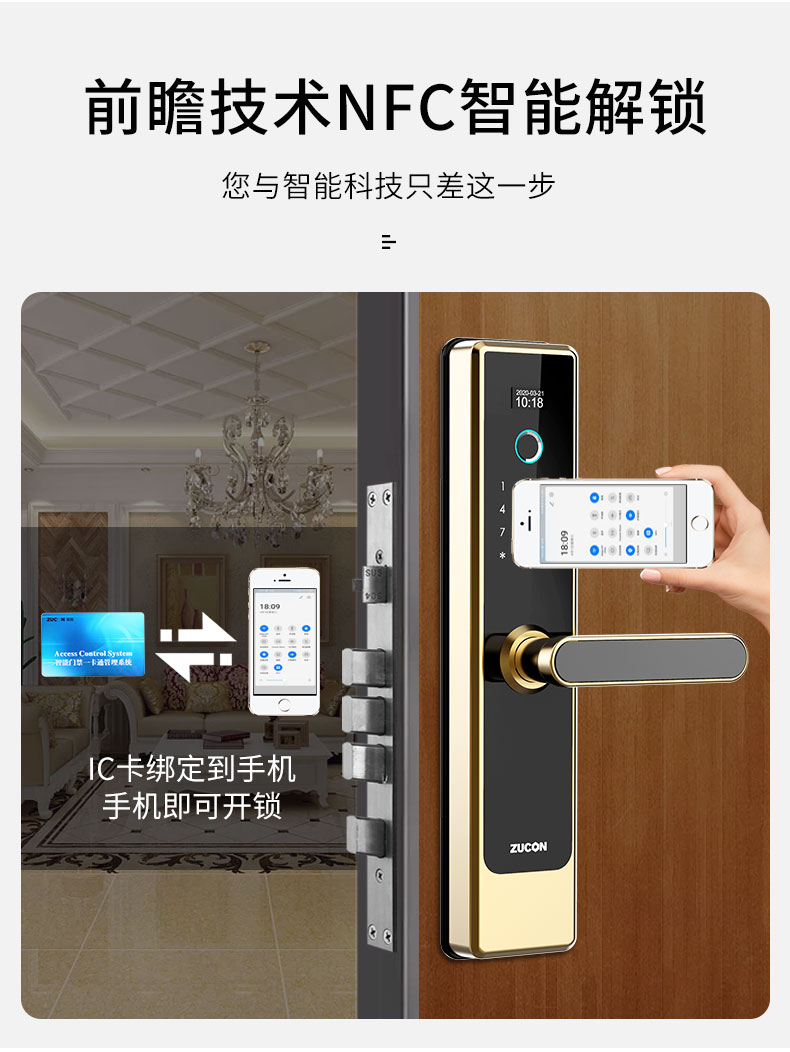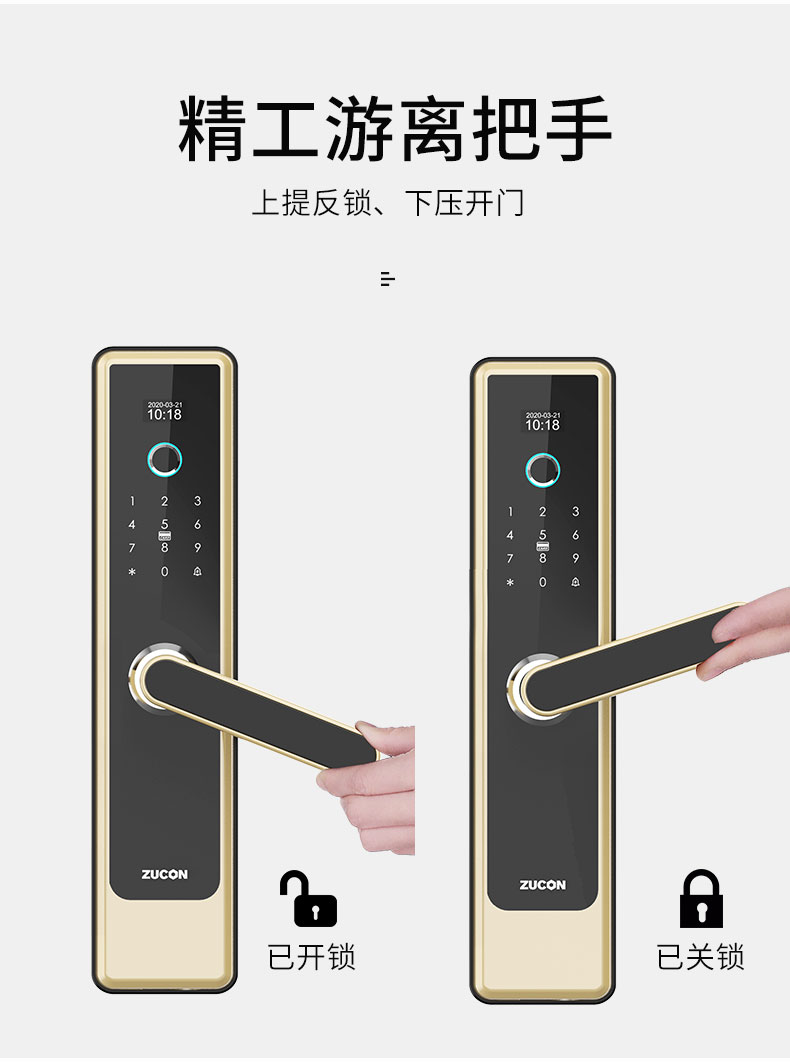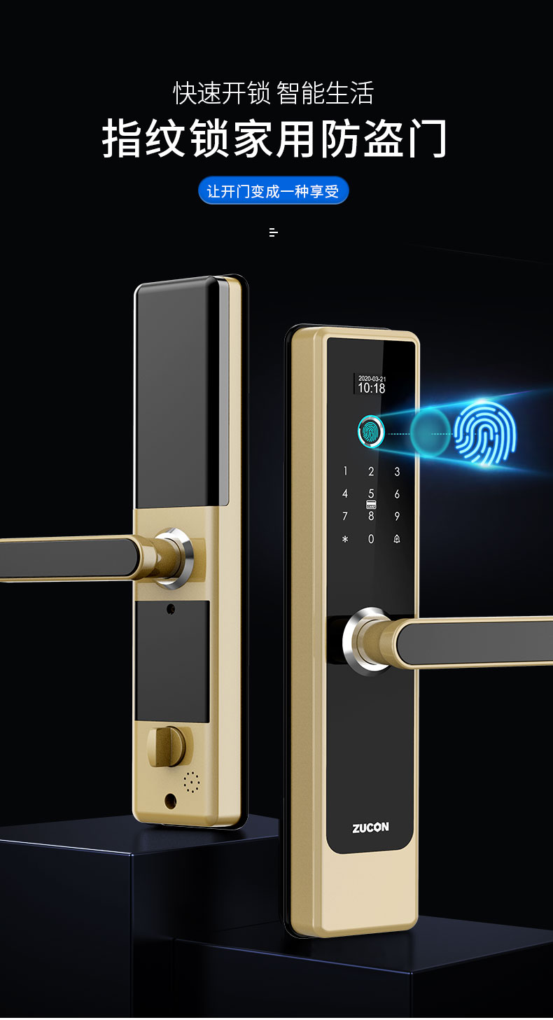 ZUCON F790P指纹锁家用防盗门密码锁电子智能门锁防盗锁指纹密码锁