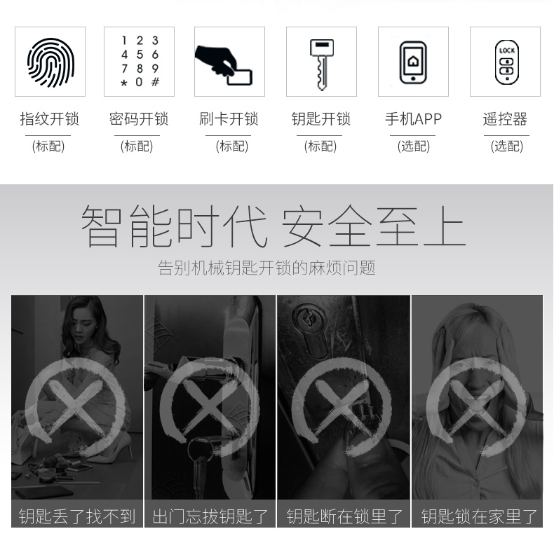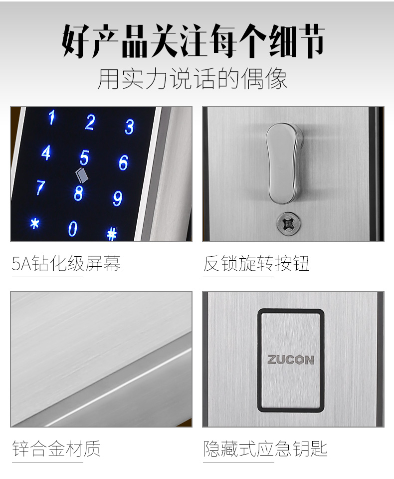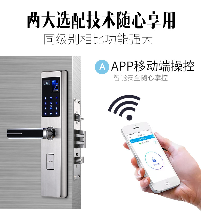 ZUCON F790祖程家用防盗指纹锁智能锁密码刷卡锁手机App远程遥控开锁