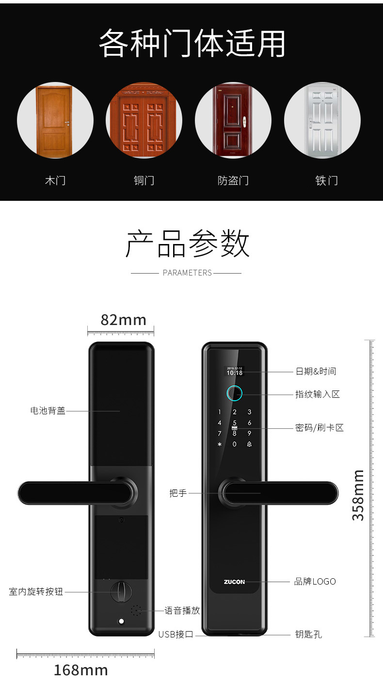 ZUCON F798P智能门锁指锁别密码锁电子锁家用室内防盗门NFC手机远程开锁