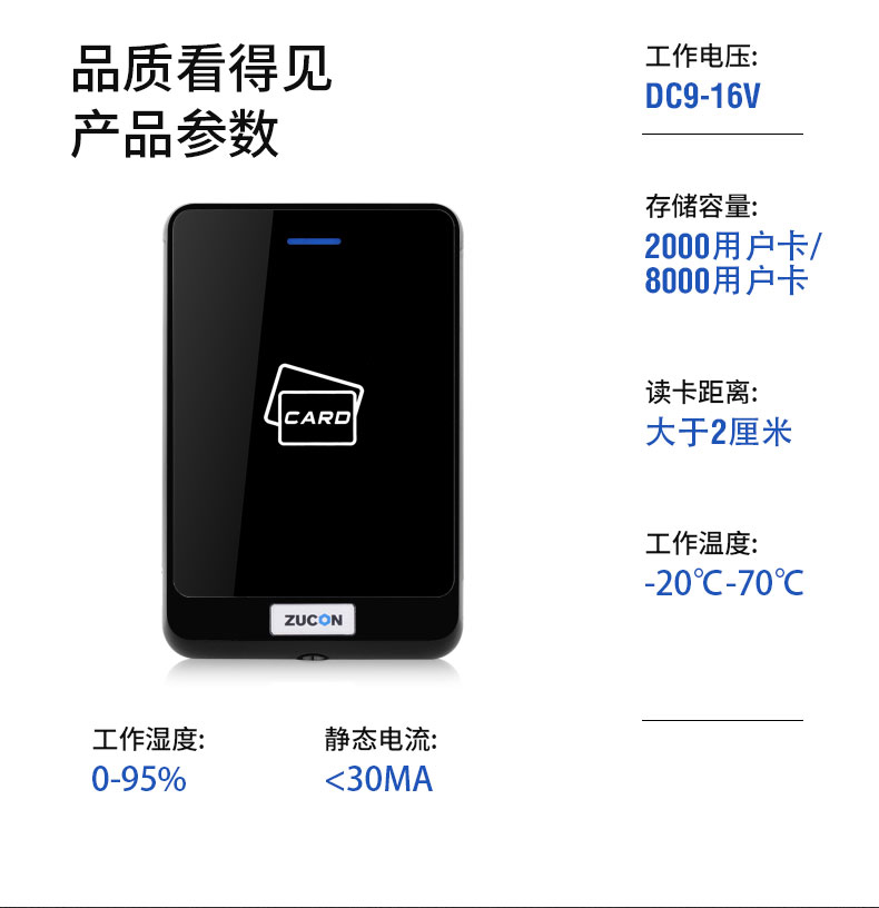 ZUCON X13G联网门禁读头IDIC门禁读卡器韦根26 34防水读卡器配控制器