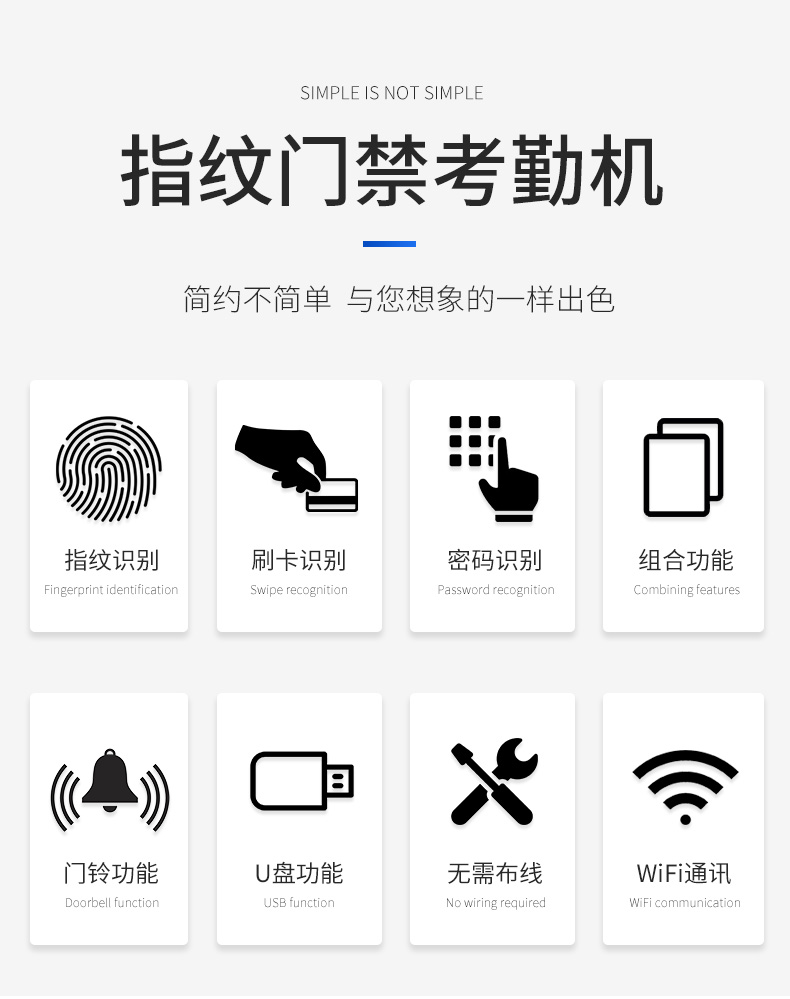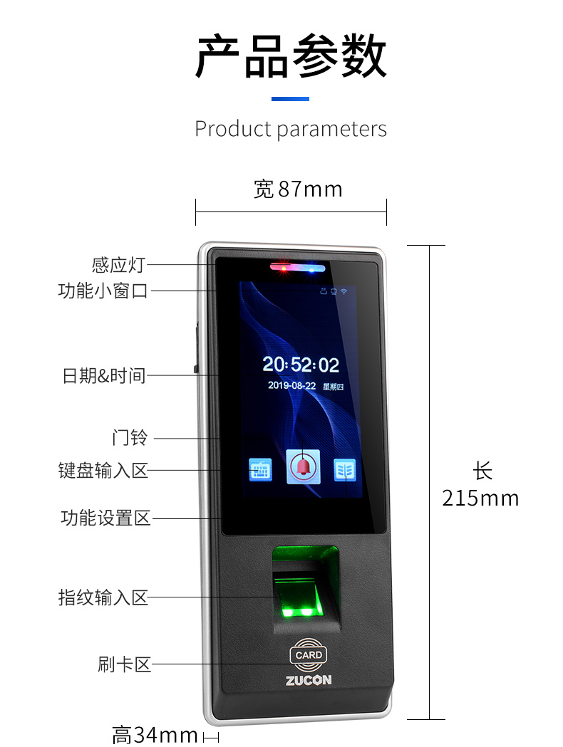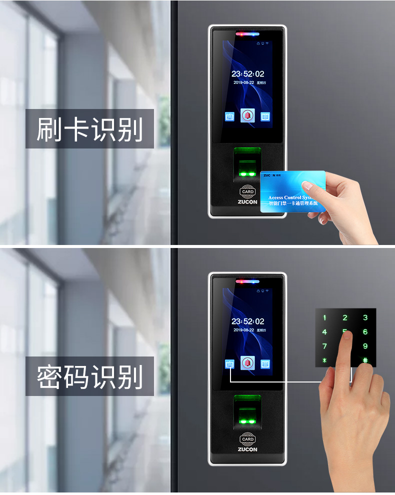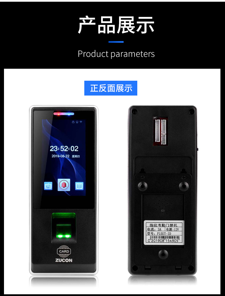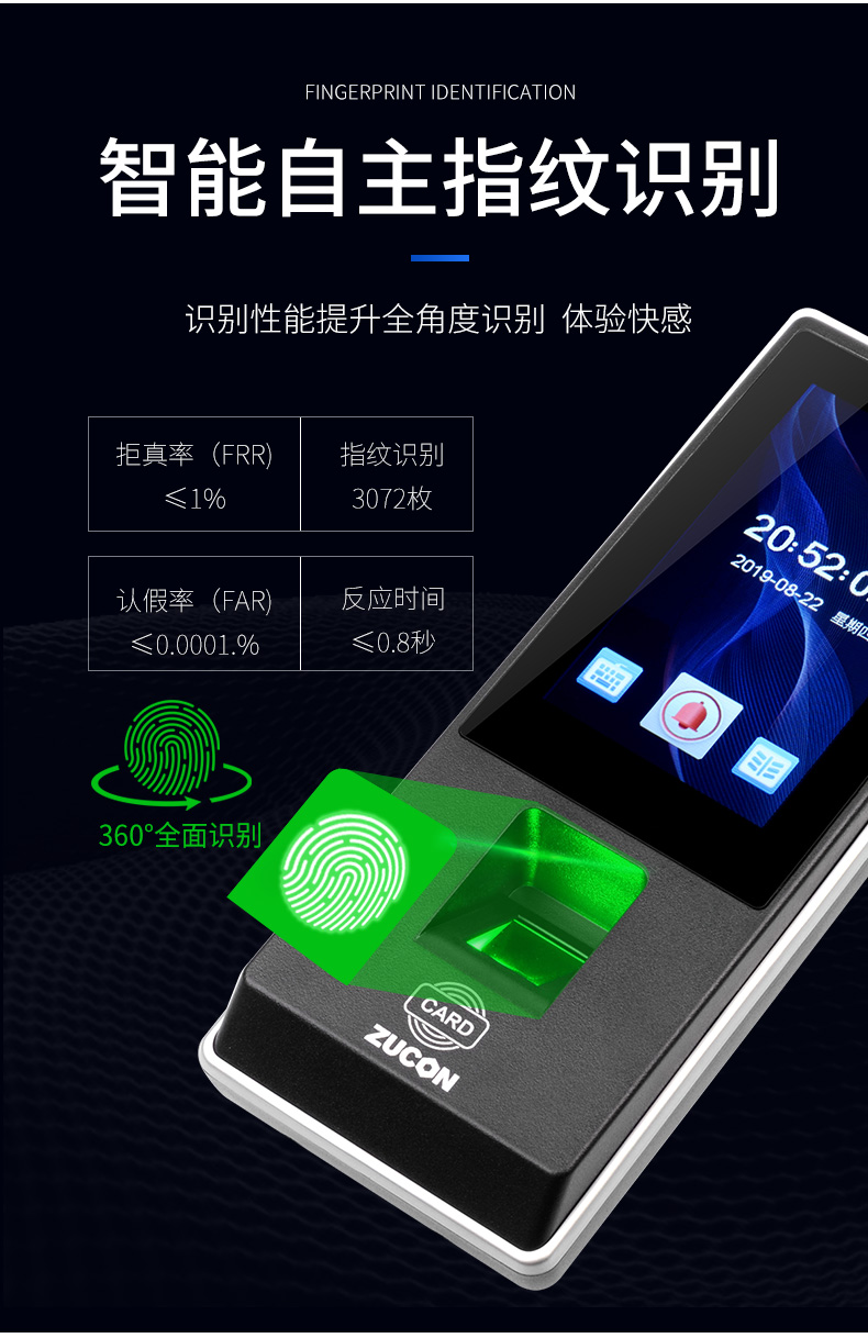 ZUCON F15指纹考勤门禁一体机办公室密码刷卡一体机门禁考勤一体机