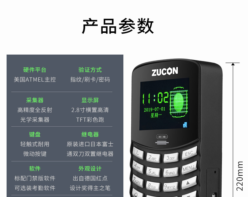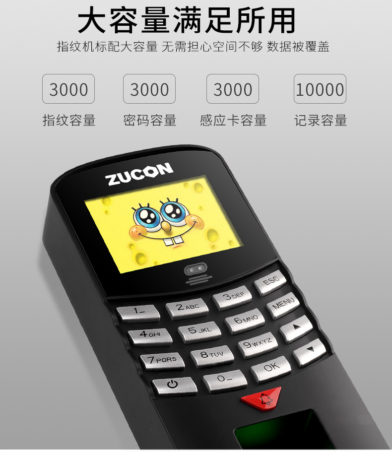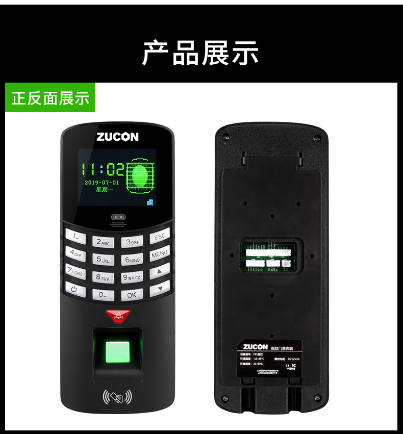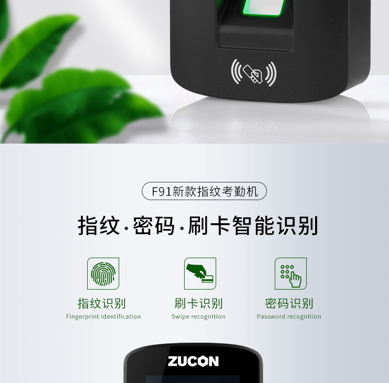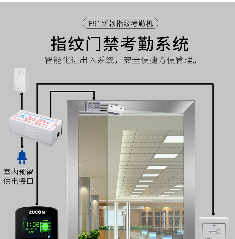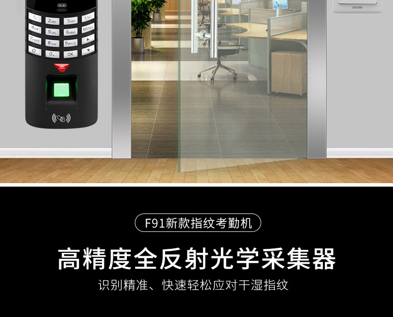 ZUCON F91祖程指纹门禁一体机办公考勤主机网络U盘下载数据3000大容量