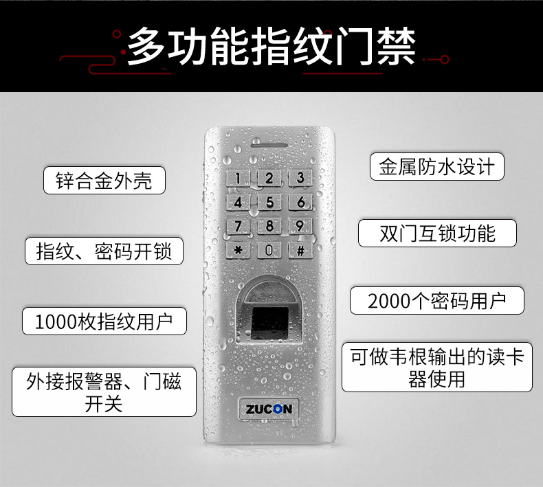 ZUCON F14门禁系统防水指纹一体机 密码开锁 室外防水指纹机
