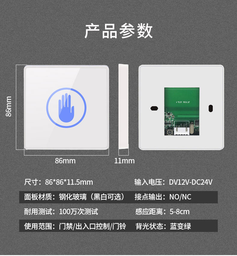 ZUCON K83非接触式感应开关门禁系统触摸出门按钮遥控自动门开关