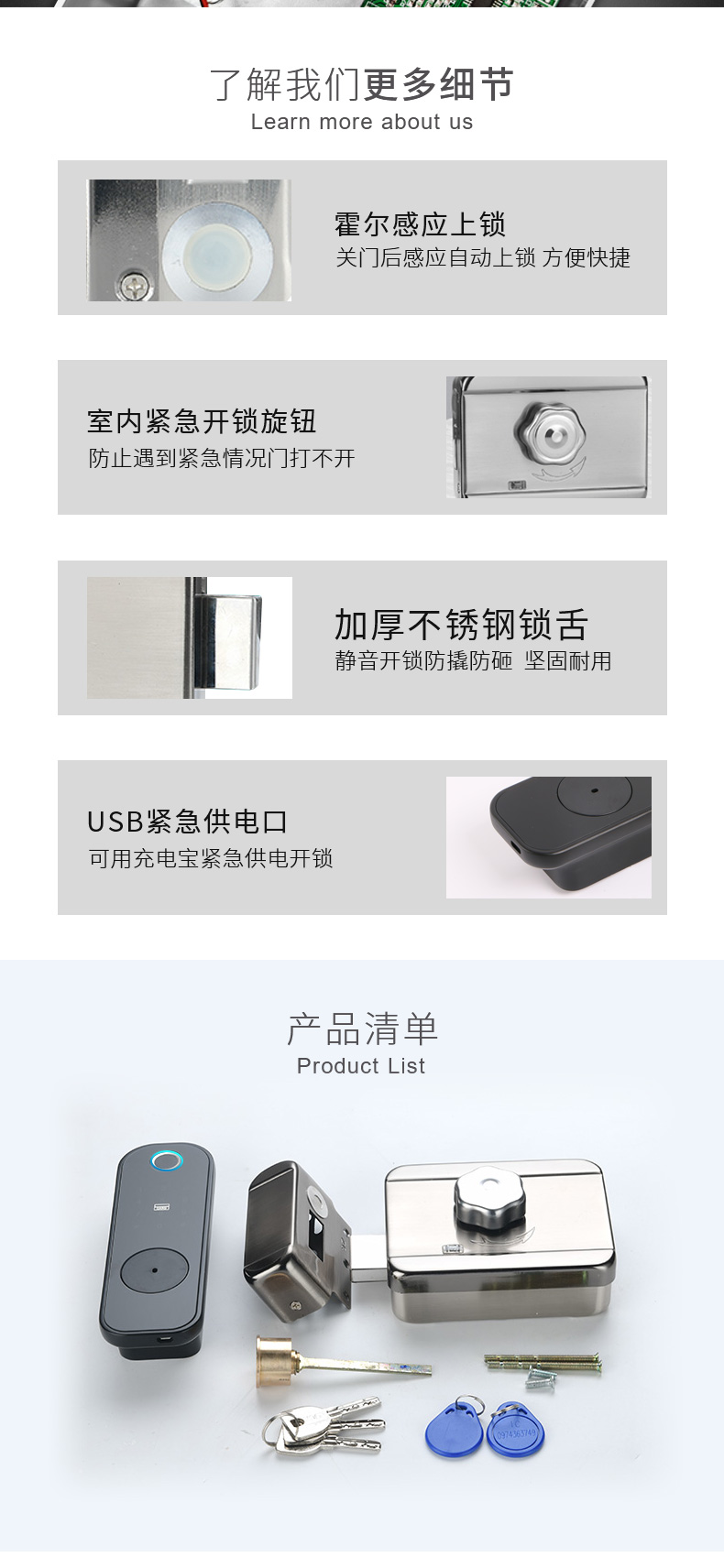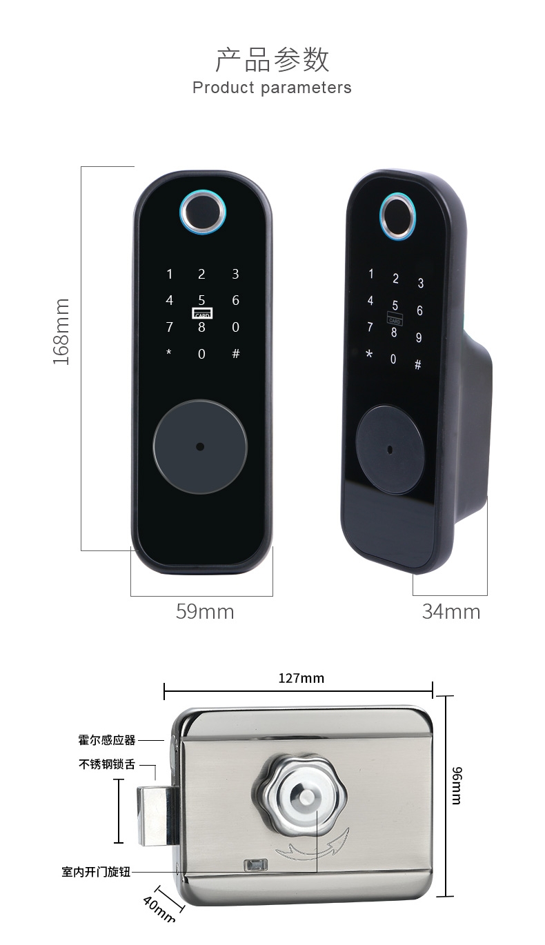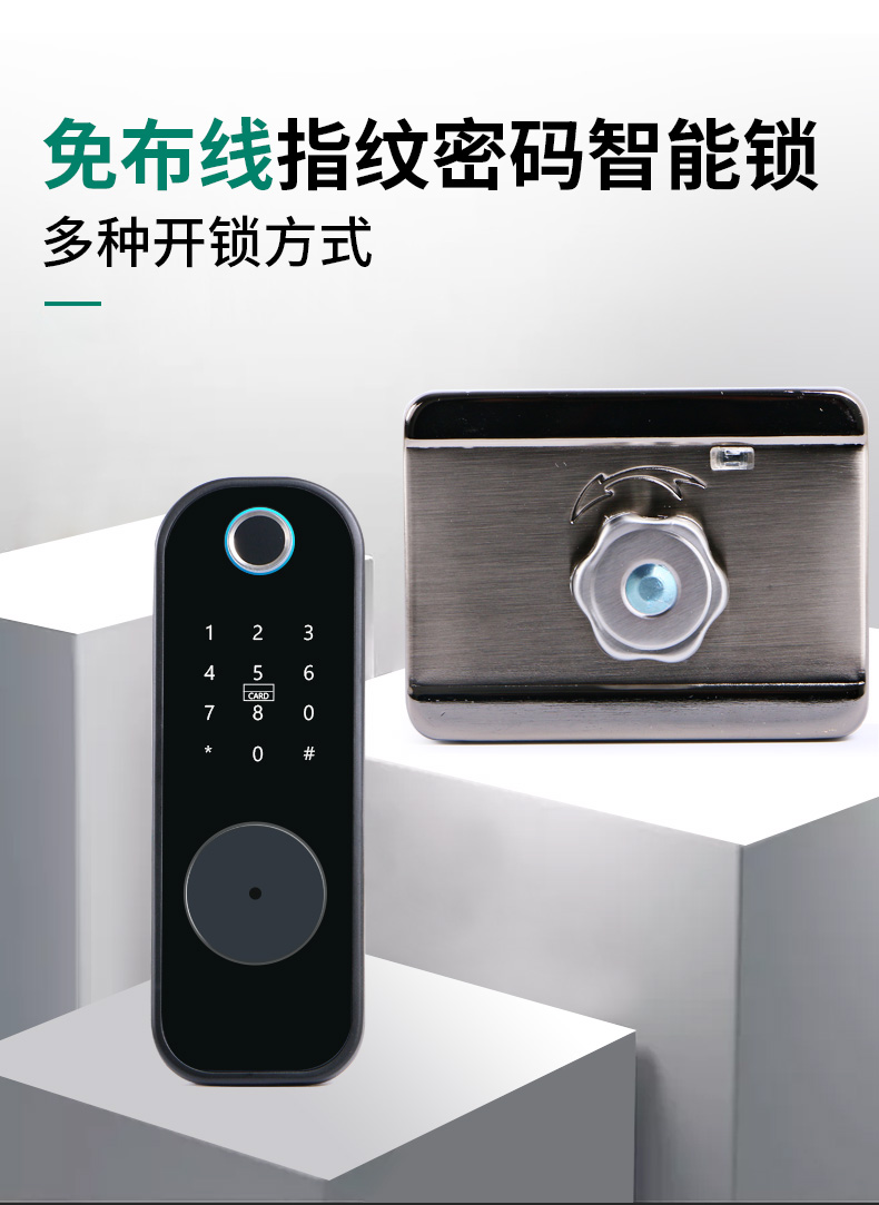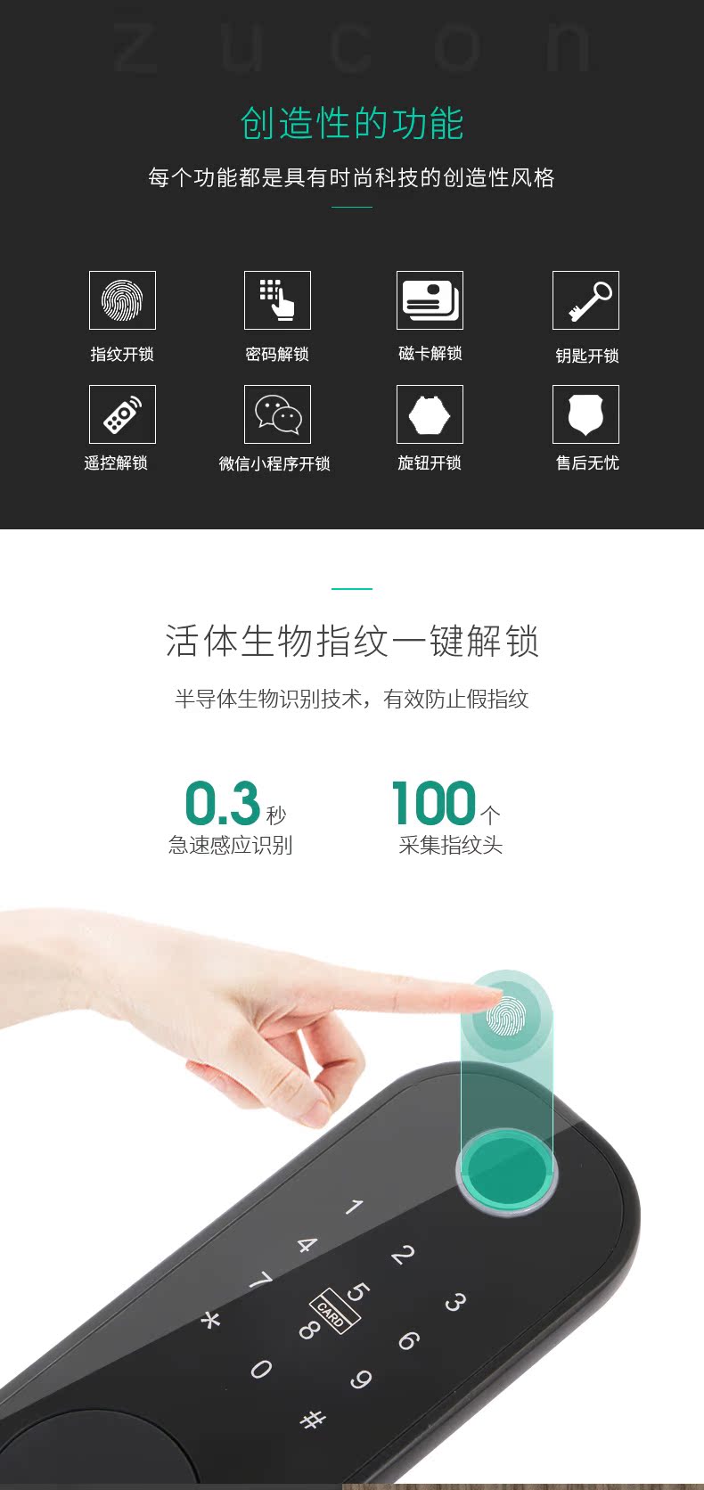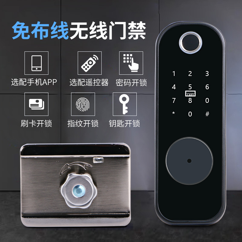 ZUCON 510A免布线指纹密码电控锁智能门锁门禁电机锁电池遥控电子锁