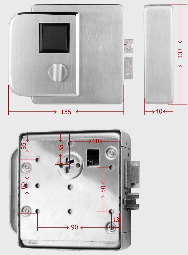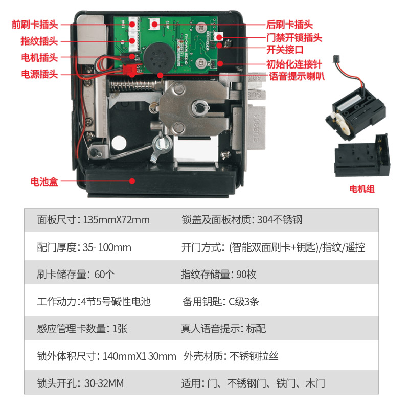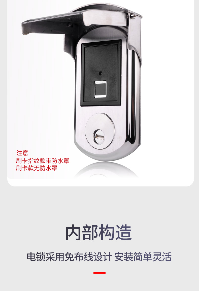 ZUCON 508A/B 509A/B防水免布线庭院锁门禁系统电控锁铁门锁无线电池户外防雨刷卡指纹
