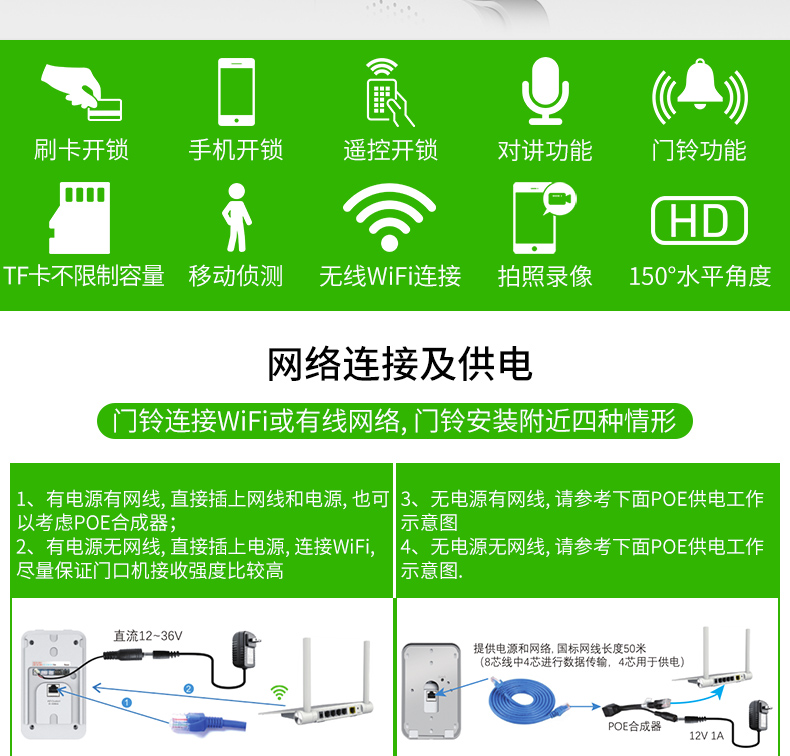 ZUCON M25别墅办公室可视对讲门禁系统APP无线手机开锁远程监控套装