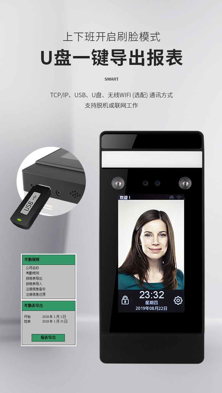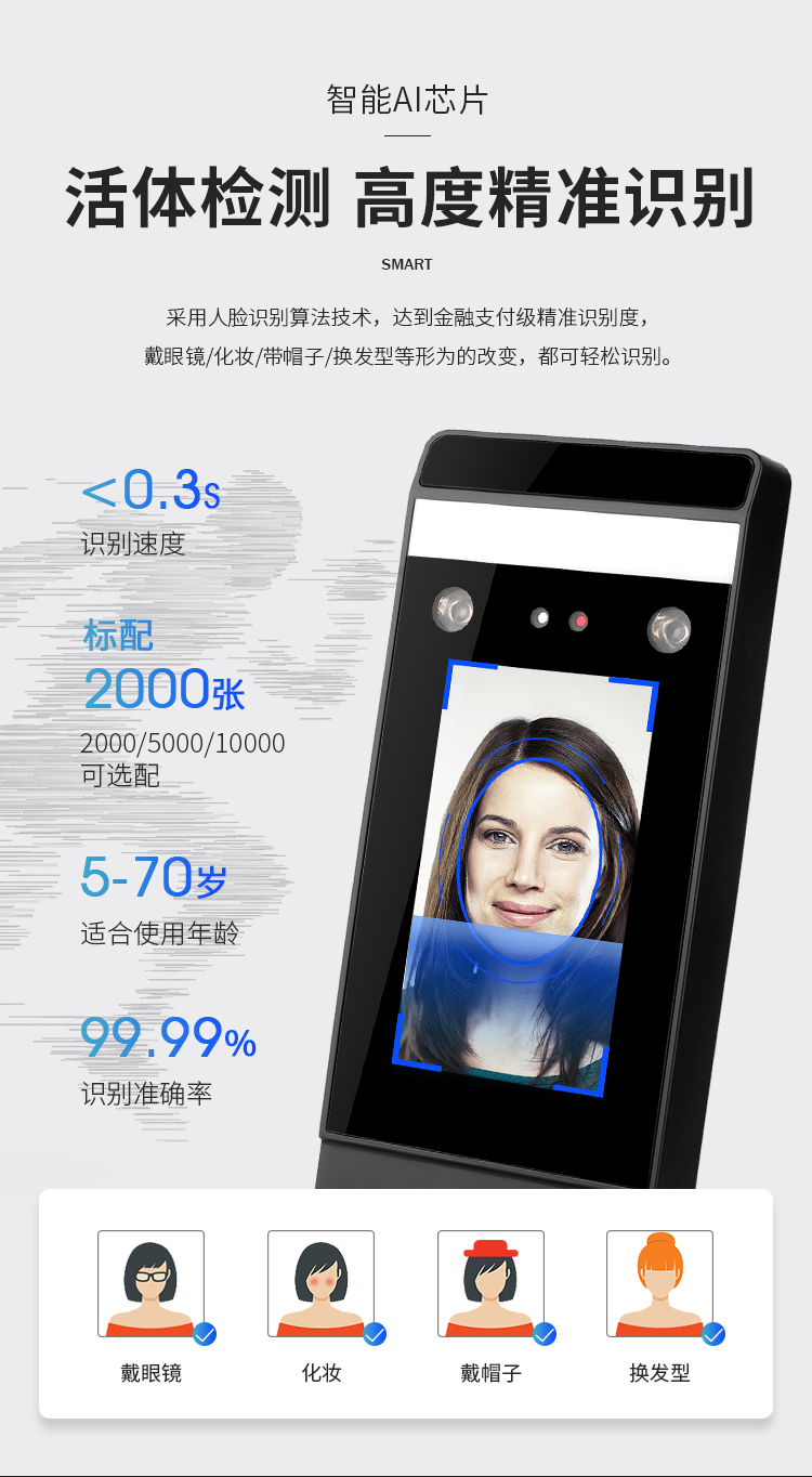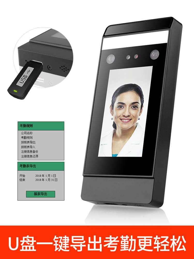 ZUCON F24动态人脸密码触屏考勤门禁机选配刷卡NFC磁力锁电插门禁系统套装