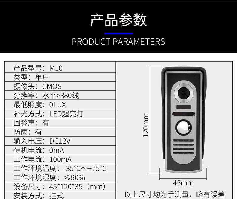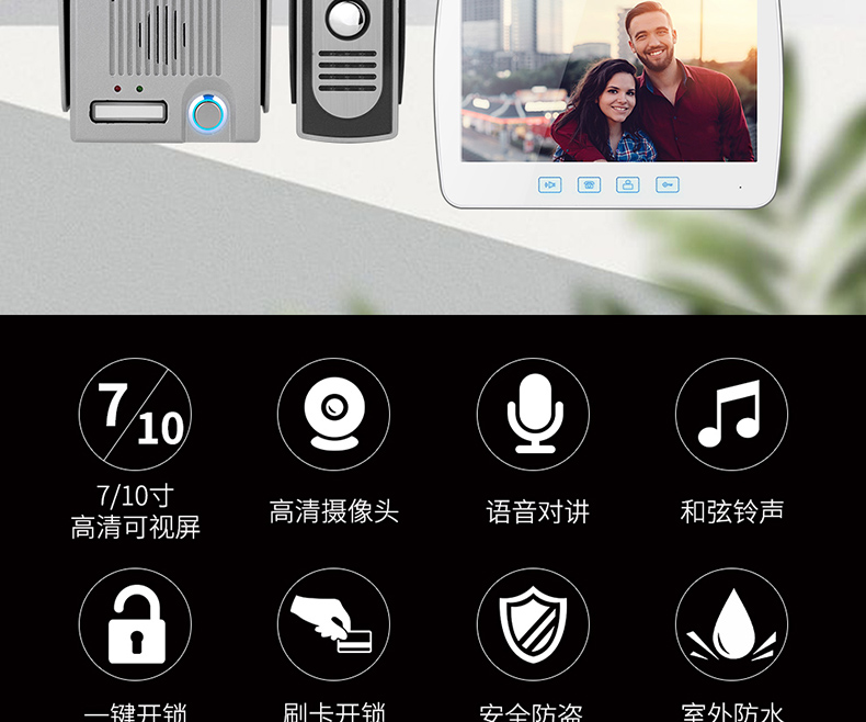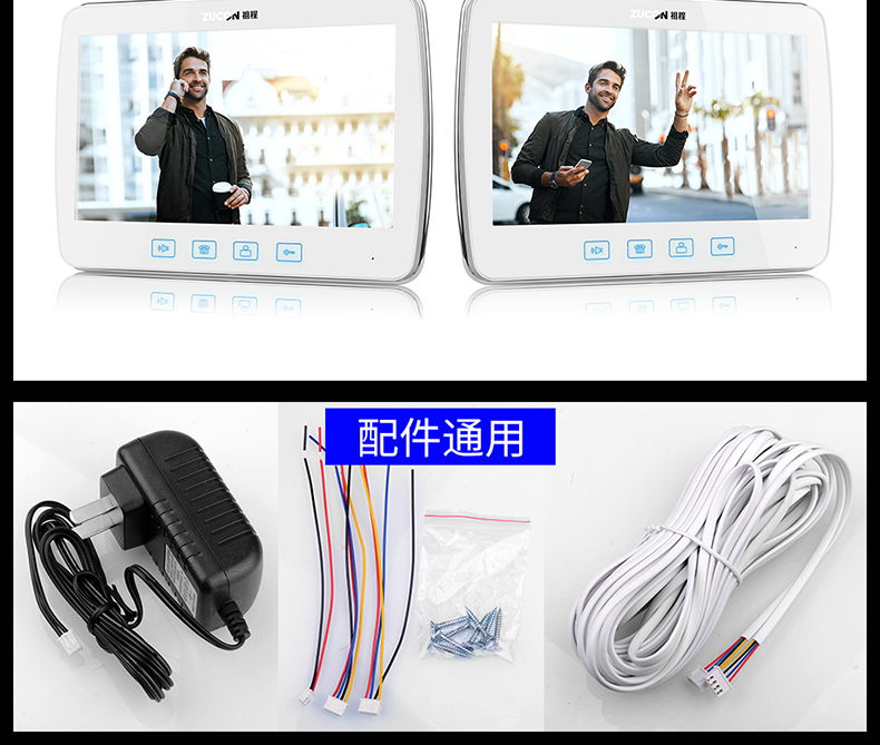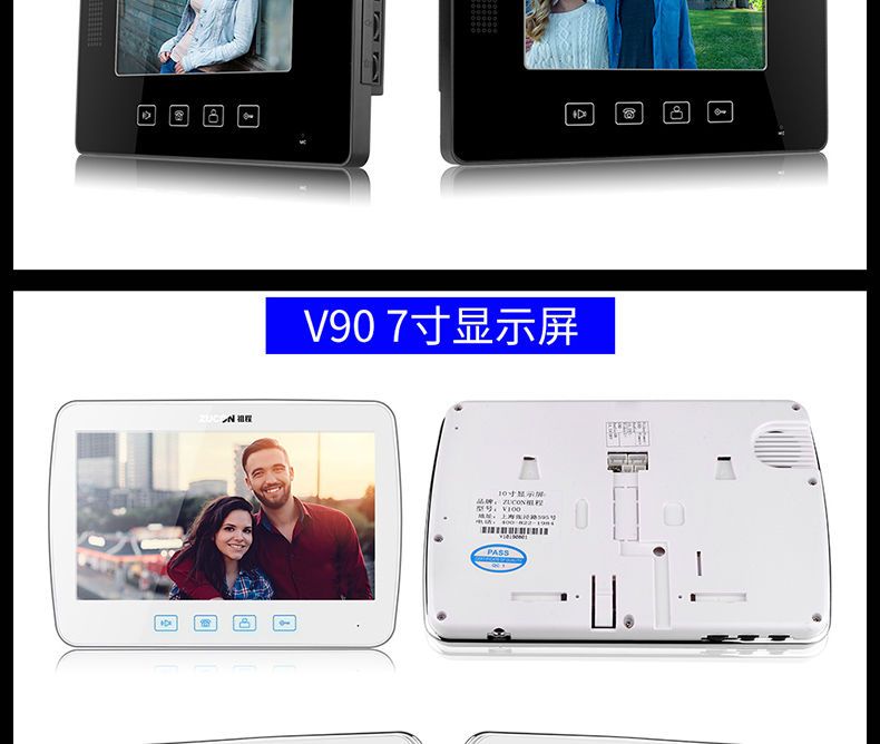 ZUCON M10 M11-V90或者M10 M11-V100别墅有线可视对讲彩色高清夜视7寸10寸可视对讲门铃 刷卡