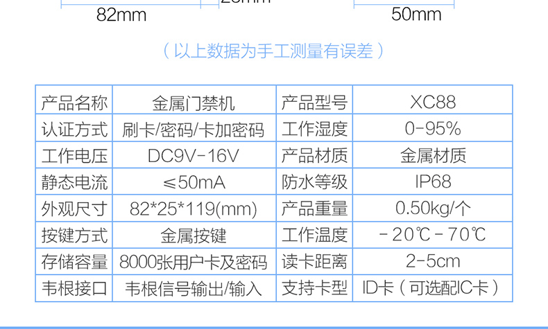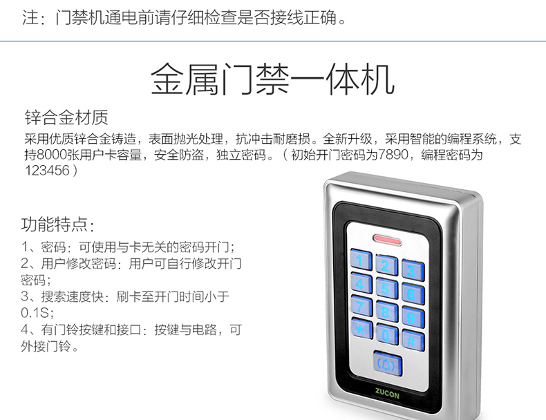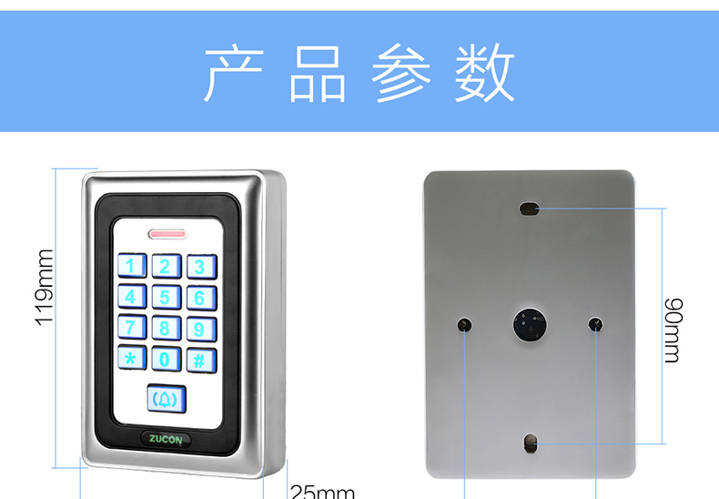 ZUCON XC88金属按键门禁机一体机XC88室外防水门禁ID、IC读头