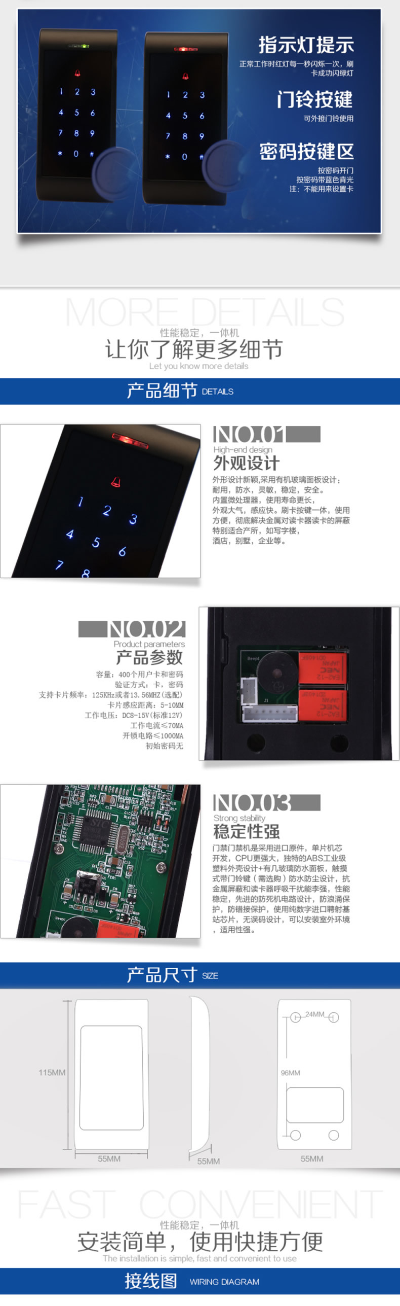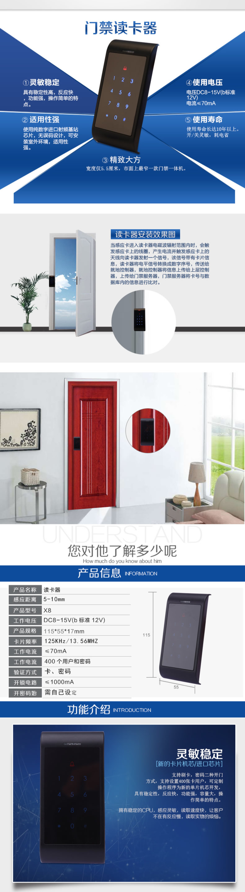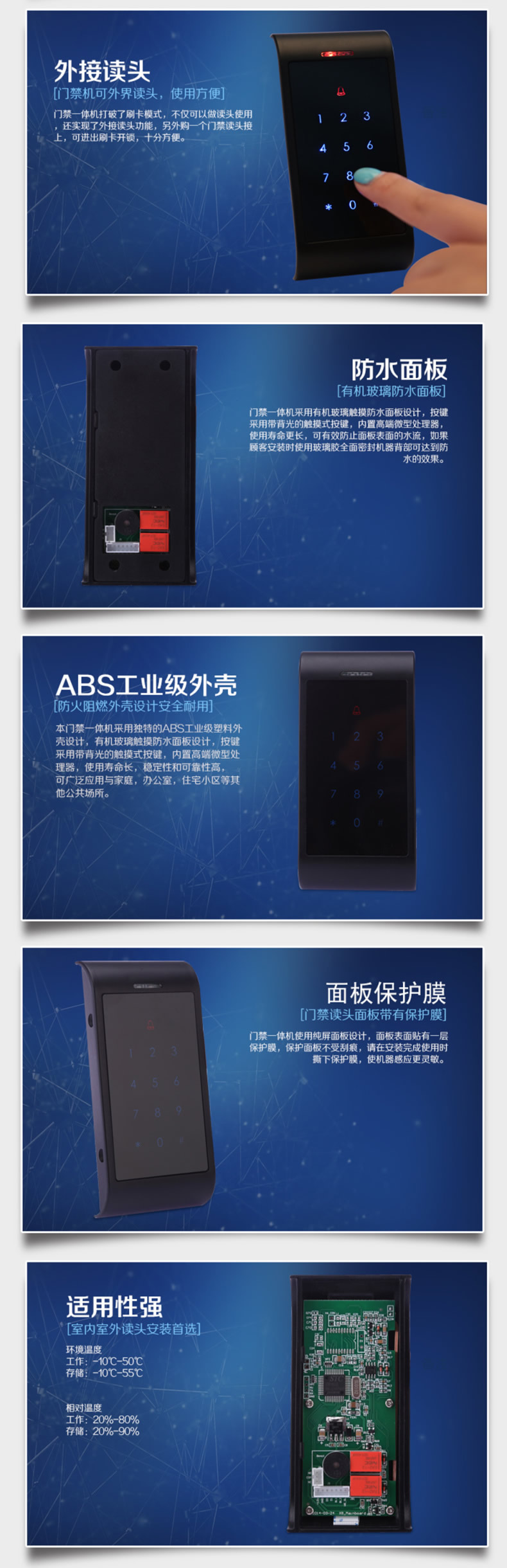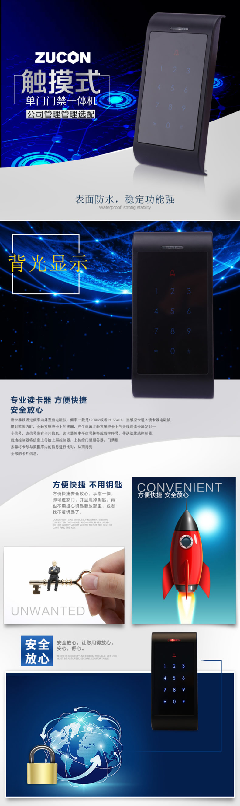 ZUCON X8门禁一体机门禁读卡器触摸按键读头小巧型门禁读头高档精致