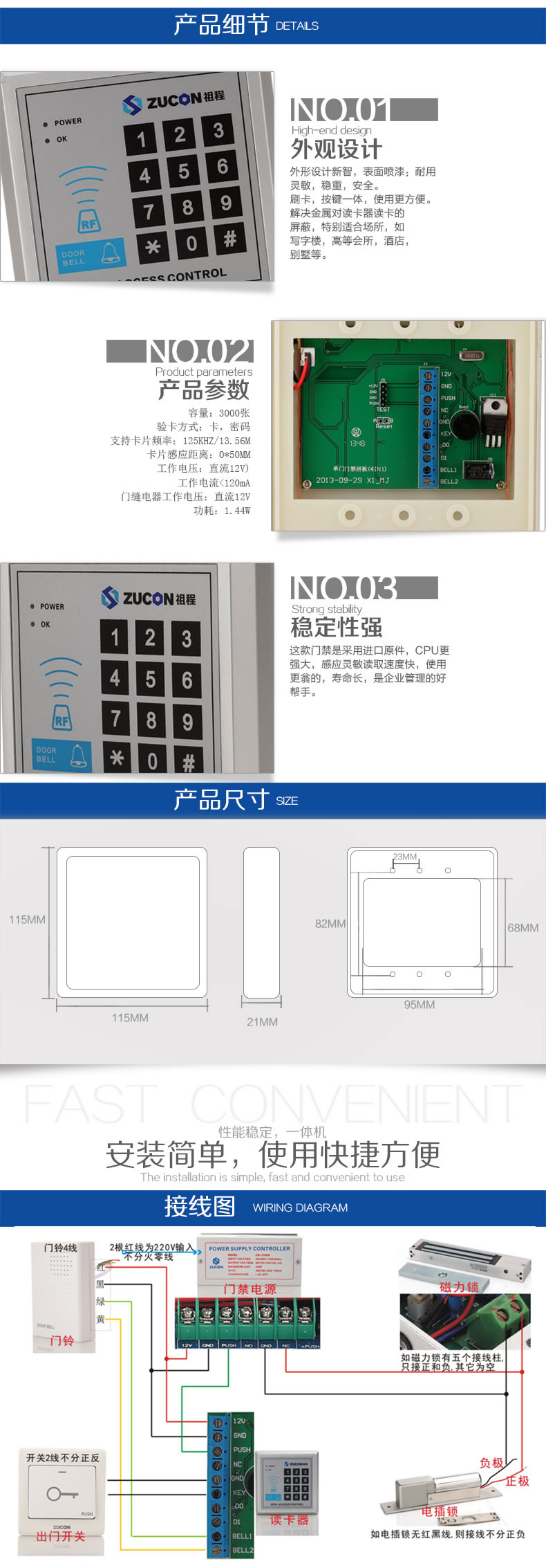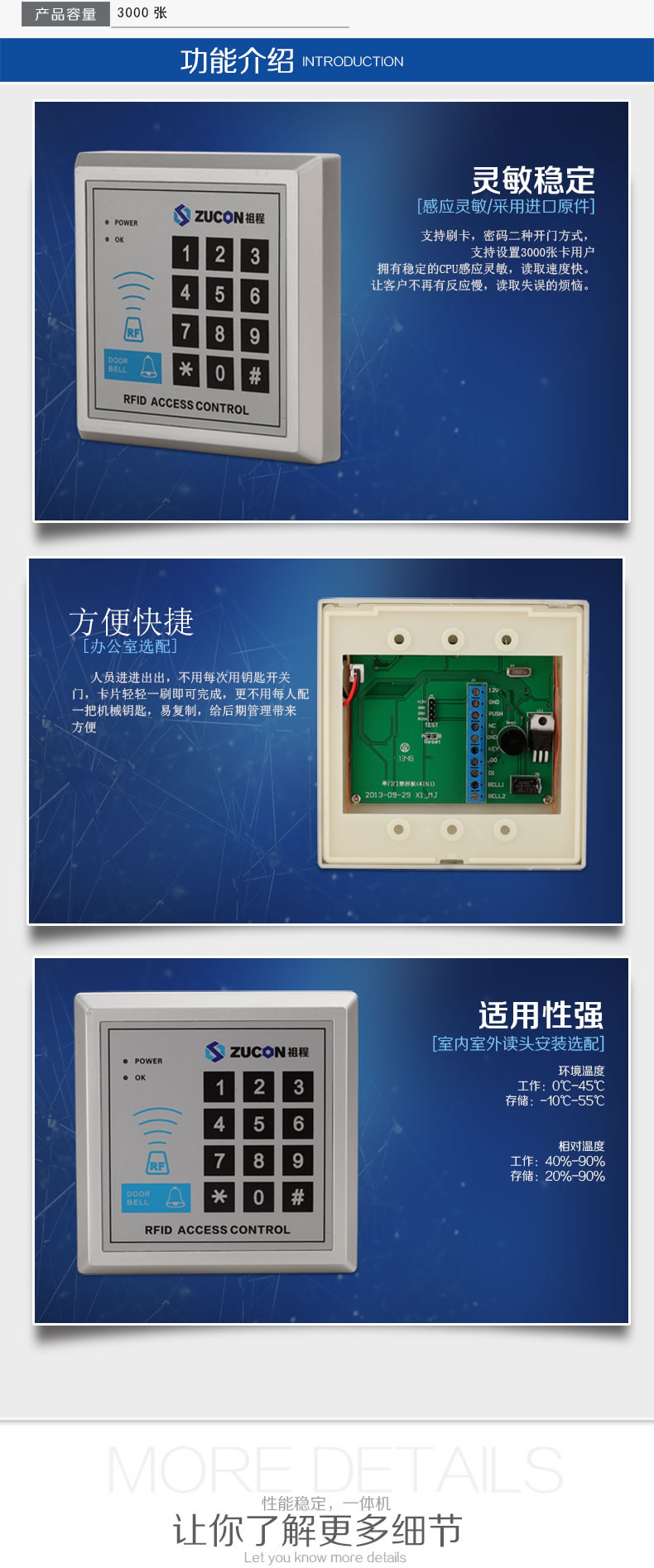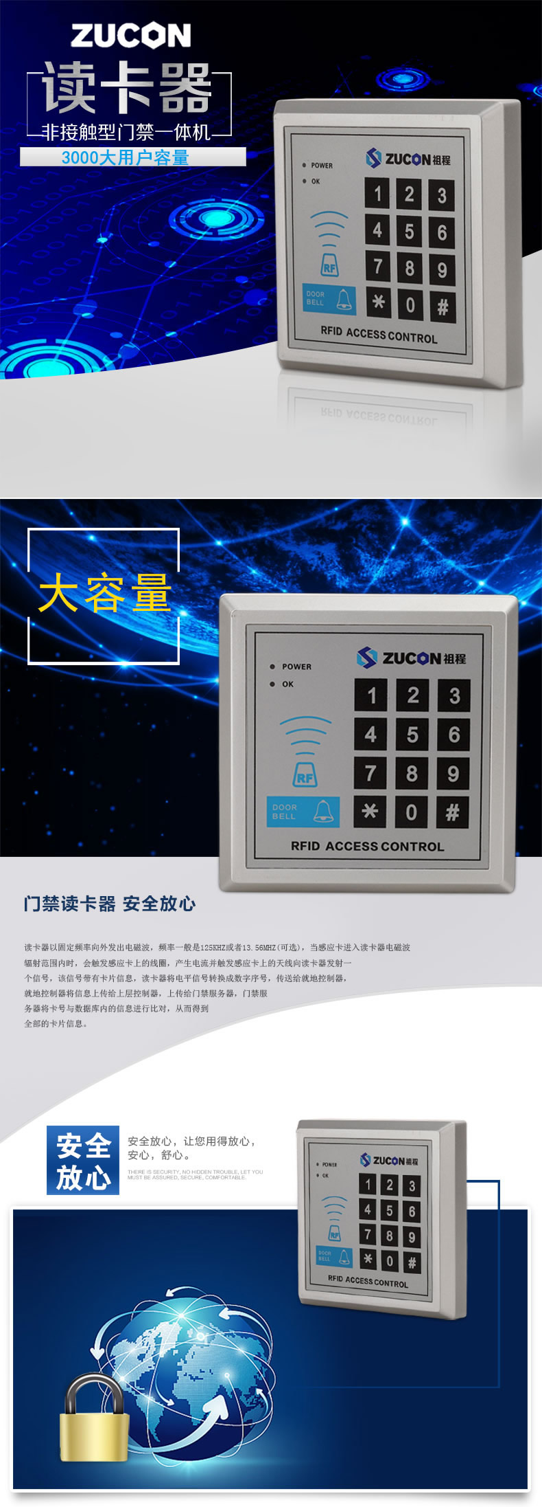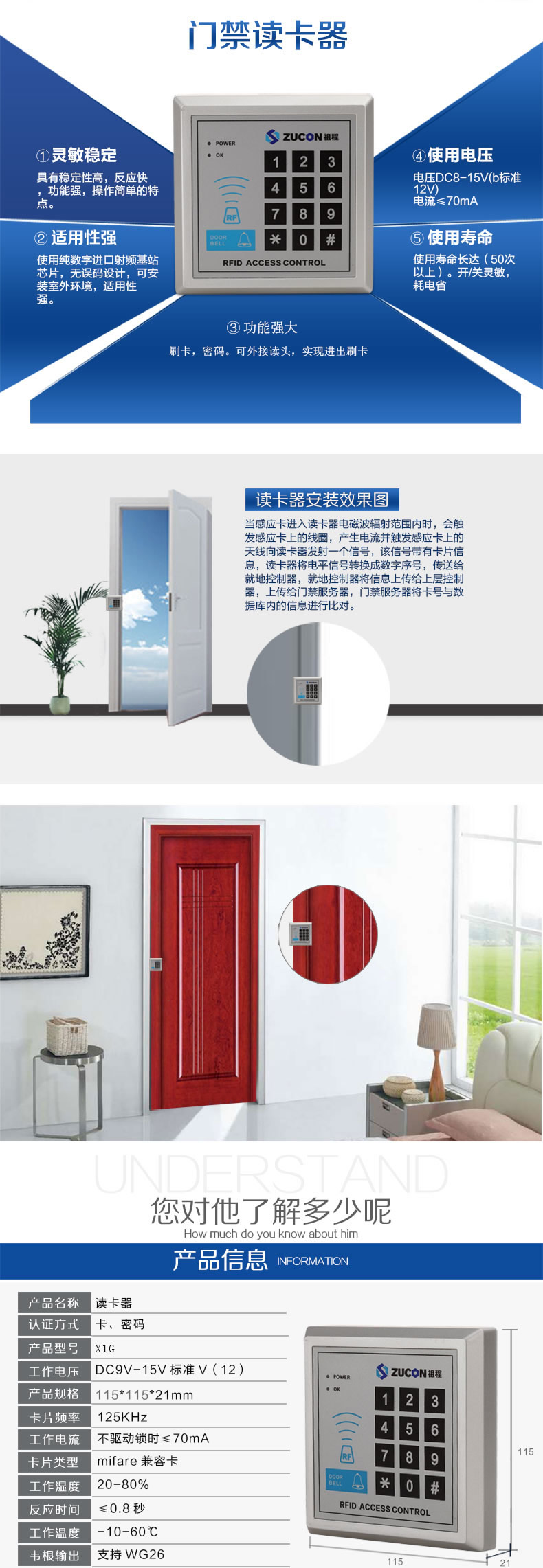 ZUCON X1G大容量单门门禁一体机 ID刷卡密码开锁 感应卡门禁机 3000用户