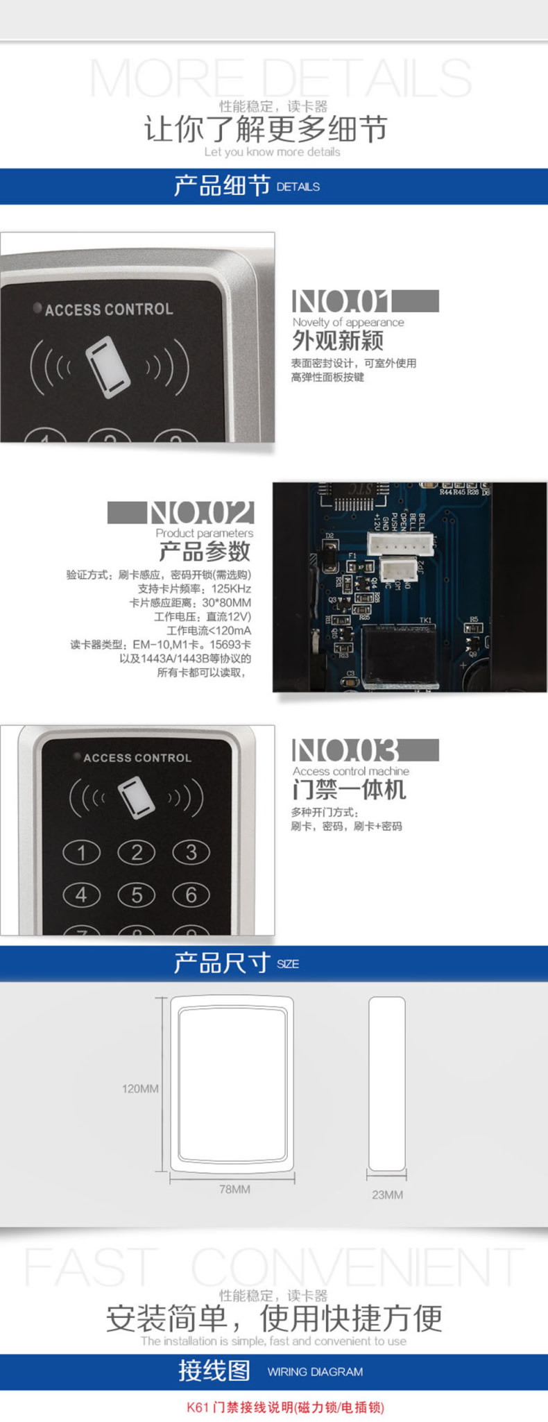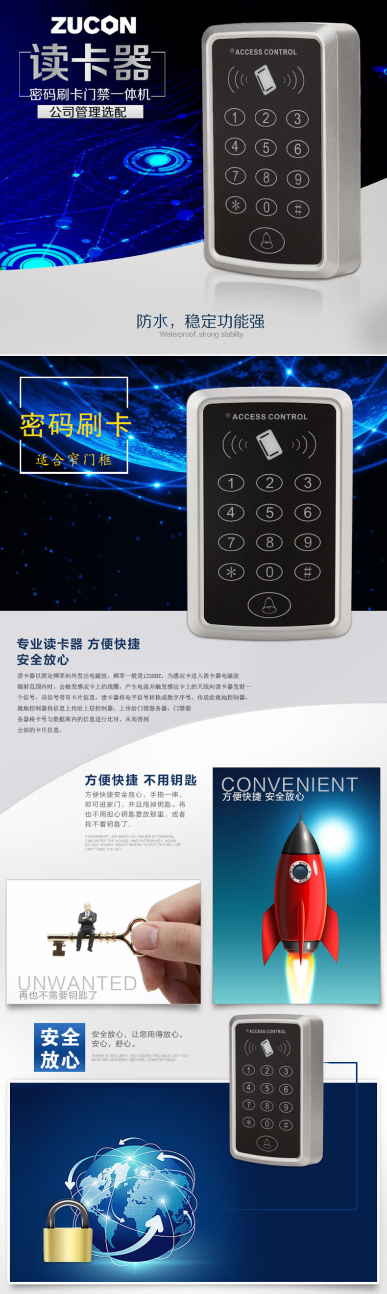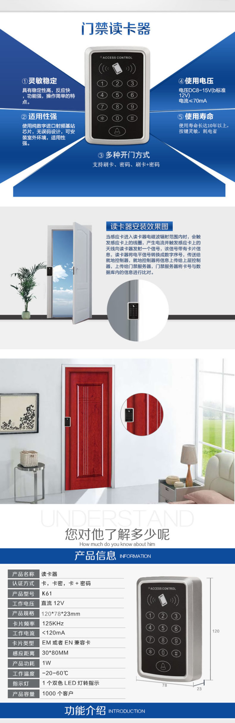 ZUCON k61密码刷卡门禁一体机 ID刷卡一体机 门禁系统通用读卡器
