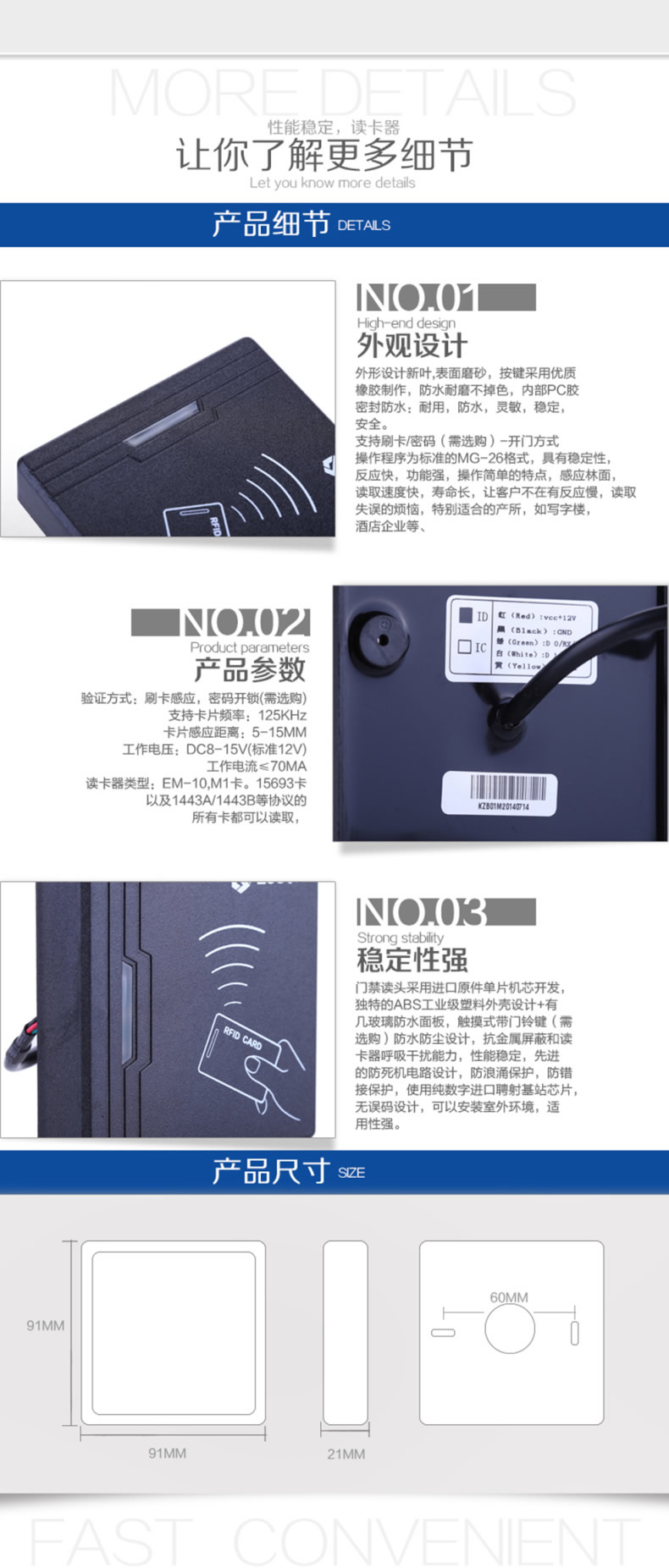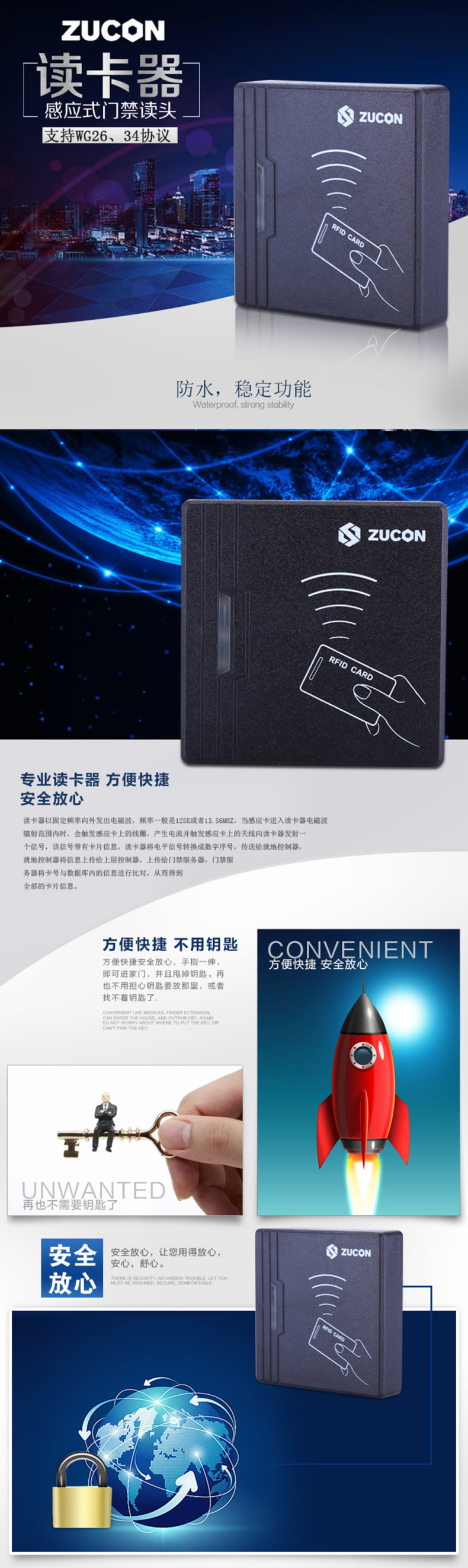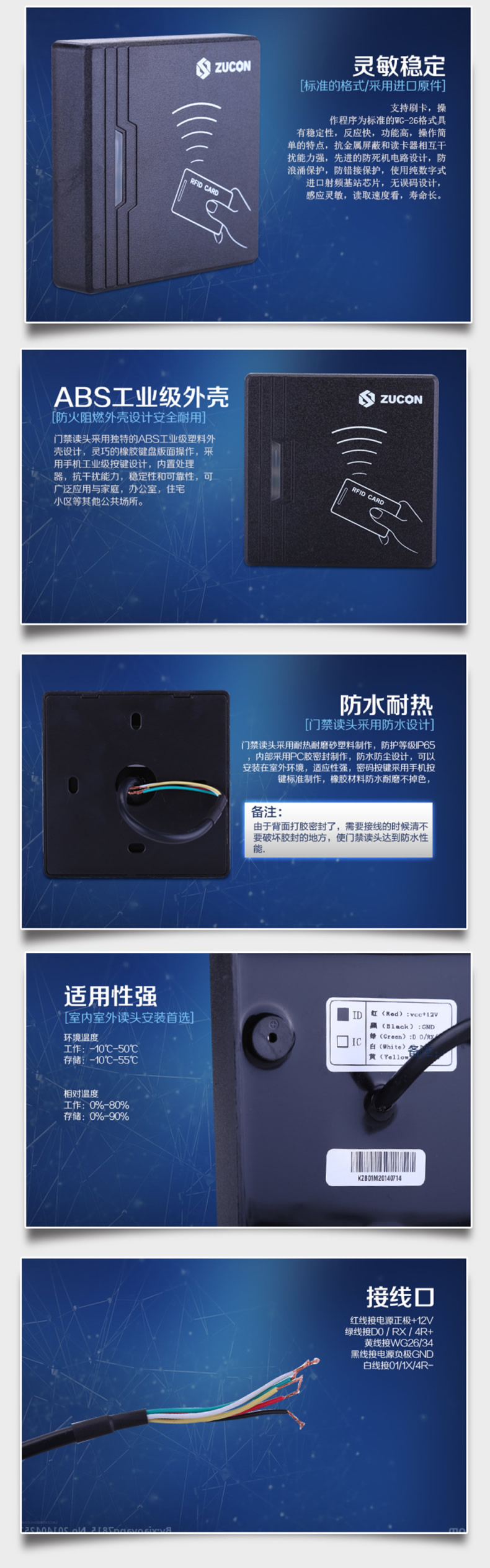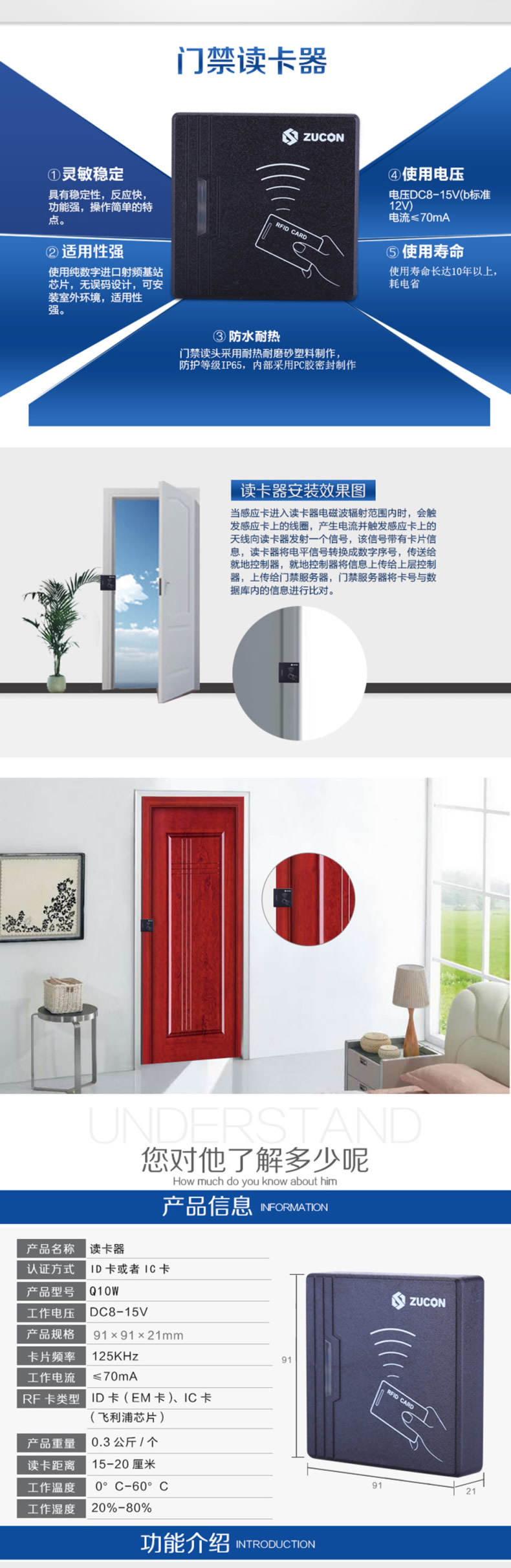 ZUCON Q10W门禁读头门禁读卡器IC、ID卡门禁读头/门禁刷卡器/WG26读头