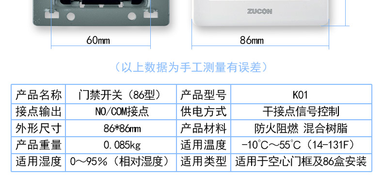 K01电子门禁开关 门锁开关 出门按钮 86盒大小开关 亚白色