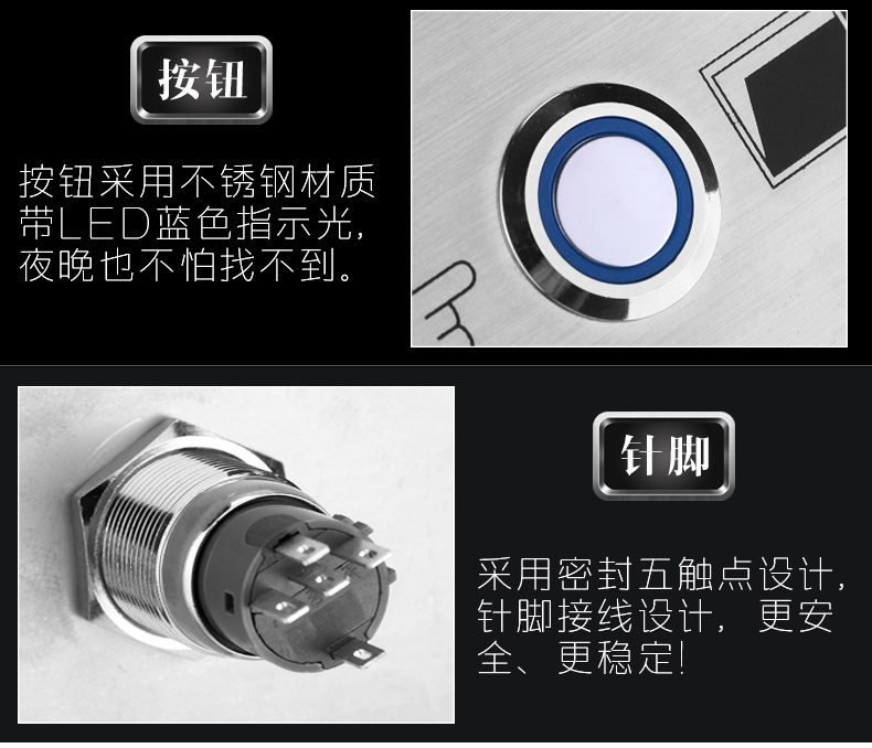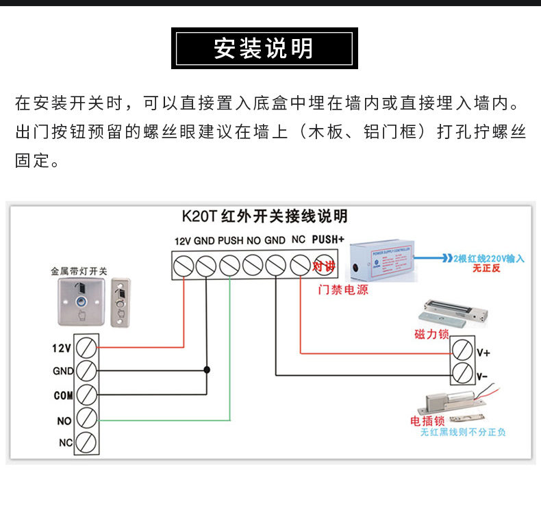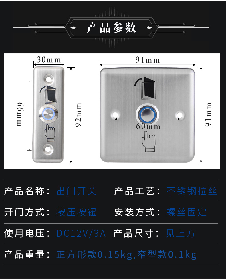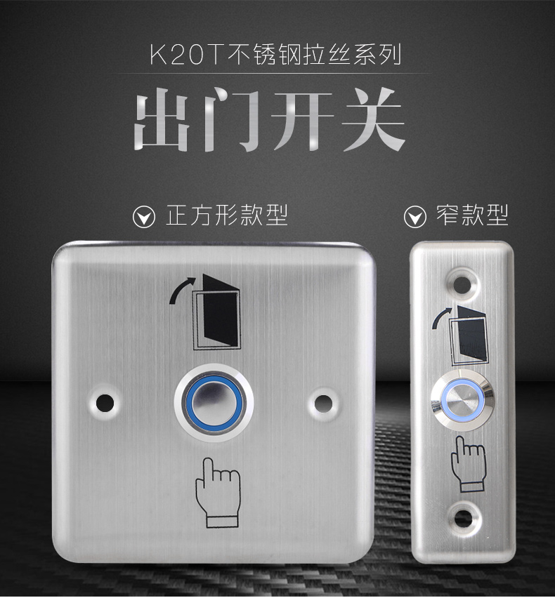 k20T电子门禁开关 门锁开关 出门按钮 高档不锈钢带灯按钮