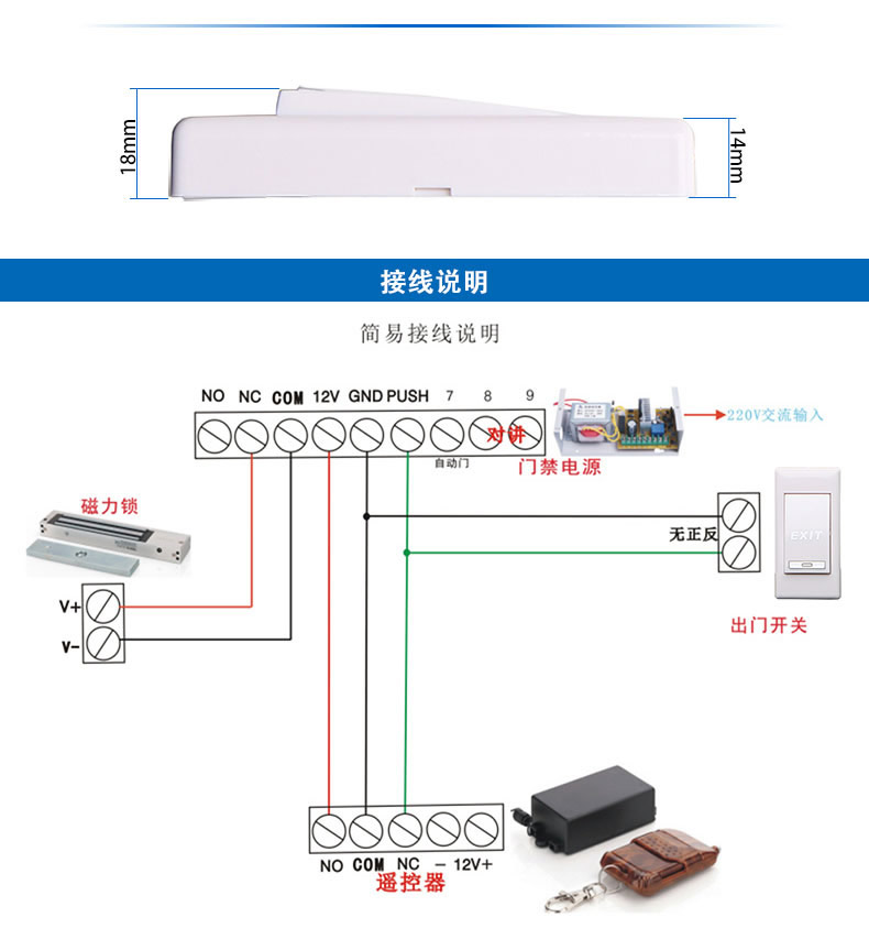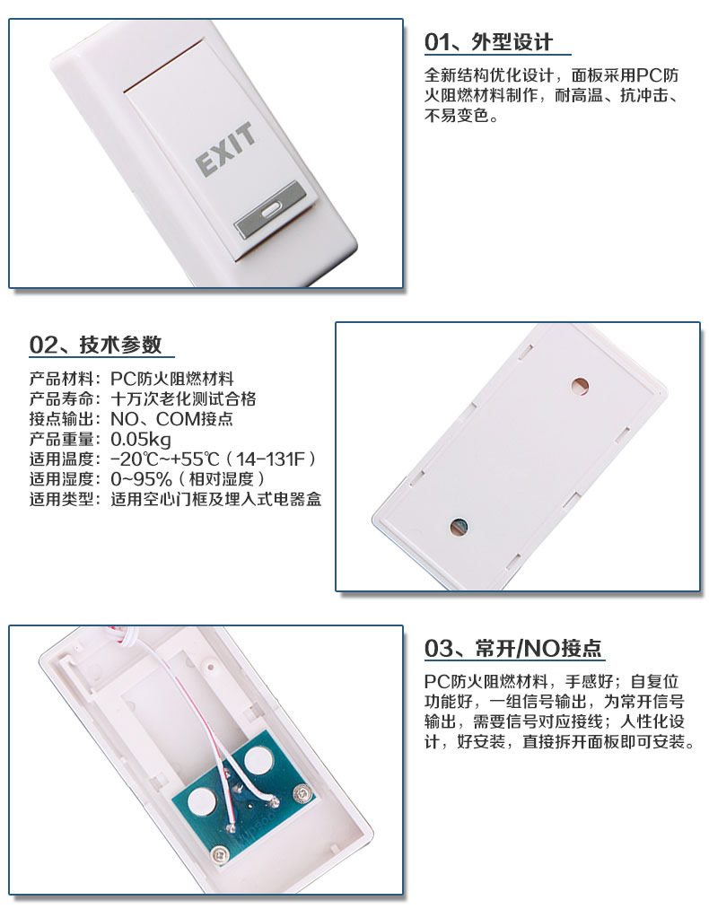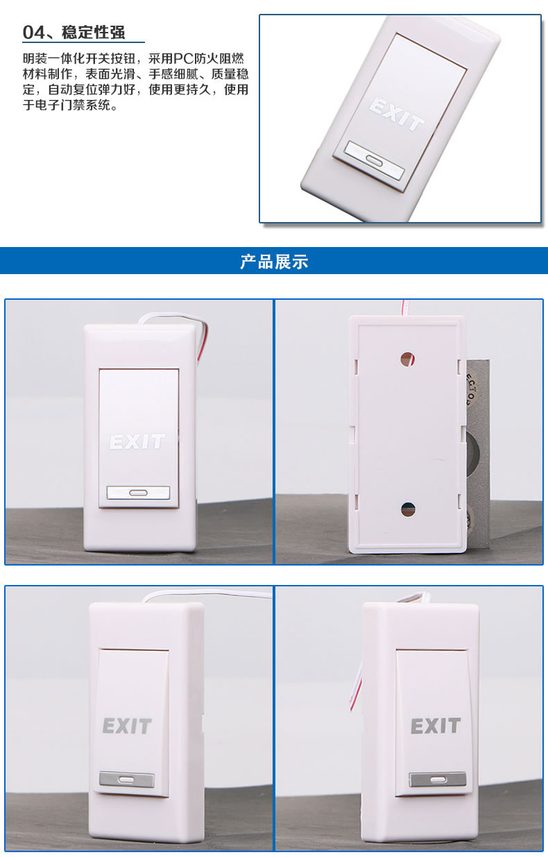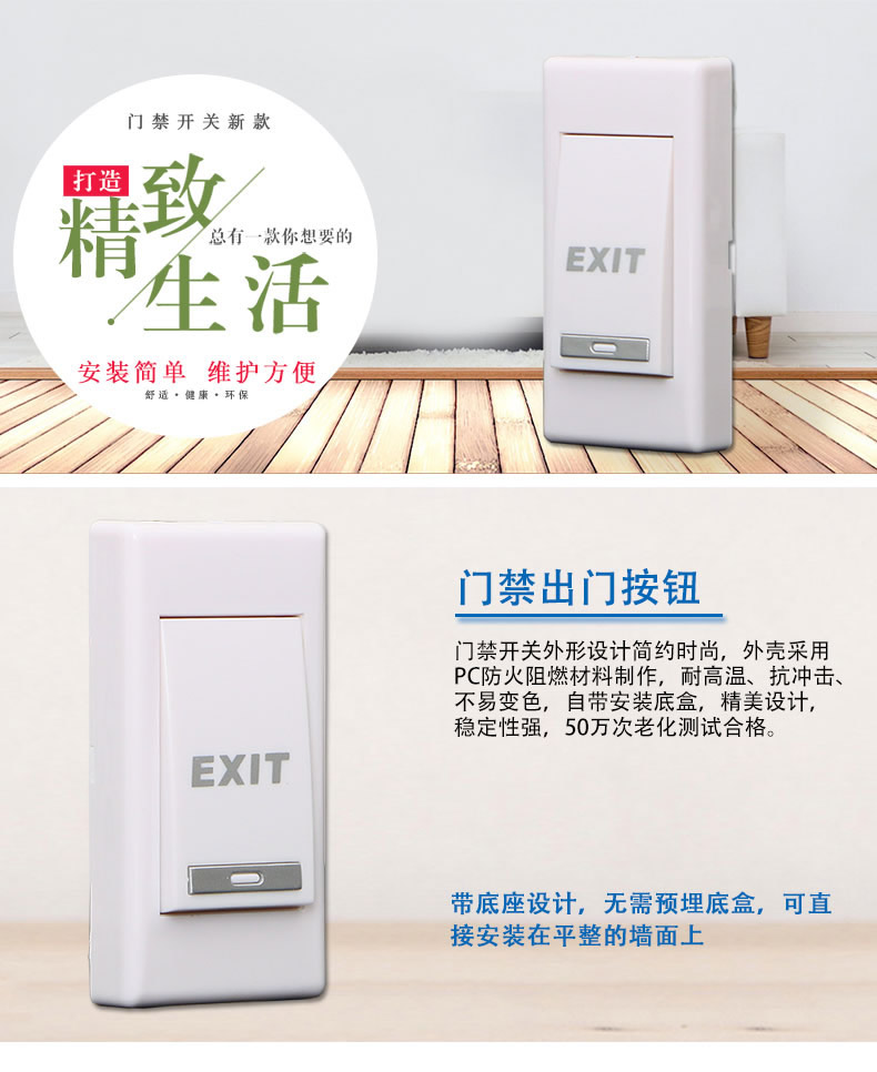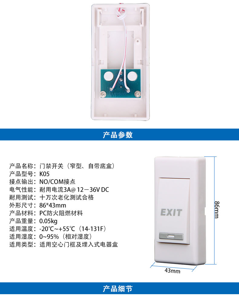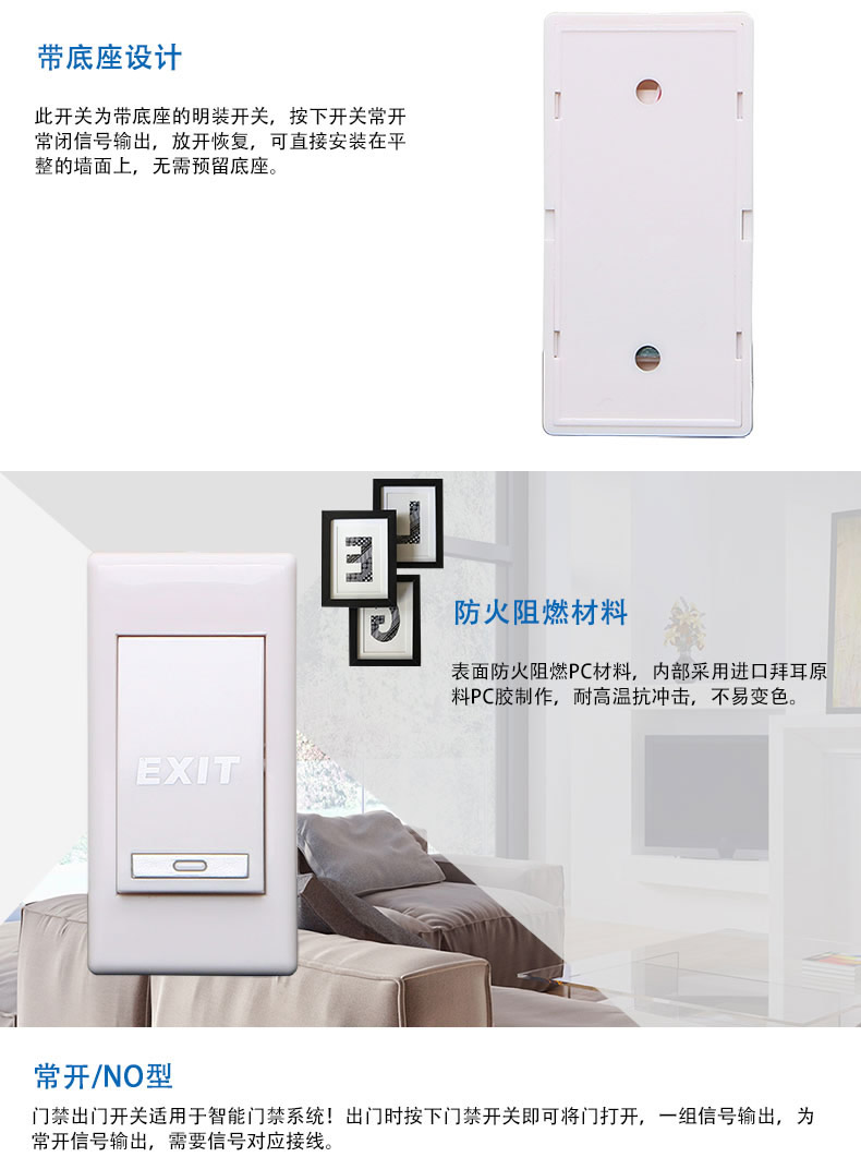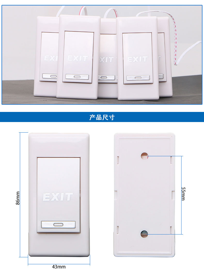 门禁出门开关 出门按钮自动复位 NO常开型 窄版门禁开关
