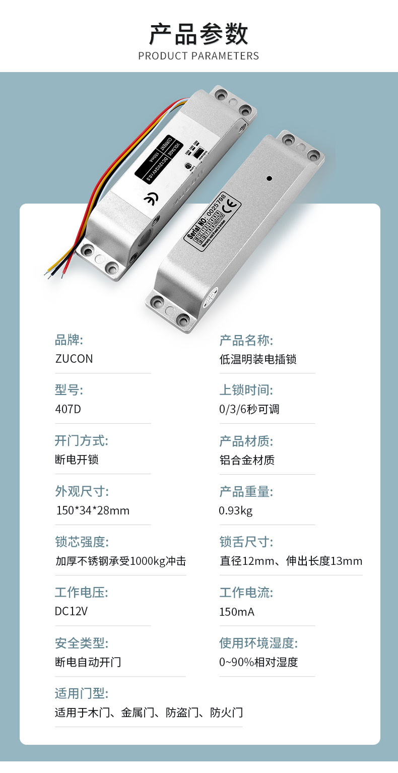 407D明装电插锁407D木门铁门插销锁有框玻璃门禁系统断电开