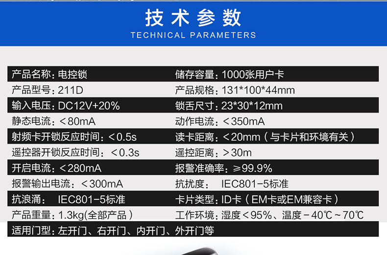211D门禁电机电控锁12V家用感应刷卡锁出租屋一体门锁电控锁