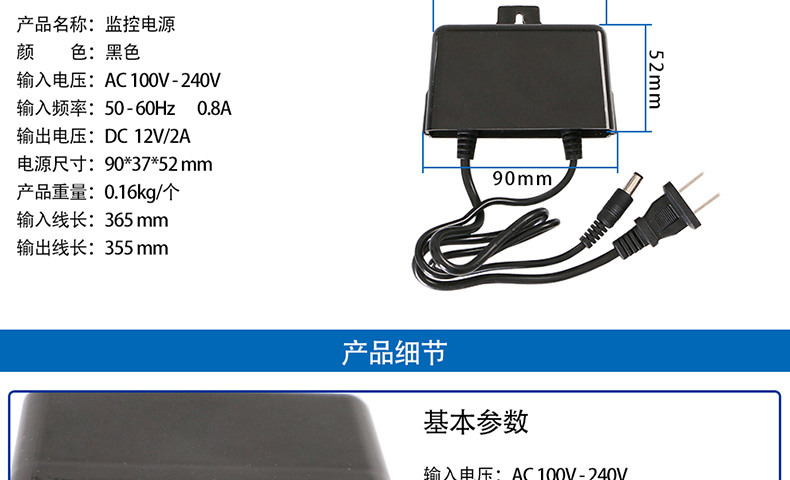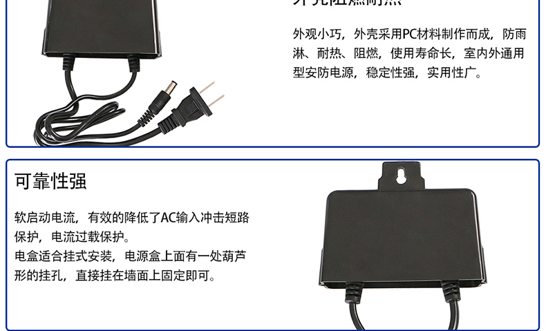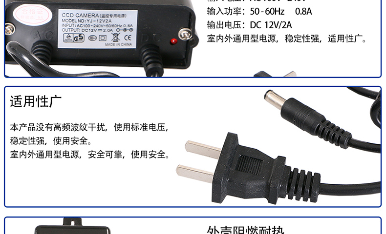 ZUCON 防水监控电源 监控电源适配器摄像头摄像机专用电源12v2a