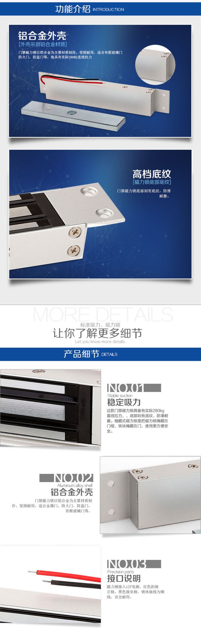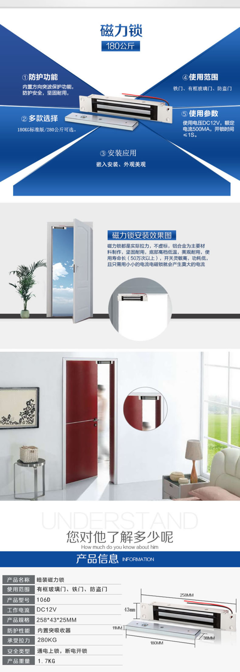 106D 280公斤暗装磁力锁 单元门锁280KG电磁锁电子门锁嵌入门锁