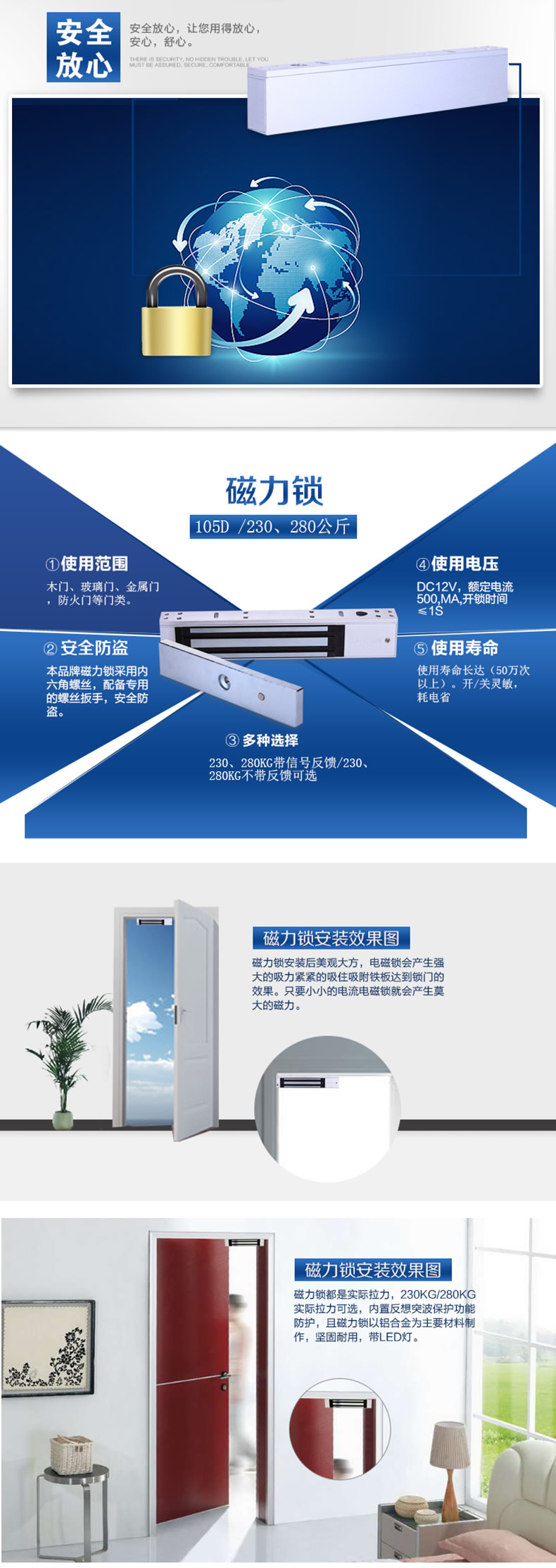 105D 230/280公斤磁力锁 门禁电吸锁 电磁锁明装磁力锁280KG拉力